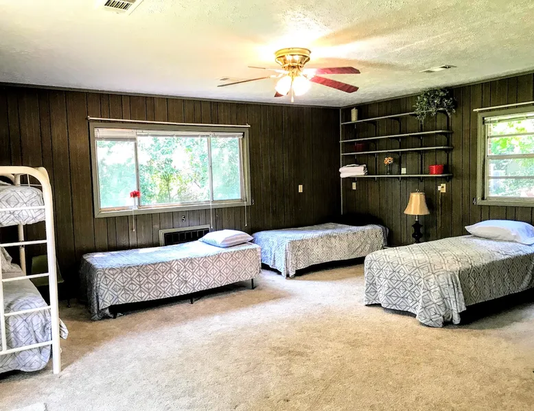Welcome to the only Hostel type room in the Columbus/Phenix City/Fort Benning area! Perfect for the single traveler. This is a SHARED DORM STYLE room with 5 beds in this bedroom. Bed #4 is the bed in the right corner. From our 10 years of past experience we have found that our guests are usually fairly quiet, educated, well traveled, friendly, interesting to chat with, and in the habit of respecting each others' space. The space This spacious room is SHARED, welcoming other travellers from all over the world who will sleep in the same room. There is 1 bunk bed and 3 single beds. Bed #4 is the bed in the far right corner of the room. 4 lockers with locks are available for your use in this room also. This is a 4 bedroom older home in a quiet residential neighborhood. There are 3 private guest rooms besides this 5 bed Hostel Room in the home. Both bathrooms have a fresh coat of paint and the blue bathroom still has the original, vintage cast iron tub. Please contact us if you are interested in a private room. Guest access You will have access to the whole home except for the individual private bedrooms. You may label any personal items you put in the kitchen or bathroom that you don’t want anyone else using. There is a pen and tape in the kitchen on the small shelf across from the refrigerator. Other things to note Phenix City goes by Eastern time, the same as Columbus, GA, Fort Benning, and Atlanta. We are not located in downtown but are minutes from downtown Phenix City. (This home has central heat and air even though the picture shows an old AC unit in the wall.) If you are coming here for work and you work a shift that you need to sleep during the day, this is not the best temporary housing situation for you because there may sometimes be other guests coming and going in this room throughout the day. There are 2 outdoor security cameras on this property, one on the front porch and one on the back porch, for the safety of our guests.