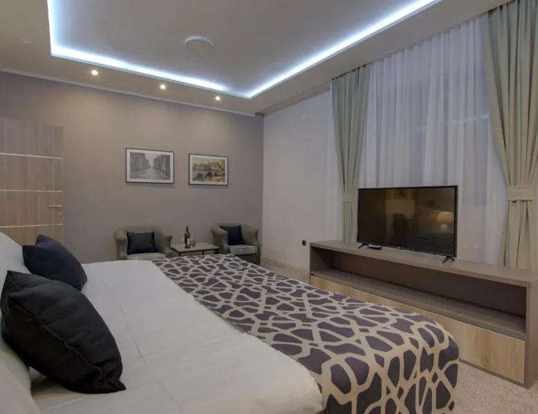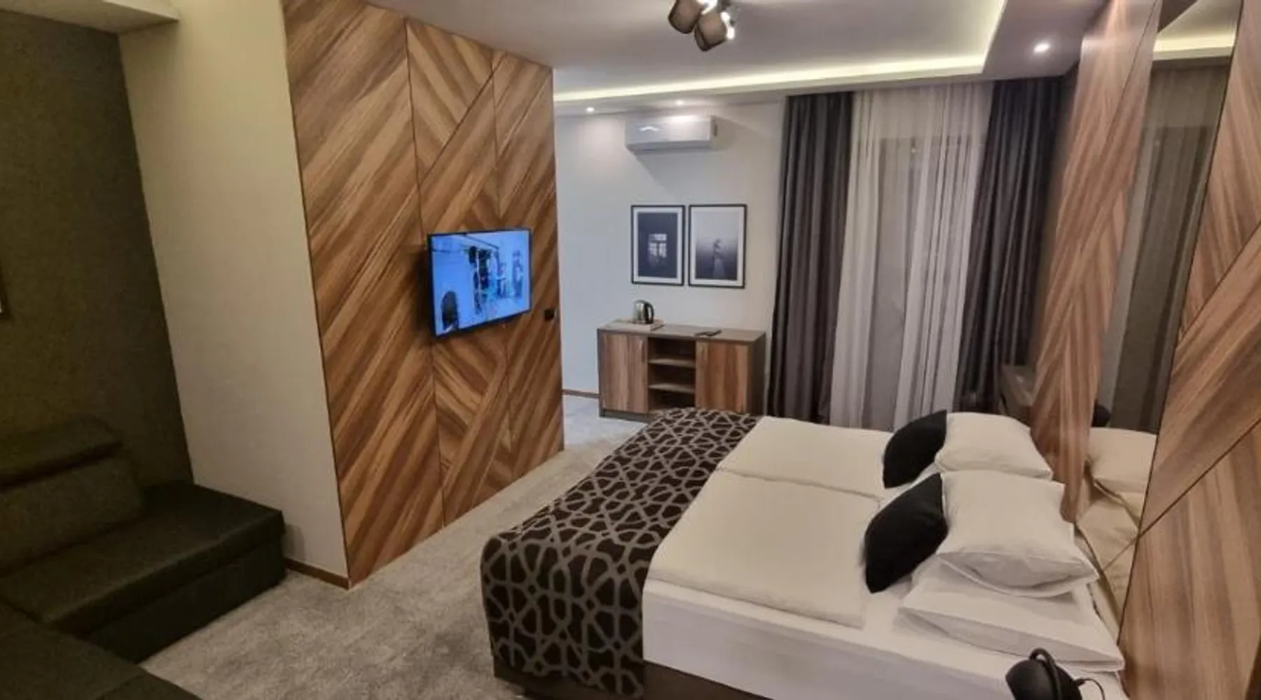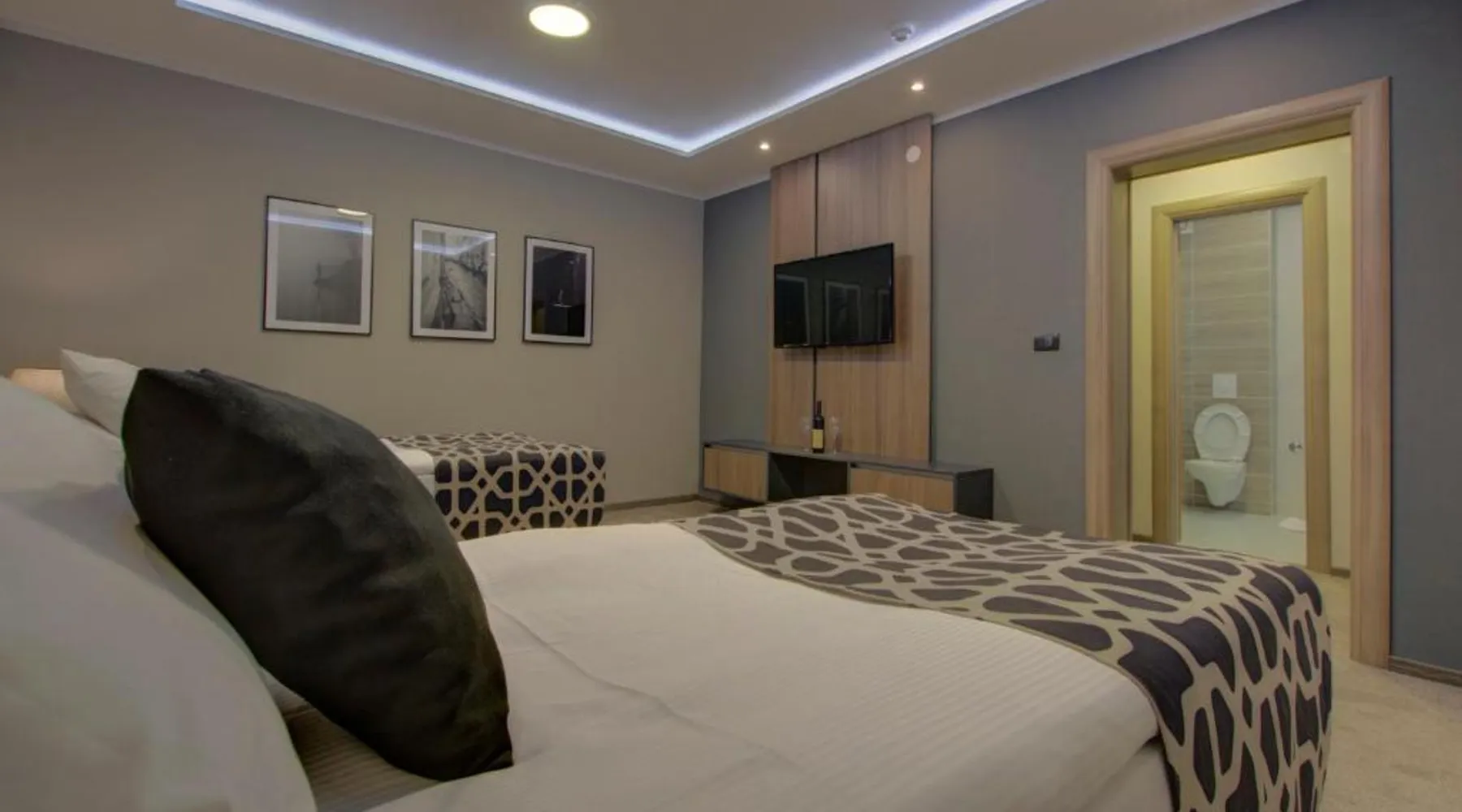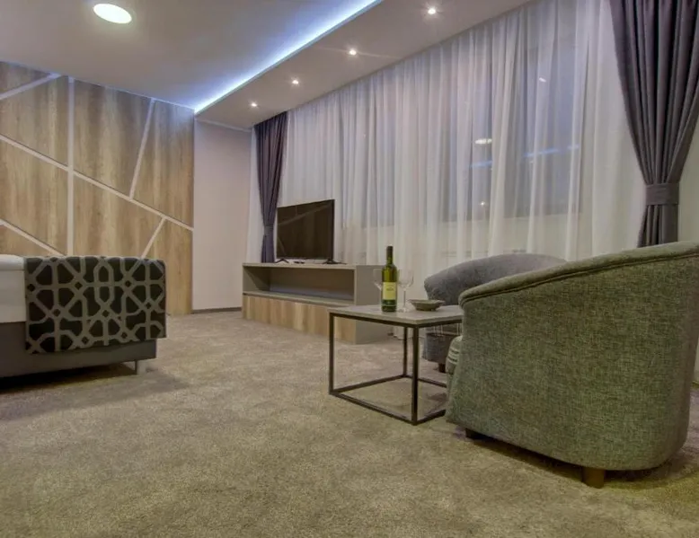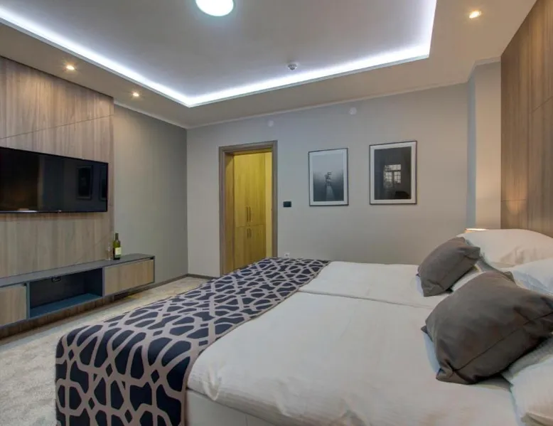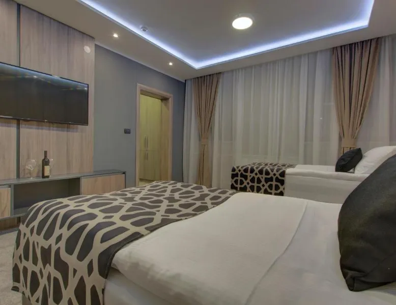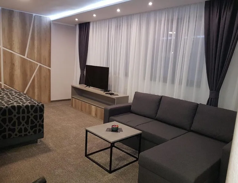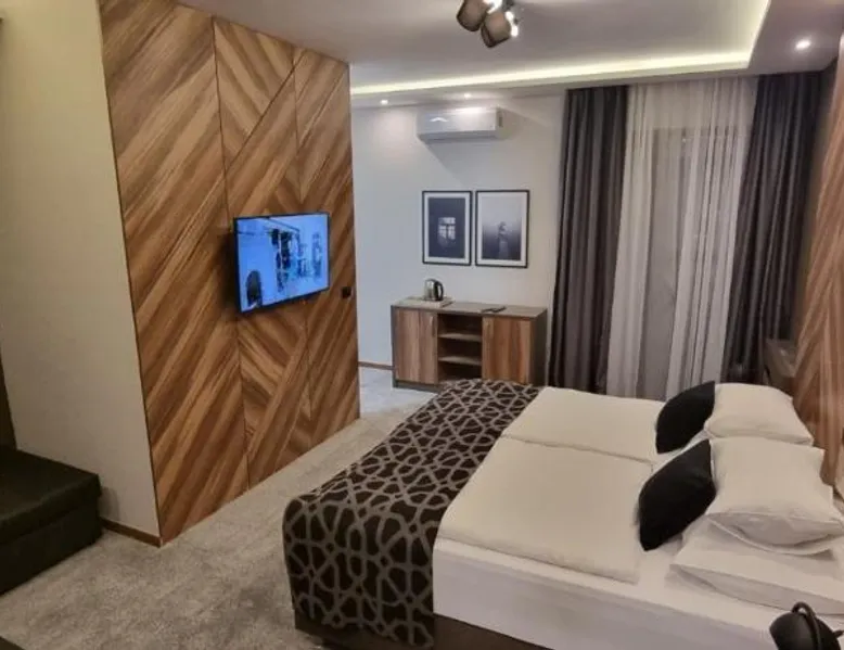 Comfortable Accommodations: Hotel Zlatna Žita in Pale offers family rooms with private bathrooms, air-conditioning, and modern amenities. Each room includes a balcony or terrace, kitchenette, and free WiFi. Dining and Leisure: The modern restaurant serves Italian, Mediterranean, pizza, and European cuisines in a family-friendly ambiance. Guests can also enjoy the bar, coffee shop, and outdoor seating area. Convenient Location: Located 16 mi from Sarajevo International Airport, the hotel is near attractions such as Sebilj Fountain (9.9 mi) and Sarajevo Cable Car (9.9 mi). An ice-skating rink is also nearby. Guest Services: Highly rated for its breakfast, attentive staff, and room cleanliness, the hotel provides private check-in and check-out, paid shuttle, room service, and car hire. This apartment consists of 1 living room, 1 separate bedroom and 1 bathroom with a walk-in shower and free toiletries. Meals can be prepared in the well-fitted kitchen, which comes with a stovetop, a refrigerator, kitchenware and an electric kettle. The air-conditioned apartment provides a flat-screen TV with cable channels, soundproof walls, a seating area, a dining area as well as city views. The unit offers 2 beds.