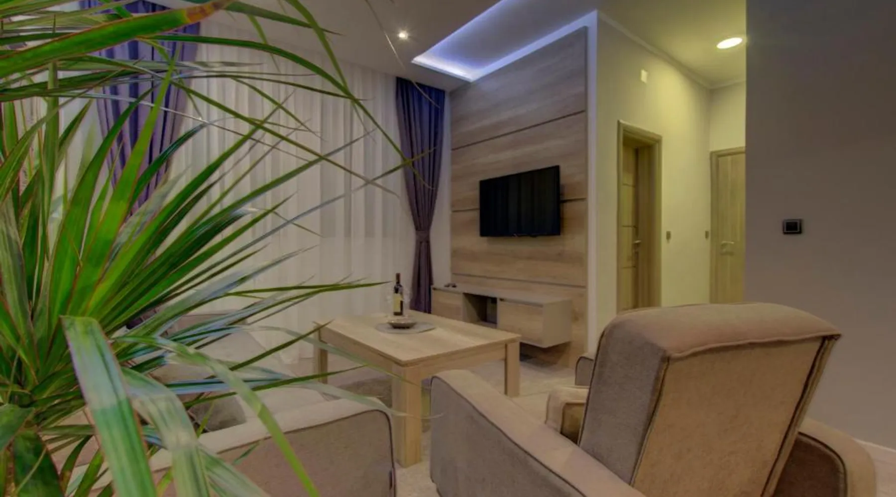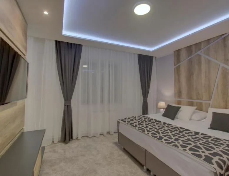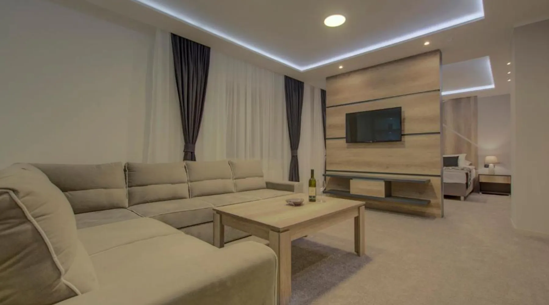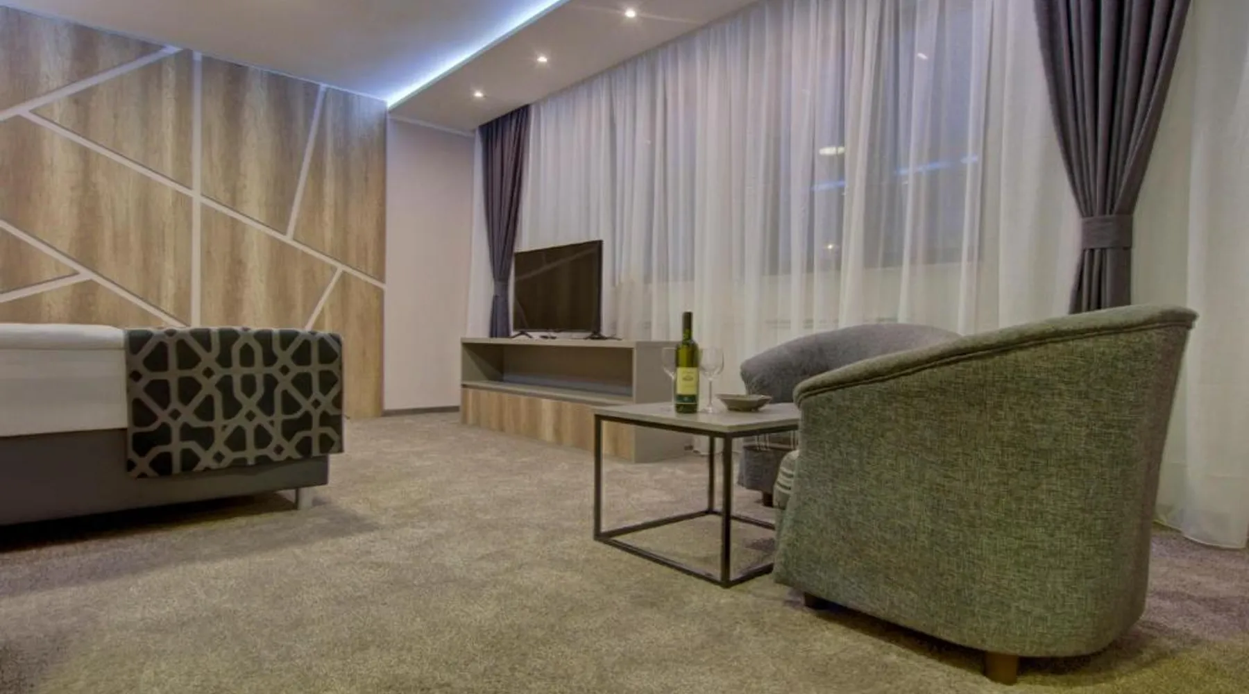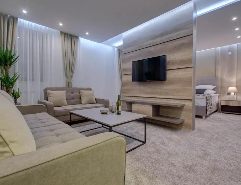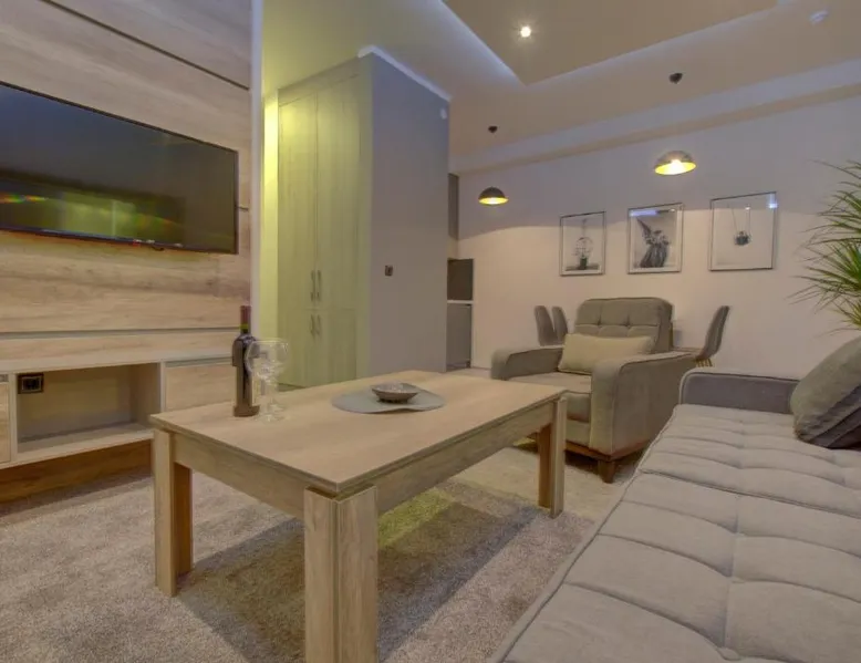 Comfortable Accommodations: Hotel Zlatna Žita in Pale offers family rooms with private bathrooms, air-conditioning, and modern amenities. Each room includes a balcony or terrace, kitchenette, and free WiFi. Dining and Leisure: The modern restaurant serves Italian, Mediterranean, pizza, and European cuisines in a family-friendly ambiance. Guests can also enjoy the bar, coffee shop, and outdoor seating area. Convenient Location: Located 16 mi from Sarajevo International Airport, the hotel is near attractions such as Sebilj Fountain (9.9 mi) and Sarajevo Cable Car (9.9 mi). An ice-skating rink is also nearby. Guest Services: Highly rated for its breakfast, attentive staff, and room cleanliness, the hotel provides private check-in and check-out, paid shuttle, room service, and car hire. This apartment consists of 1 living room, 1 separate bedroom and 1 bathroom with a walk-in shower and free toiletries. Meals can be prepared in the well-fitted kitchen, which comes with a stovetop, a refrigerator, kitchenware and an electric kettle. The air-conditioned apartment provides a flat-screen TV with cable channels, soundproof walls, a seating area, a dining area as well as city views. The unit offers 2 beds.