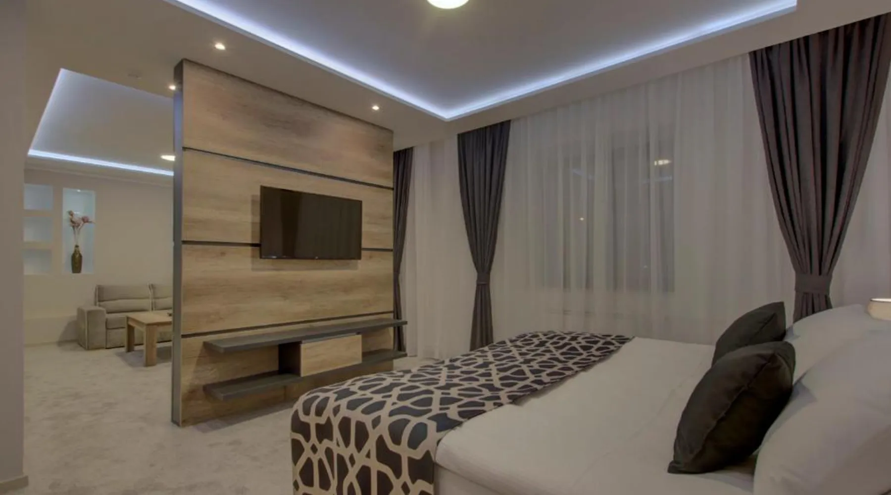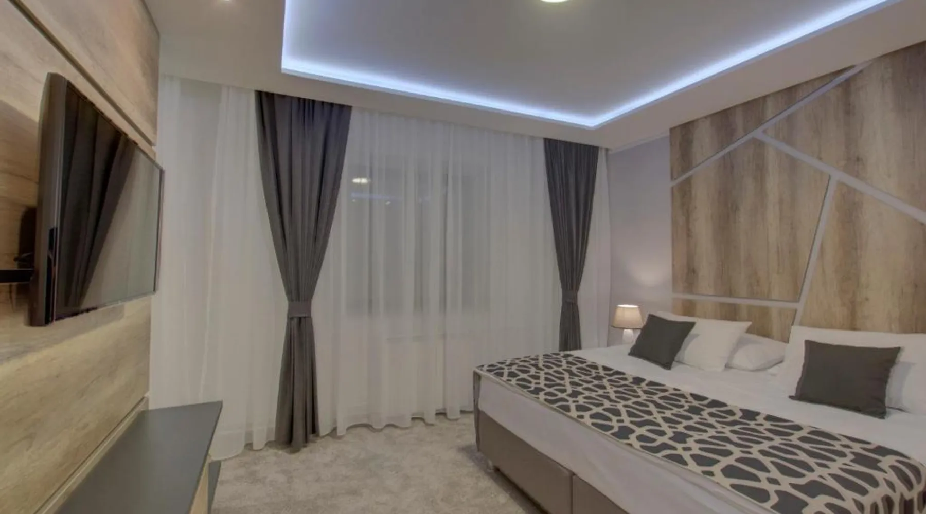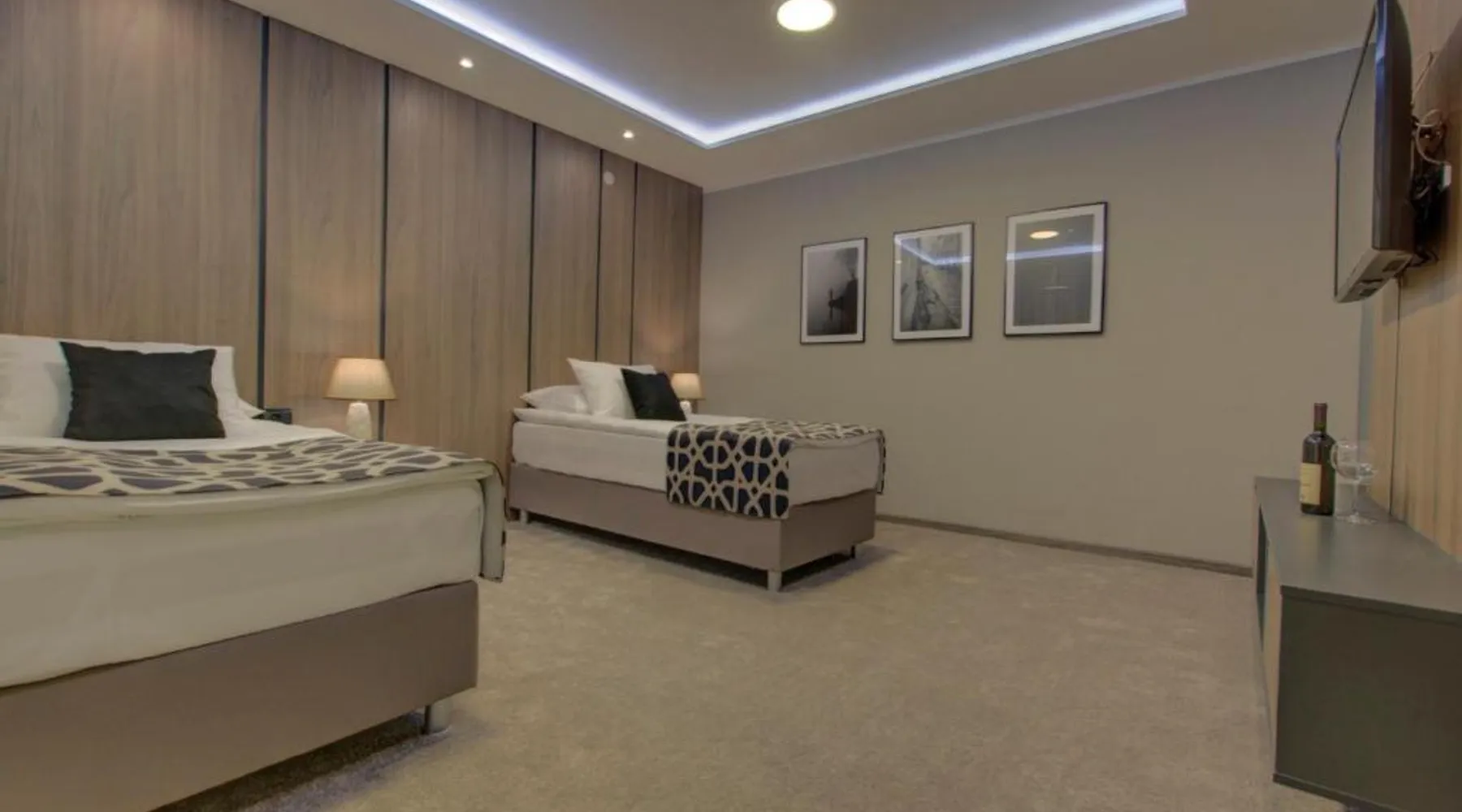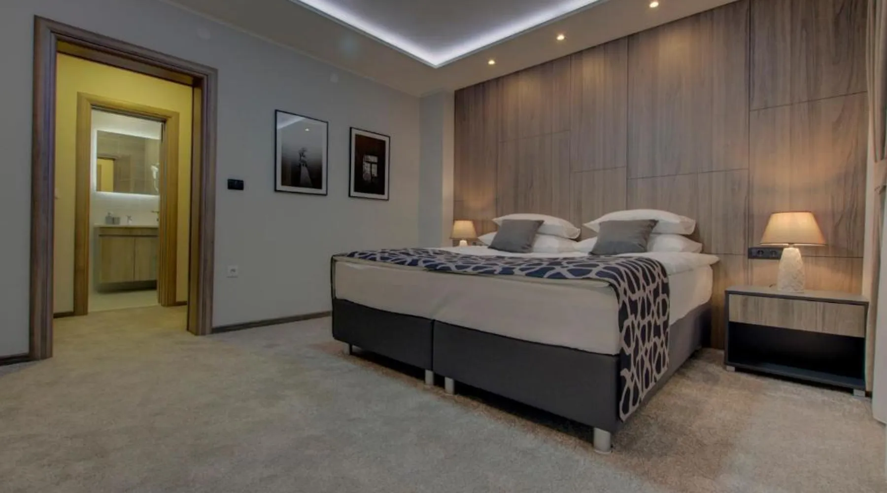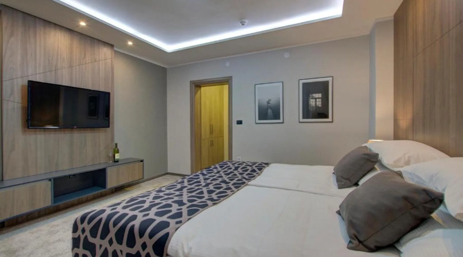 Comfortable Accommodations: Hotel Zlatna Žita in Pale offers family rooms with private bathrooms, air-conditioning, and modern amenities. Each room includes a balcony or terrace, kitchenette, and free WiFi. Dining and Leisure: The modern restaurant serves Italian, Mediterranean, pizza, and European cuisines in a family-friendly ambiance. Guests can also enjoy the bar, coffee shop, and outdoor seating area. Convenient Location: Located 16 mi from Sarajevo International Airport, the hotel is near attractions such as Sebilj Fountain (9.9 mi) and Sarajevo Cable Car (9.9 mi). An ice-skating rink is also nearby. Guest Services: Highly rated for its breakfast, attentive staff, and room cleanliness, the hotel provides private check-in and check-out, paid shuttle, room service, and car hire. This apartment consists of 1 living room, 1 separate bedroom and 1 bathroom with a walk-in shower and free toiletries. Meals can be prepared in the well-fitted kitchen, which comes with a stovetop, a refrigerator, kitchenware and an electric kettle. The air-conditioned apartment provides a flat-screen TV with cable channels, soundproof walls, a seating area, a dining area as well as city views. The unit offers 2 beds.