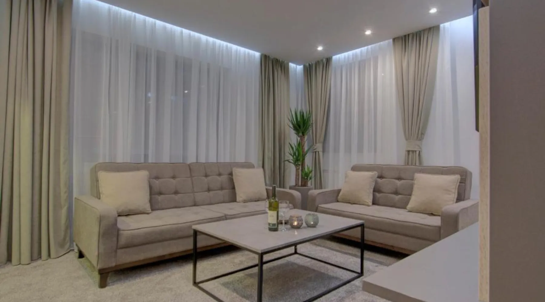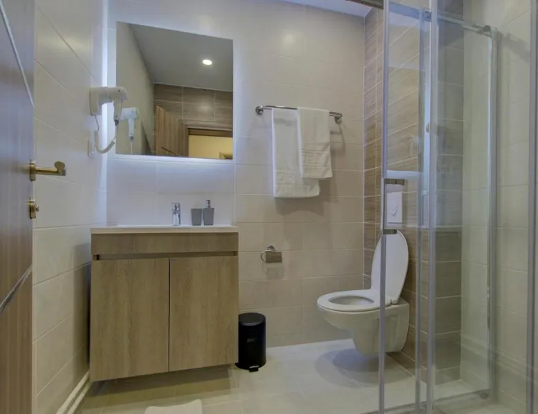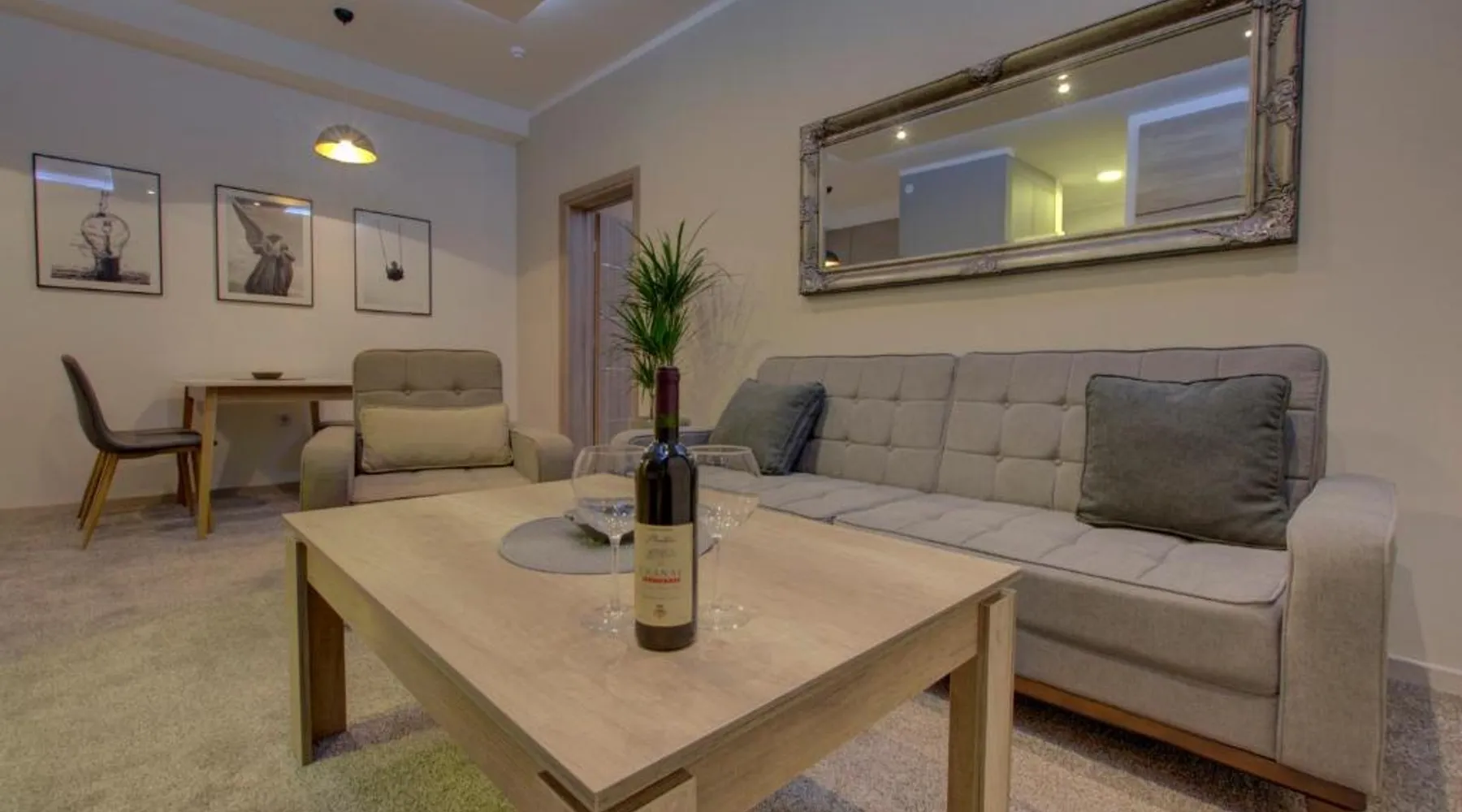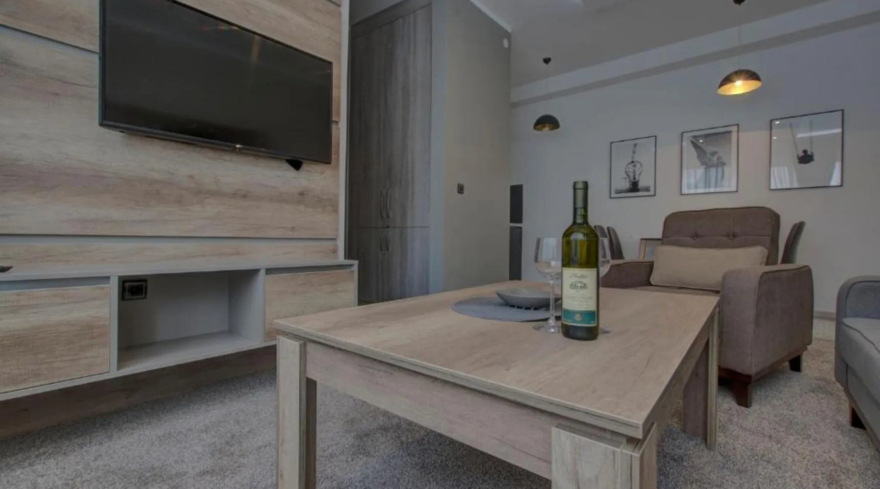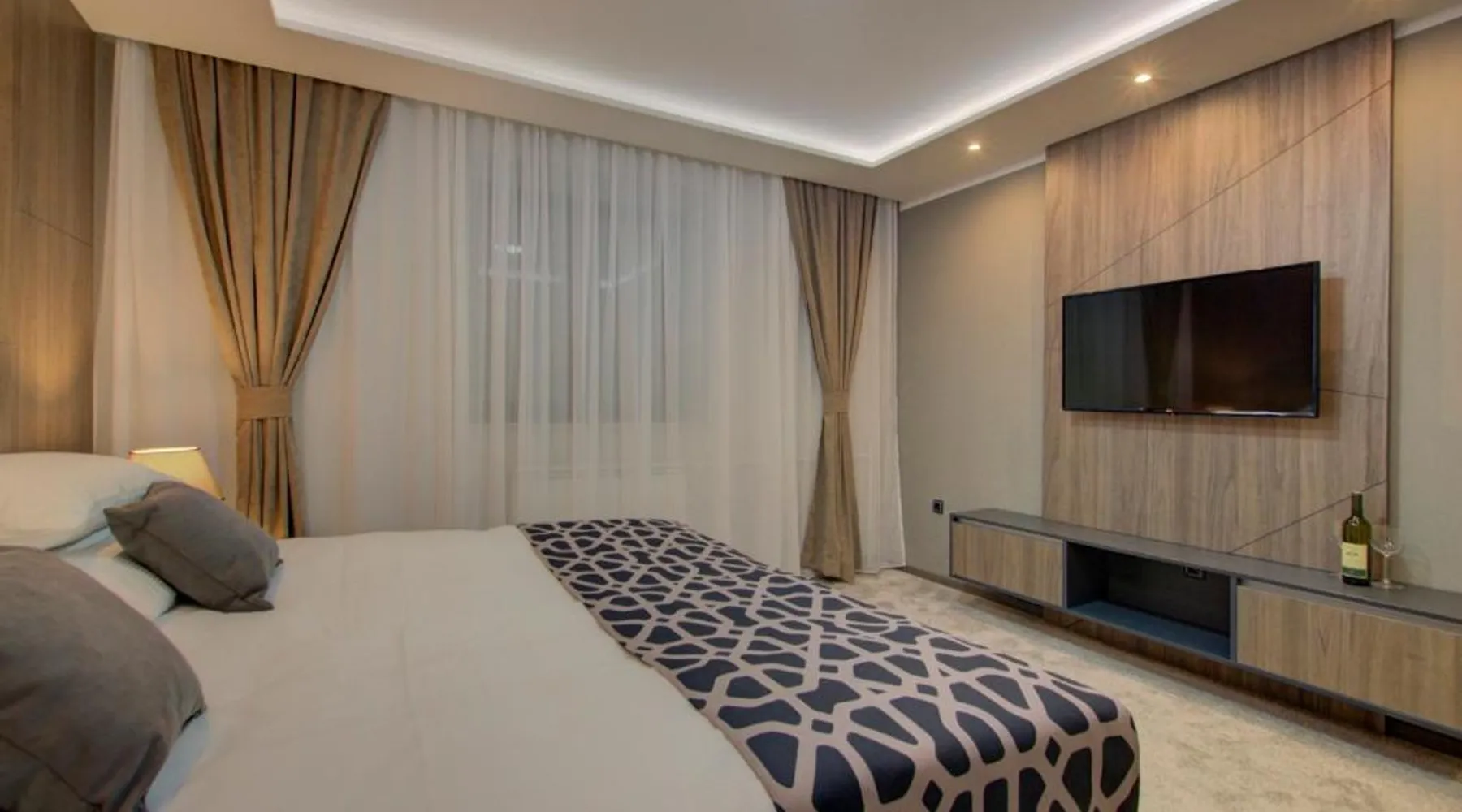 Comfortable Accommodations: Hotel Zlatna Žita in Pale offers family rooms with private bathrooms, air-conditioning, and modern amenities. Each room includes a balcony or terrace, kitchenette, and free WiFi. Dining and Leisure: The modern restaurant serves Italian, Mediterranean, pizza, and European cuisines in a family-friendly ambiance. Guests can also enjoy the bar, coffee shop, and outdoor seating area. Convenient Location: Located 16 mi from Sarajevo International Airport, the hotel is near attractions such as Sebilj Fountain (9.9 mi) and Sarajevo Cable Car (9.9 mi). An ice-skating rink is also nearby. Guest Services: Highly rated for its breakfast, attentive staff, and room cleanliness, the hotel provides private check-in and check-out, paid shuttle, room service, and car hire. This apartment consists of 1 living room, 1 separate bedroom and 1 bathroom with a walk-in shower and free toiletries. Meals can be prepared in the well-fitted kitchen, which comes with a stovetop, a refrigerator, kitchenware and an electric kettle. The air-conditioned apartment provides a flat-screen TV with cable channels, soundproof walls, a seating area, a dining area as well as city views. The unit offers 2 beds.