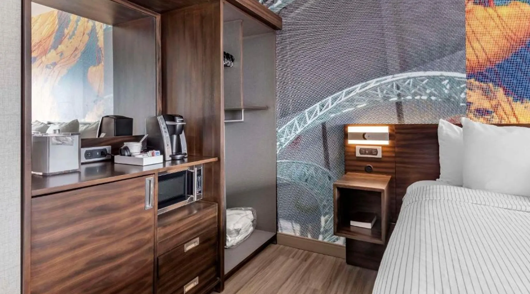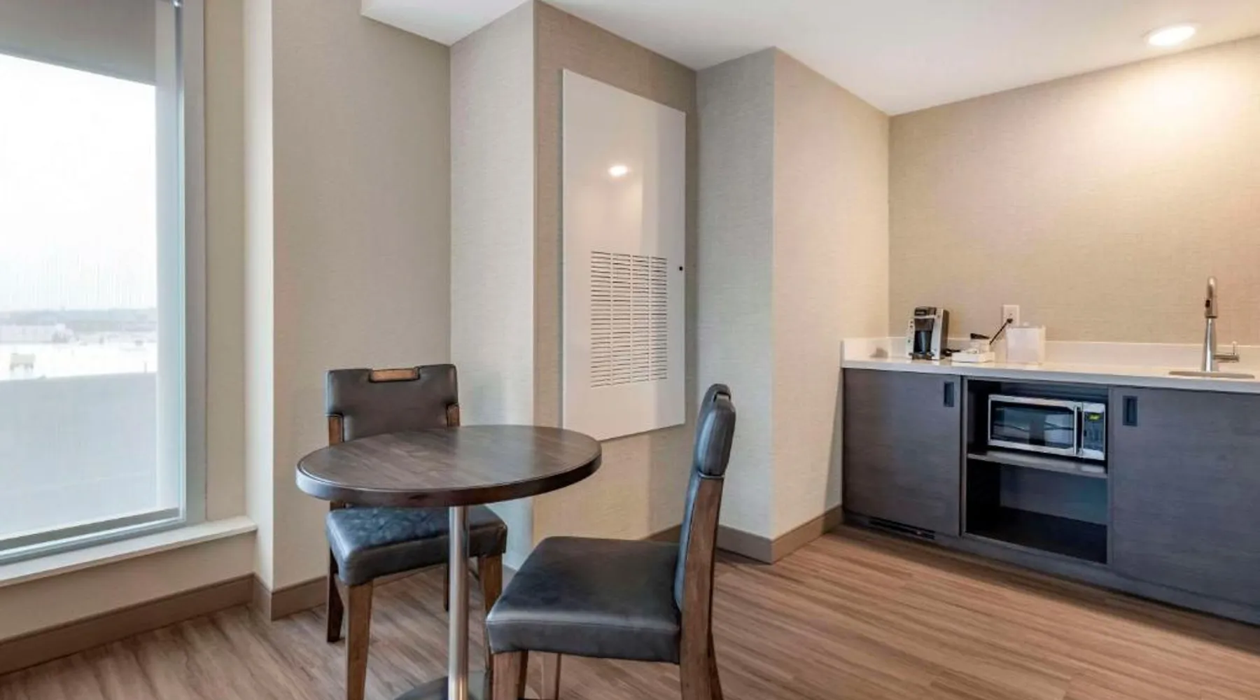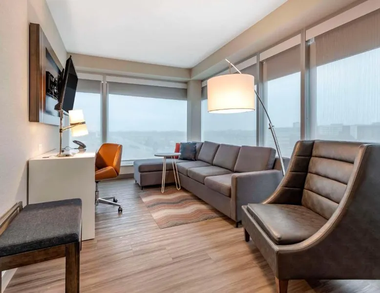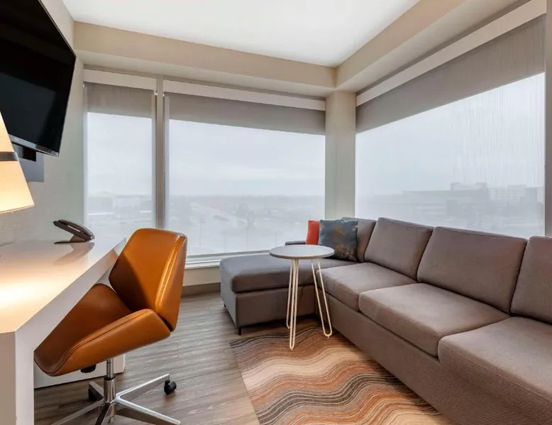 Comfortable Accommodations: Rooms feature air-conditioning, private bathrooms with walk-in showers, tea and coffee makers, and free WiFi. Additional amenities include work desks, refrigerators, and flat-screen TVs. Dining and Leisure: The modern, family-friendly restaurant serves American cuisine for dinner and cocktails. Guests can also enjoy an indoor swimming pool, fitness center, and bar. Free airport shuttle service is available. Convenient Location: Located in Bloomington, the hotel is a few steps from Minneapolis-Saint Paul International Airport. Mall of America is a 16-minute walk away. Nearby attractions include Lake Harriet (9.9 mi) and U.S. Bank Stadium (12 mi). Guest Satisfaction: Highly rated for its convenient location, room cleanliness, and comfort. The suite provides air conditioning, a tea and coffee maker, as well as a private bathroom featuring a walk-in shower and a hairdryer.