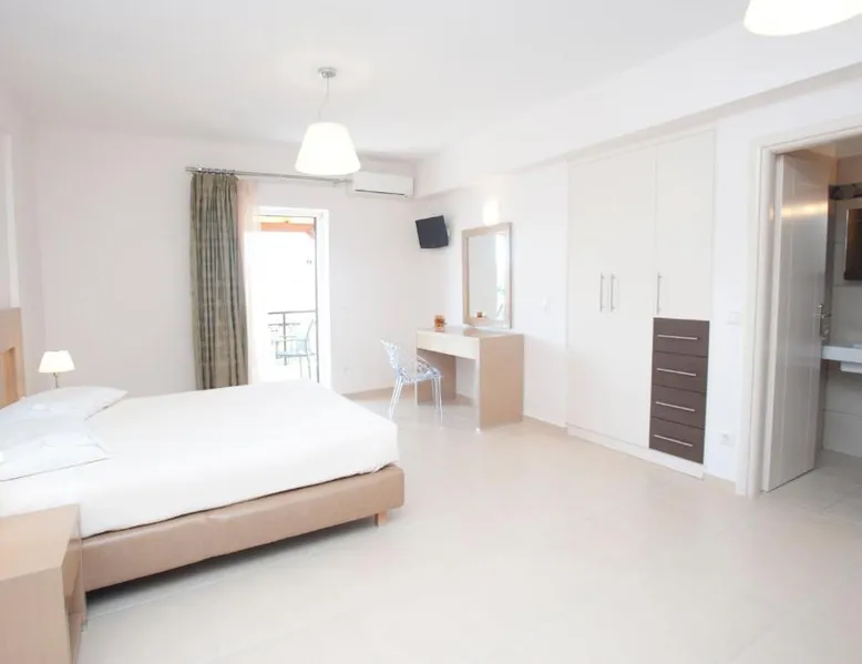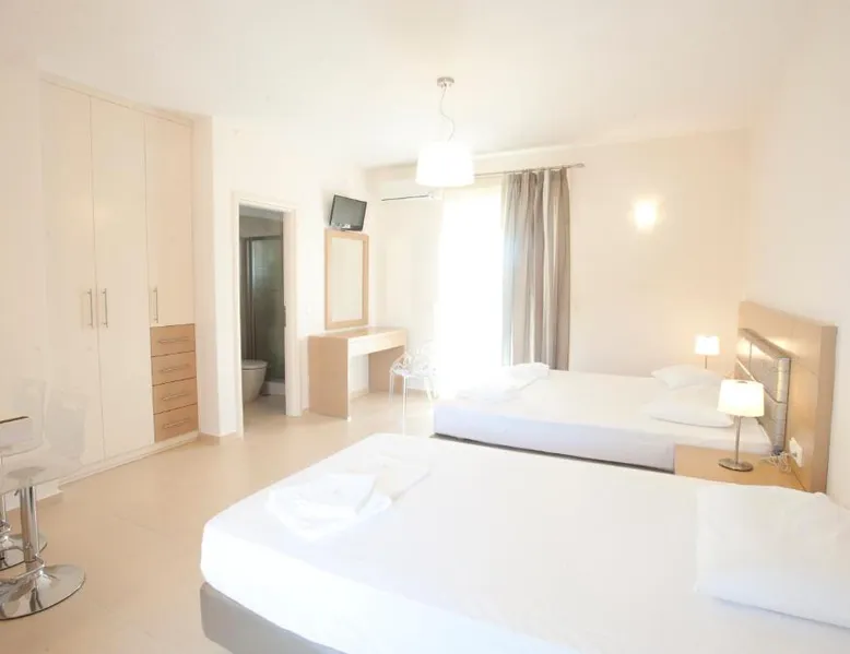 Beachfront Location: Georgio Seaside Hotel in Finikounta offers direct beachfront access and stunning sea views. Guests can relax on the sun terrace or enjoy the bar, perfect for unwinding by the shore. Comfortable Accommodations: The aparthotel features family rooms with balconies, kitchenettes, and private bathrooms. Each unit includes air-conditioning, a dining area, and modern amenities such as a TV and free WiFi. Convenient Facilities: Guests benefit from free on-site private parking, a paid shuttle service, and a lounge. Additional services include housekeeping, laundry, room service, and car hire. Nearby Attractions: Finikounta Beach is just a few steps away, while Kalamata International Airport is 29 mi from the property. Other points of interest include the nearby city views and ground-floor units. The spacious triple room offers air conditioning, soundproof walls, as well as a private bathroom featuring a shower and a hairdryer. In the kitchenette, guests will find a stovetop, a refrigerator, kitchenware and an oven. This triple room features a tea and coffee maker, a wardrobe, a flat-screen TV and a balcony. The unit offers 2 beds.