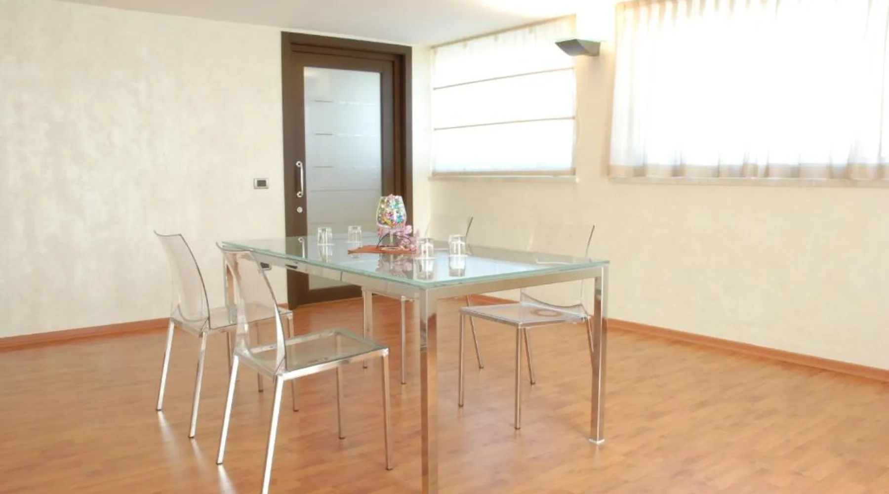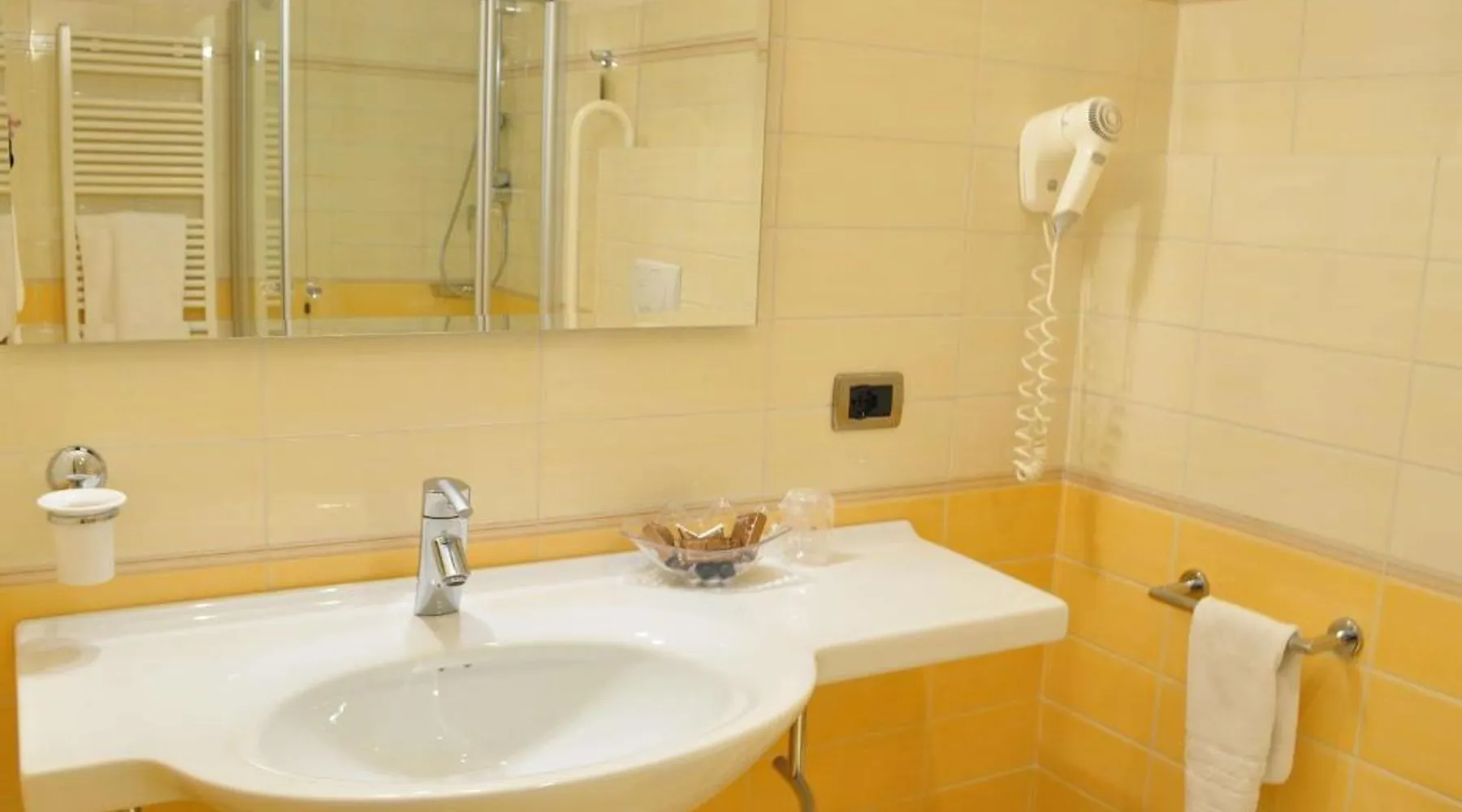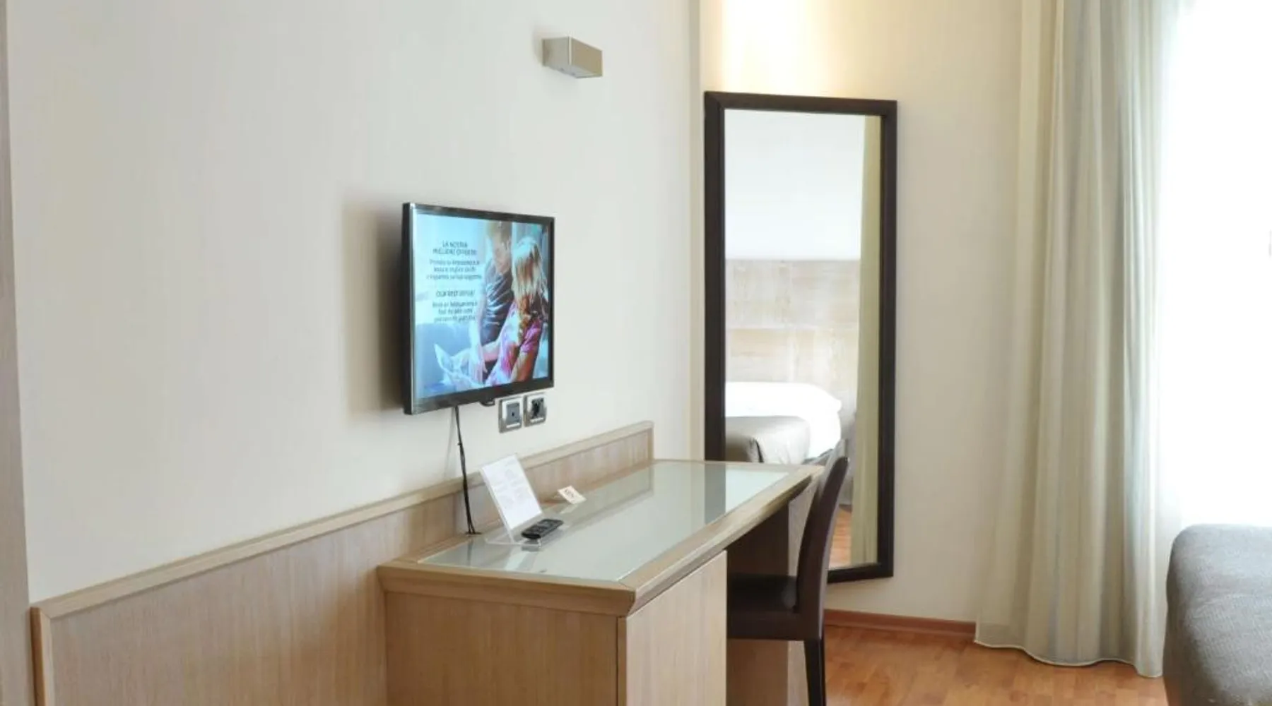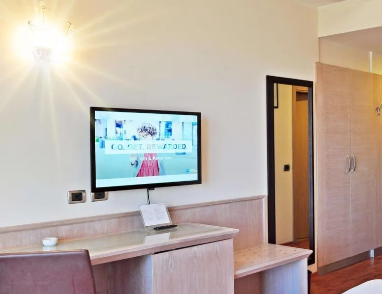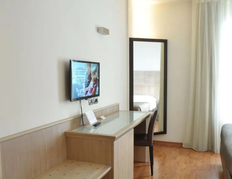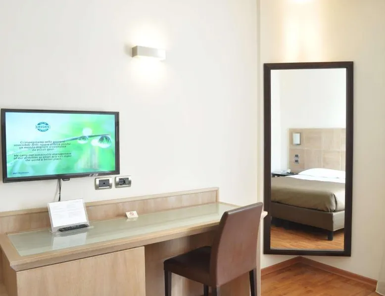 This property offers a Special Protection Program, a strict program of precise safeguards dedicated to our guests and our staff. San Giorgio Hotel offers modern guest rooms in a quiet location, a 2-minute drive from the A14 motorway in Forlì. It offers free Wi-Fi, a well-equipped gym and a free car park. Rooms are spacious and come with wood floors, a full-length mirror, LCD TV and a large work desk. Start your day with a buffet breakfast served in the breakfast room. Also open at lunch and dinner, I Meridani Restaurant specializes in meat and fish local recipes and it is located 984 feet away. The shared lounge area and snack bar comes with a TV with Mediaset channels. This air-conditioned double room includes a flat-screen TV with satellite channels and a private bathroom. The unit offers 1 bed.