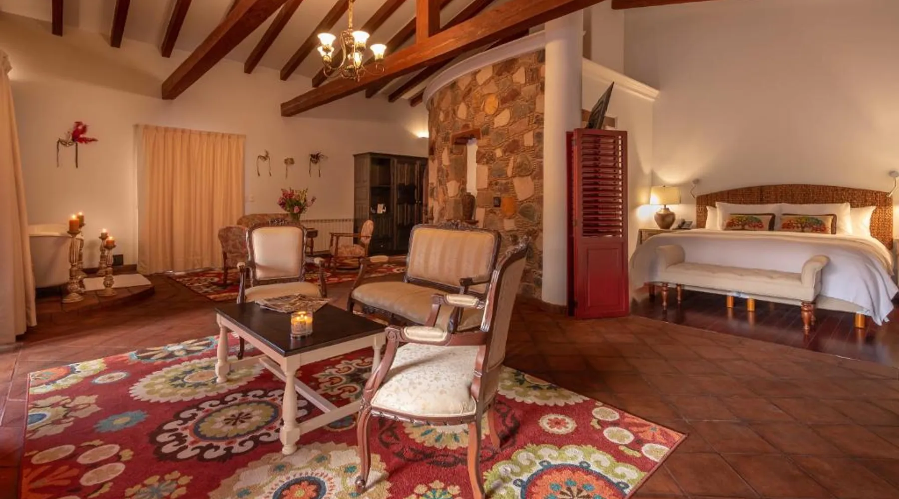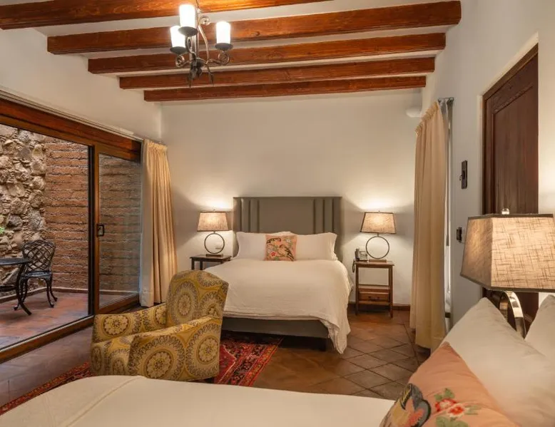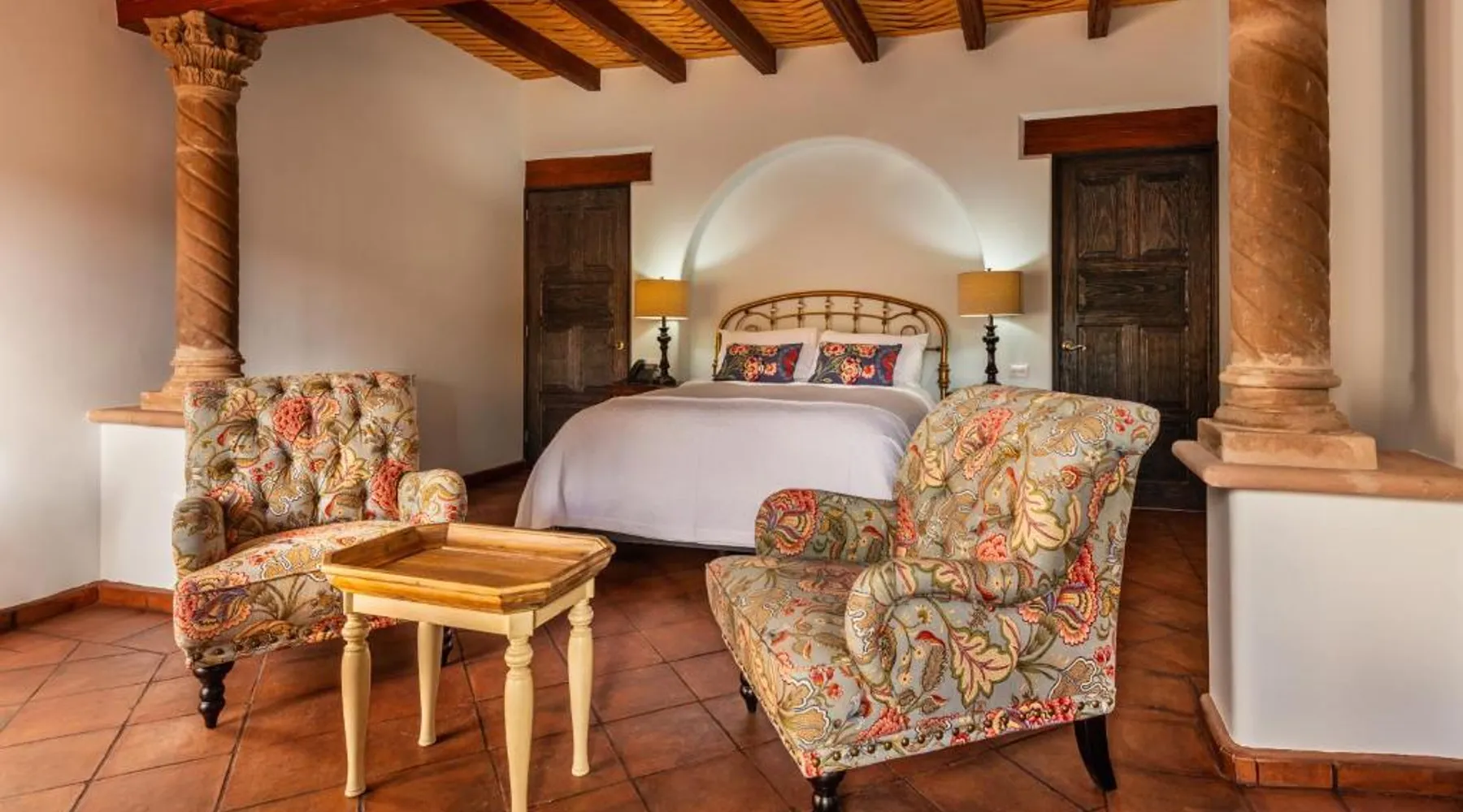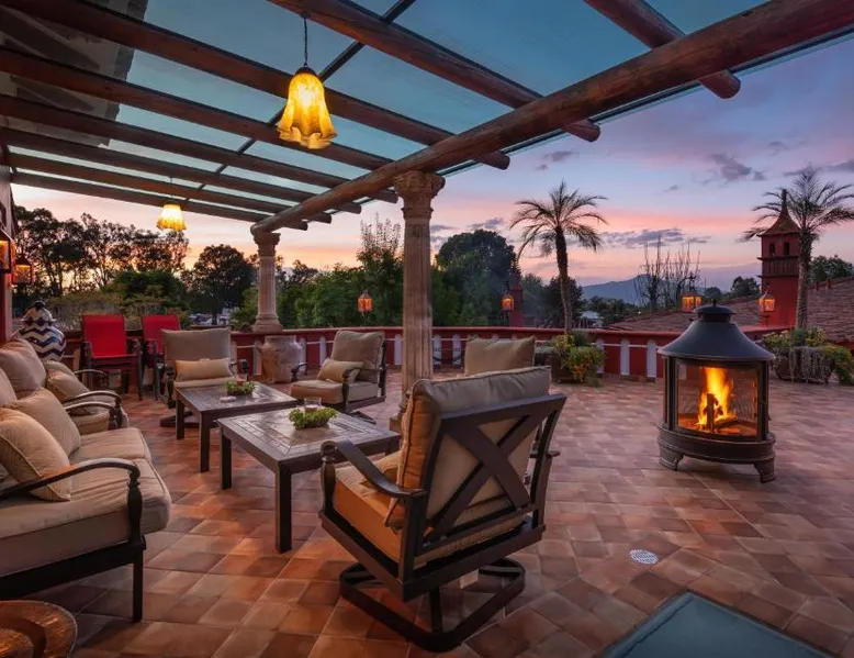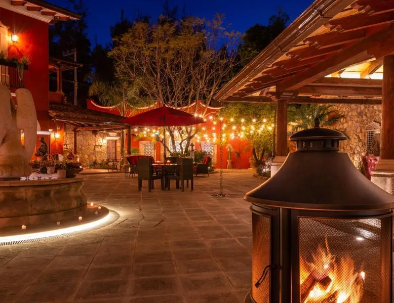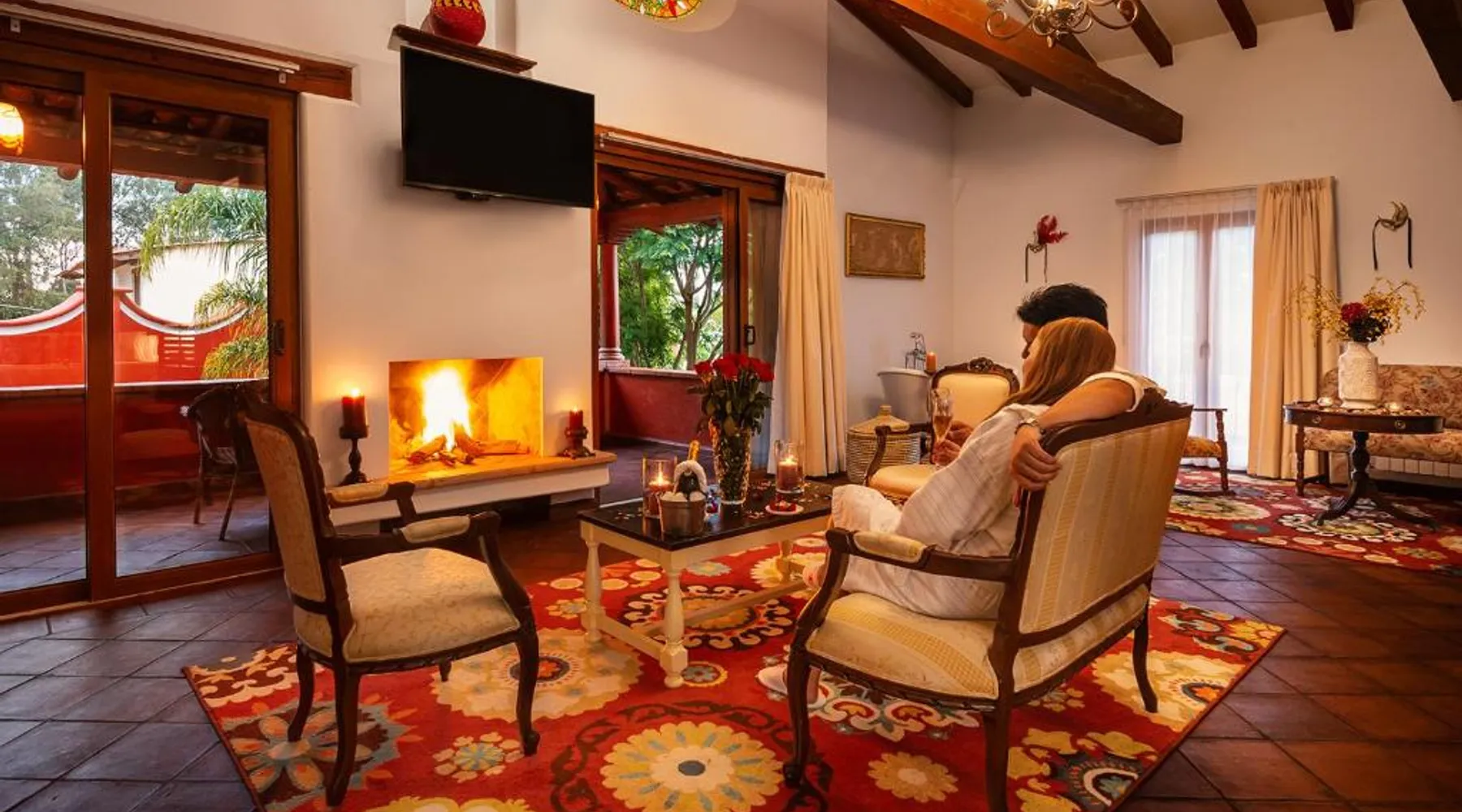 Elegant Accommodations: Hotel Boutique Casa Colorada in Pátzcuaro offers luxurious rooms with air-conditioning, private bathrooms, and modern amenities. Guests enjoy garden or inner courtyard views, balconies, and terraces. Exceptional Facilities: The hotel features a sun terrace, lush garden, and a family-friendly restaurant serving Italian and Mexican cuisines. Additional facilities include a bar, outdoor fireplace, and free WiFi throughout the property. Comfortable Amenities: Guests can relax in the hot tub, spa bath, or outdoor seating area. The property offers free private parking, a coffee shop, and a games room. Private check-in and check-out, a 24-hour front desk, and concierge services ensure a comfortable stay. Prime Location: Located 34 mi from Lic. y Gen. Ignacio López Rayón International Airport, the hotel is highly rated for its attentive staff and excellent service support. The fireplace is the standout feature of this suite. This suite features 1 living room, 1 separate bedroom and 1 bathroom with a shower and free toiletries. The air-conditioned suite features a flat-screen TV with streaming services, soundproof walls, a tea and coffee maker, a seating area as well as an inner courtyard view. The unit has 1 bed.