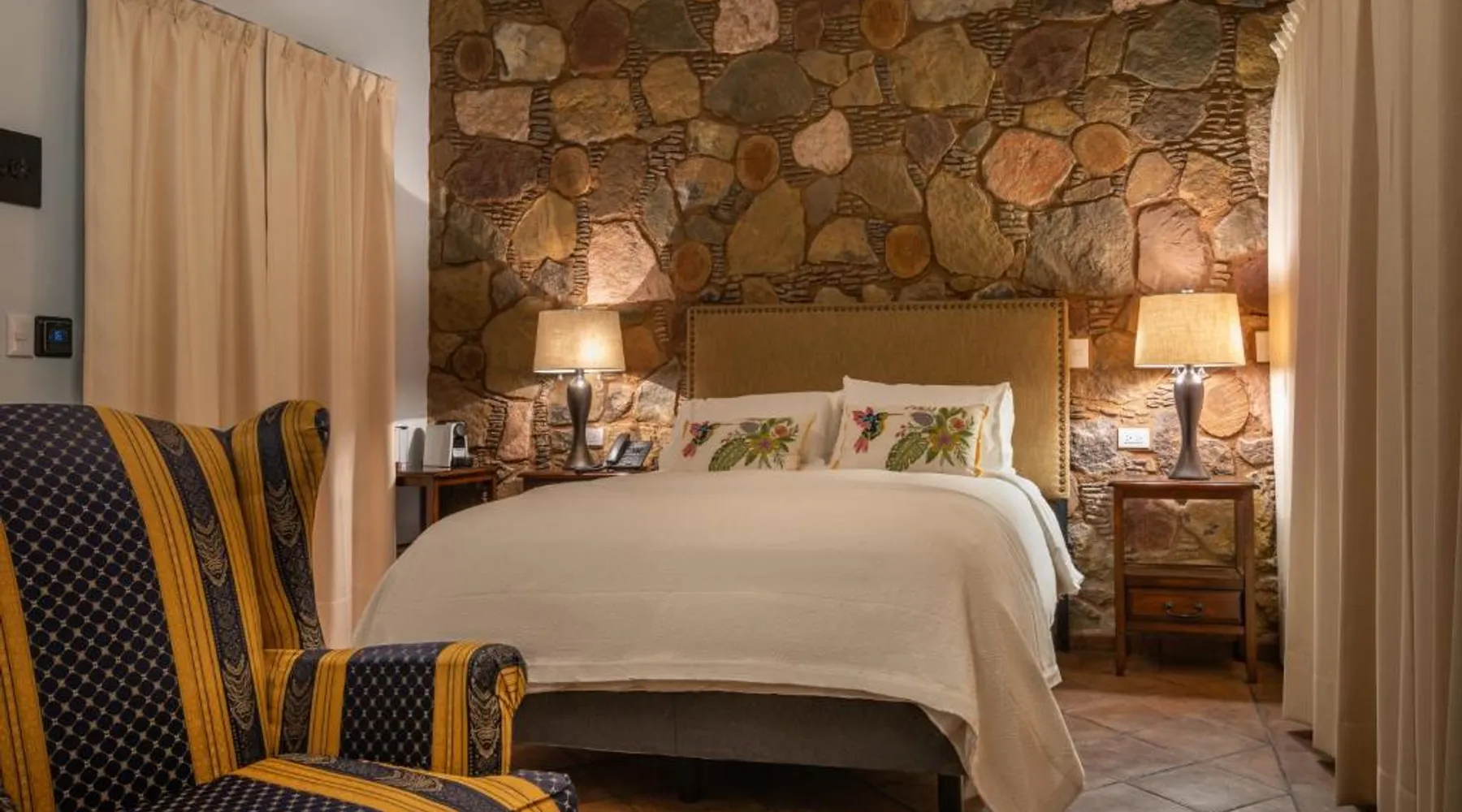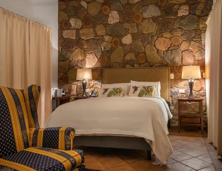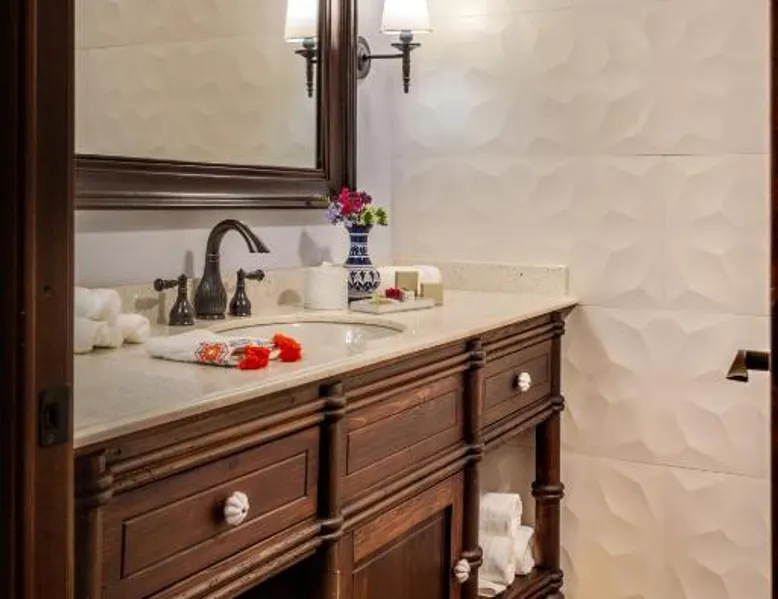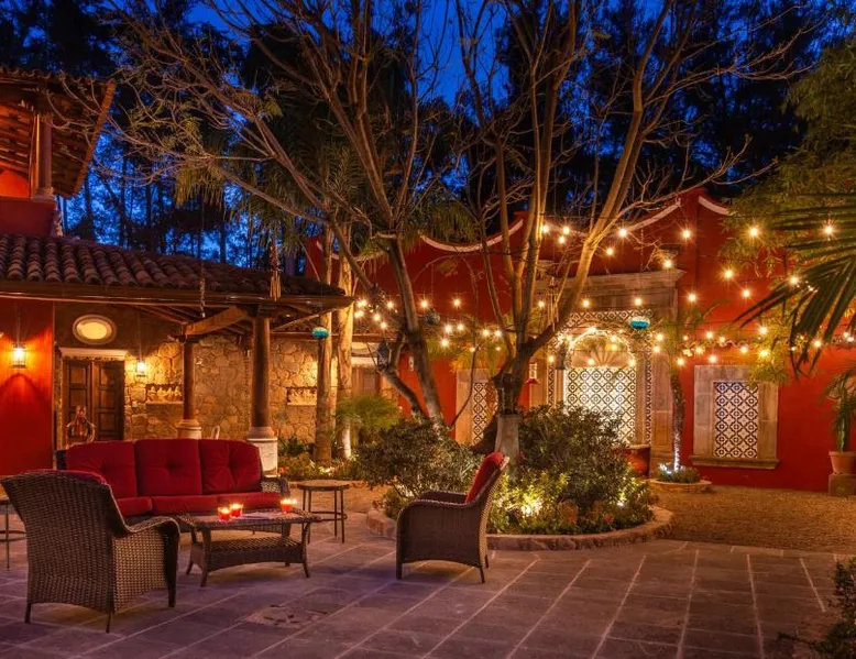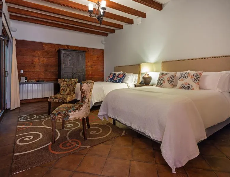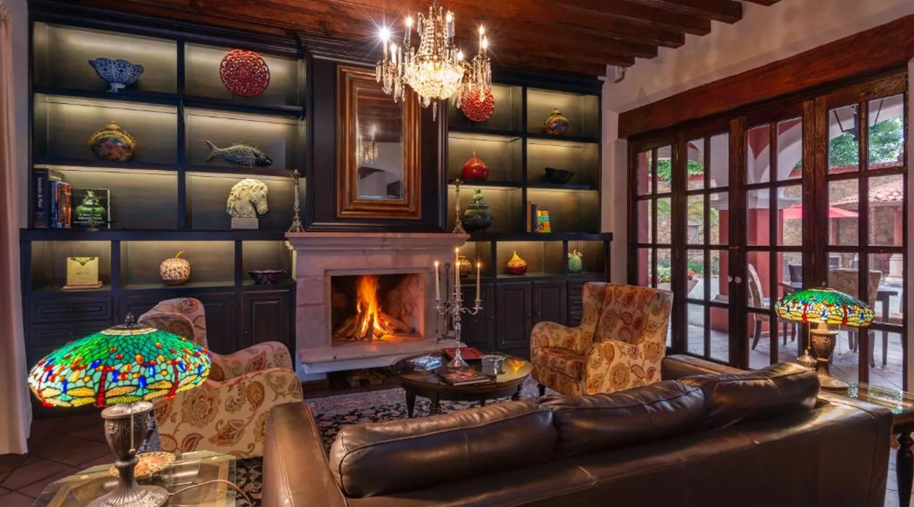 Elegant Accommodations: Hotel Boutique Casa Colorada in Pátzcuaro offers luxurious rooms with air-conditioning, private bathrooms, and modern amenities. Guests enjoy garden or inner courtyard views, balconies, and terraces. Exceptional Facilities: The hotel features a sun terrace, lush garden, and a family-friendly restaurant serving Italian and Mexican cuisines. Additional facilities include a bar, outdoor fireplace, and free WiFi throughout the property. Comfortable Amenities: Guests can relax in the hot tub, spa bath, or outdoor seating area. The property offers free private parking, a coffee shop, and a games room. Private check-in and check-out, a 24-hour front desk, and concierge services ensure a comfortable stay. Prime Location: Located 34 mi from Lic. y Gen. Ignacio López Rayón International Airport, the hotel is highly rated for its attentive staff and excellent service support. The fireplace is the standout feature of this suite. This suite features 1 living room, 1 separate bedroom and 1 bathroom with a shower and free toiletries. The air-conditioned suite features a flat-screen TV with streaming services, soundproof walls, a tea and coffee maker, a seating area as well as an inner courtyard view. The unit has 1 bed.