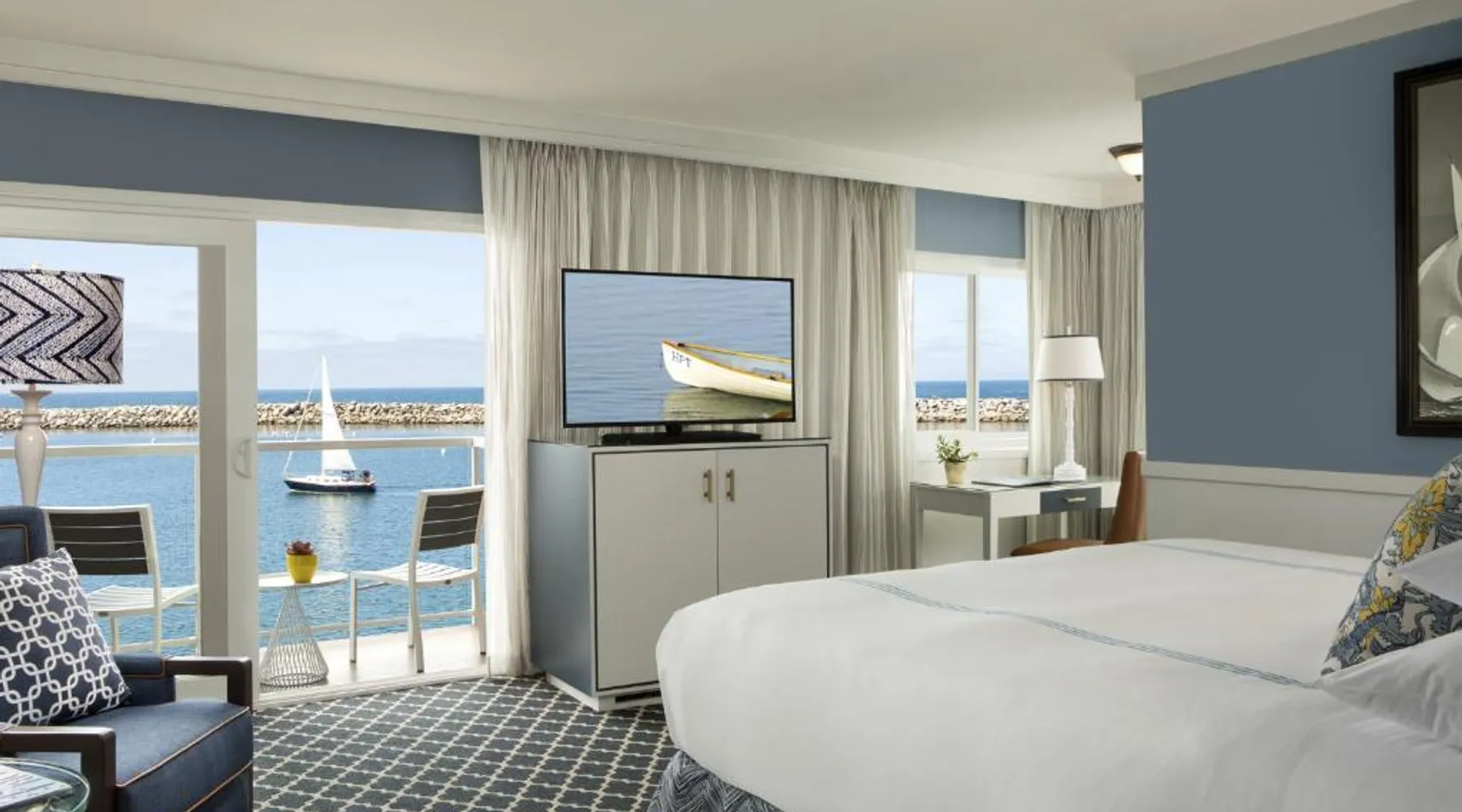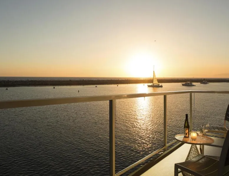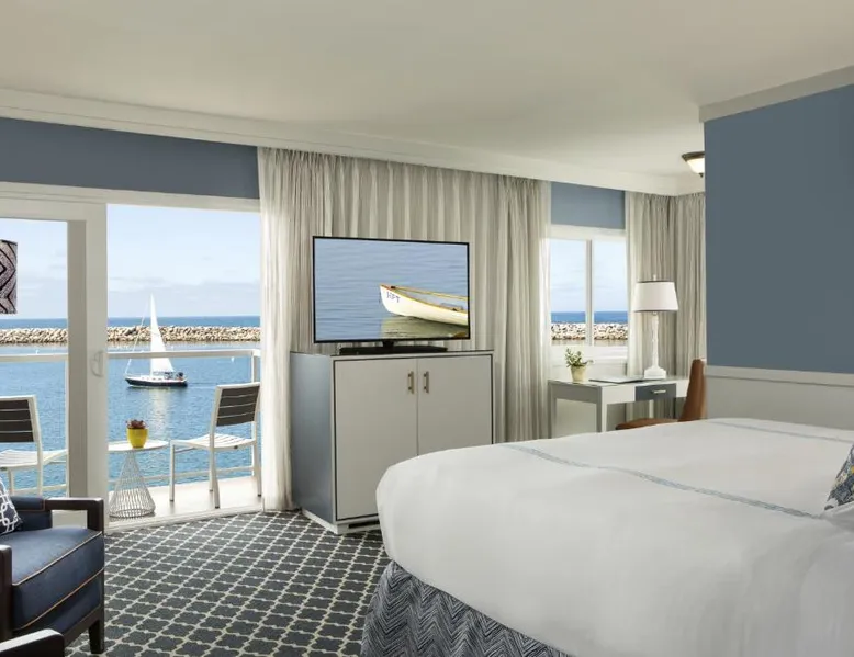 Surrounded by the tranquil natural environment of Redondo Beach, California, and only a short drive from the action of Los Angeles, this waterfront hotel offers accommodations in an unrivaled location. The Portofino Hotel provides guests with a peaceful retreat. A private marina and complimentary bicycle rental are available and guests can have a relaxing stay. A number of area attractions and major cities are located in close proximity to the Portofino. Charming shops, gourmet restaurants and a variety of recreational activities are also only moments away. Guests at the Portofino can enjoy a unique dining experience at the Baleen restaurant, located on-site and featuring a varied seafood menu. The Living Room Bar is also located on-site and features a variety of cocktails and specialty beverages in a cozy and comfortable atmosphere. This studio has 1 king bed with a sitting area offering a couch that opens to a queen size bed for extra guests. These bright ocean-front rooms are decorated in soft blue and yellow hues and are located on the 1st, 2nd or 3rd floors. They are furnished with private patios or balconies with partial ocean views.