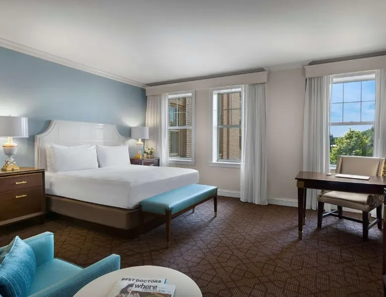 This hotel is across from Forest Park and 3.1 mi from Downtown St. Louis. The hotel offers 3 restaurants, and a 5 screen movie theater. Rooms at The Royal Sonesta Chase Park Plaza St Louis include a in-room movie service. The rooms also feature satellite TV and WiFi access. Royal Sonesta Chase Park Plaza features a heated outdoor seasonal pool and an outdoor fireplace. Guest can have a snack and drinks poolside. The hotel also features a gym. The Royal Sonesta Chase Park Plaza St Louis offers several dining options. The Chase Club features either indoor or terrace dining overlooking the hotel's Mediterranean-style seasonal pool. The Tenderloin Room offers upscale dining and The Preston features traditional American fare. The Royal Sonesta Chase Park Plaza St Louis is 3.1 mi from the St. Louis Zoo. The St. Louis University is 1.9 mi from the hotel. This air-conditioned room features a flat-screen TV, coffee maker and a marble bathroom equipped with a hairdryer. This room has a bathroom a tub or a walk-in shower.
