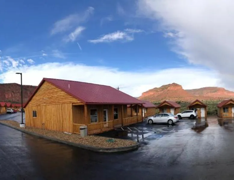 Comfortable Accommodations: Red Canyon Cabins in Kanab offers 4-star lodge rooms with air-conditioning, private bathrooms, and mountain views. Each room includes a balcony or patio, tea and coffee maker, and soundproofing for a restful stay. Essential Facilities: Guests enjoy a garden, free WiFi, and free on-site parking. Additional amenities include a picnic area, family rooms, room service, and barbecue facilities. The property also features a 24-hour front desk, housekeeping service, and a dining area. Convenient Location: Located 73 mi from Page Municipal Airport, the lodge is located on a quiet street with mountain views. Highly rated for its room comfort, convenient location, and quietness, Red Canyon Cabins provides a peaceful retreat. The double room offers air conditioning, a private entrance, a balcony with mountain views as well as a private bathroom featuring a bath. The unit offers 1 bed.