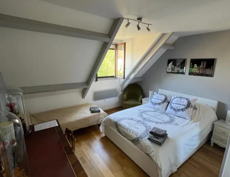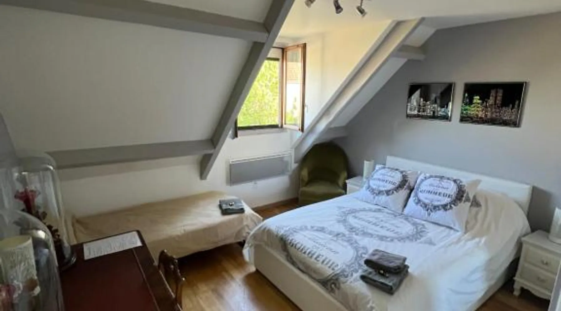 Comfortable Accommodations: La Maison Du Bonheur in Saintry sur Seine offers recently renovated bedrooms with garden or inner courtyard views. Each room includes a private bathroom, air-conditioning, and soundproofing for a restful stay. Relaxing Facilities: Guests can enjoy spa facilities, a sun terrace, and a beautiful garden. Free WiFi is available throughout the property, ensuring connectivity. Delicious Breakfast: A continental buffet breakfast is served daily, featuring local specialties, fresh pastries, and vegetarian and vegan options. Additional amenities include a coffee shop, outdoor seating area, and picnic spots. Convenient Location: Located 13 mi from Paris Orly Airport, the property is near attractions such as Luxembourg Gardens (25 mi) and the Louver Museum (27 mi). Free parking is provided for guests. Providing free toiletries, this double room includes a shared bathroom with a shower and a hairdryer. Among the room amenities are soundproof walls, a dining area and a wardrobe as well as garden views. The unit offers 1 bed.