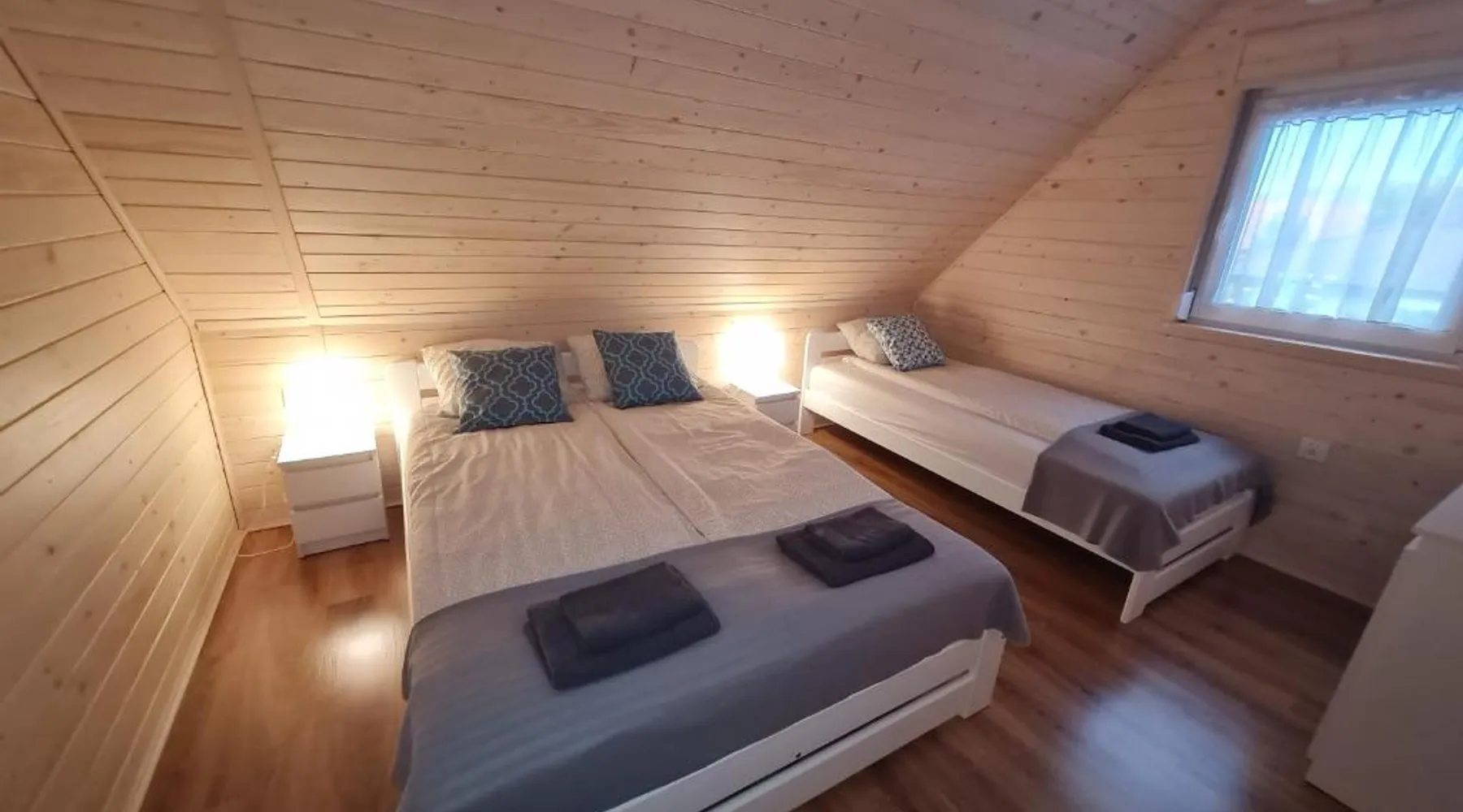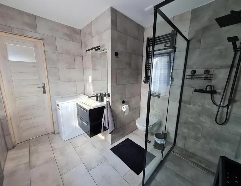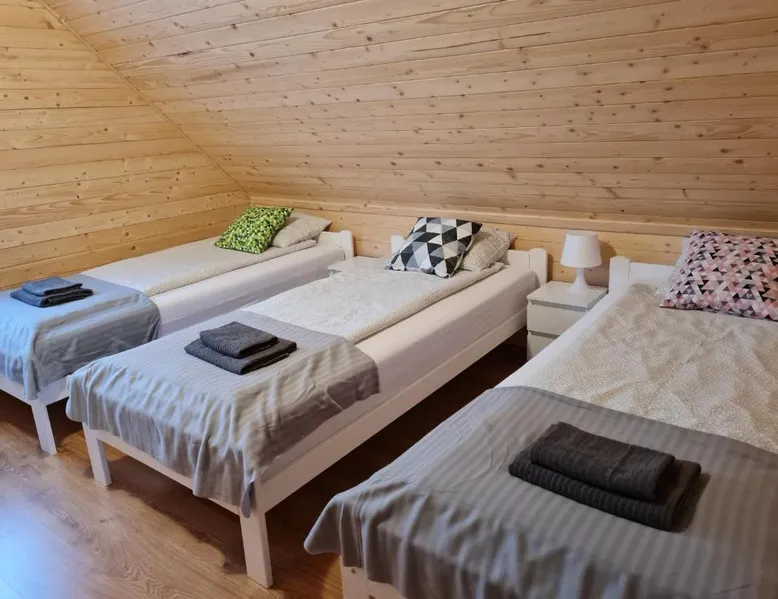 Elegant Accommodations: Słoneczny Zakątek in Lubrza offers a villa with a sauna, sun terrace, and a seasonal outdoor swimming pool. Guests enjoy a beautiful garden, water sports facilities, and free WiFi throughout the property. Comfortable Amenities: The villa features private check-in and check-out services, a lounge, outdoor fireplace, shared kitchen, and family rooms. Additional amenities include an outdoor play area, picnic area, barbecue facilities, and free on-site private parking. Local Attractions: Located 6.8 mi from The Monument of Jesus and 22 mi from Zielona Góra Airport, the property provides easy access to local points of interest. Guests can enjoy film nights, hiking, and cycling activities. Highly Rated by Guests: Słoneczny Zakątek is highly rated by guests for its excellent facilities and comfortable accommodations. This villa's special feature is the sauna. Featuring a private entrance, this air-conditioned villa consists of 1 living room, 3 separate bedrooms and 3 bathrooms with a shower and a hairdryer. Guests will find a stovetop, a refrigerator, a dishwasher and kitchenware in the fully equipped kitchen. The villa also provides guests with a barbecue. Boasting a terrace with garden views, this villa also provides a washing machine and a flat-screen TV. The unit offers 7 beds.