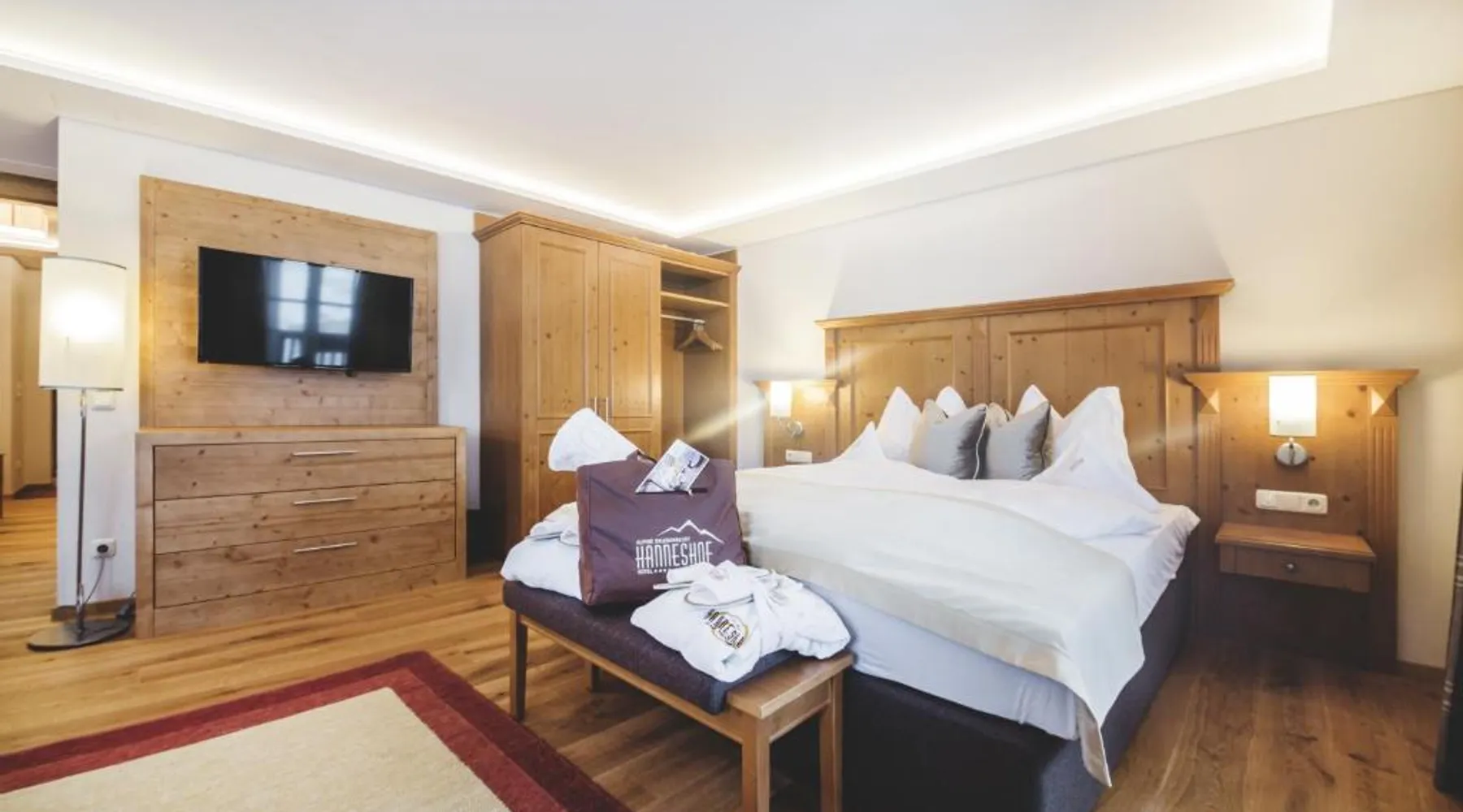 Quietly located on the hillside of the Kleinarltal Valley, the 4-star Familien- und Wellnesshotel Hanneshof offers a fully equipped spa area and internet access. All rooms in the Hanneshof provide a balcony, cable TV and a bathroom with bathrobes and separate toilets. The 3.3 ft² big spa area features, among others, several kinds of saunas, such as a herbal sauna, as well as a steam bath, a heated outside pool and a tea bar. The Hanneshof houses its own ski school, the Club Pingo children's ski school and it offers ski equipment rentals and a VIP ski shuttle. Framed by a panorama of the Hohe Tauern National Park, a range of hiking and bike trails as well as cross-country skiing trails start right on the doorstep of the Wellnesshotel Hanneshof. The city of Salzburg is 43 mi away. Features a spacious bedroom with a seating area. Please note that the rate is based on 2 guests. Maximum occupancy is 4 guests (see hotel policies). If you arrive with children, please inform the property about their number and age.