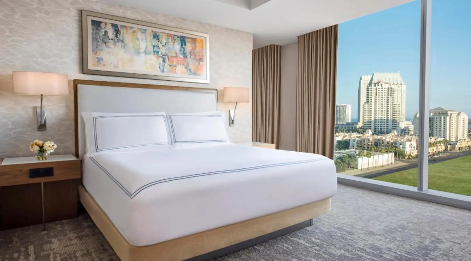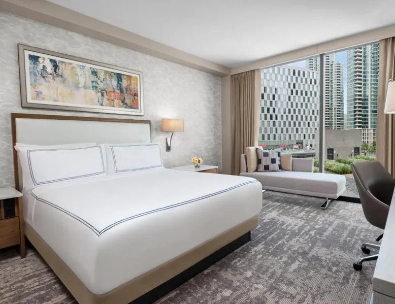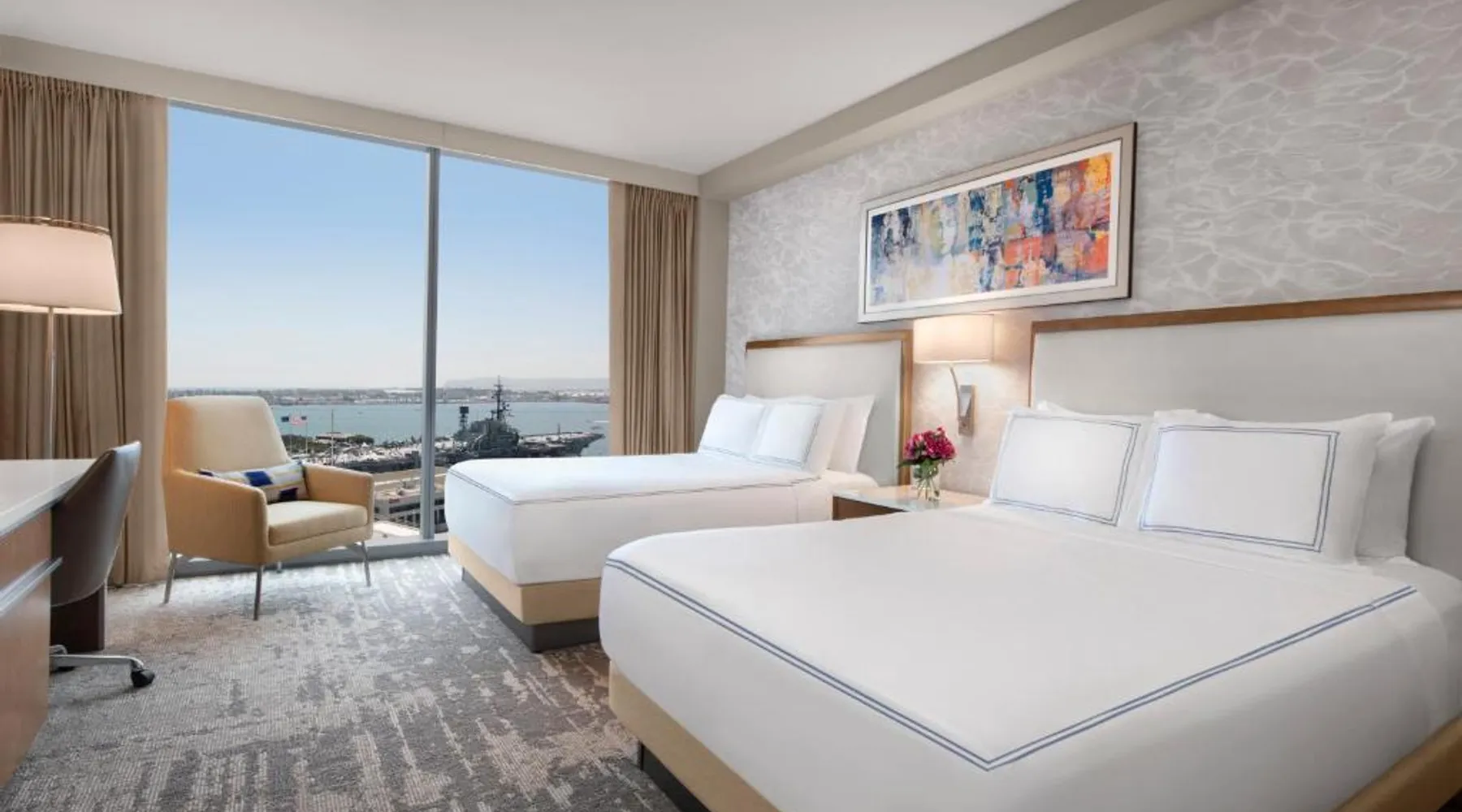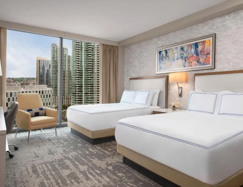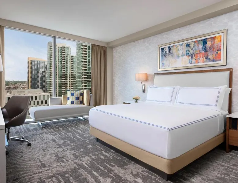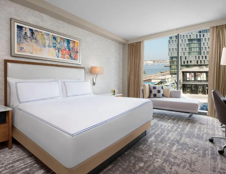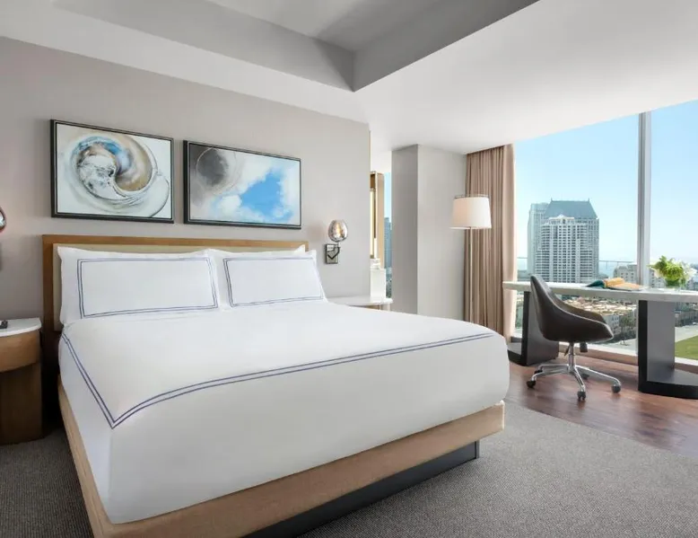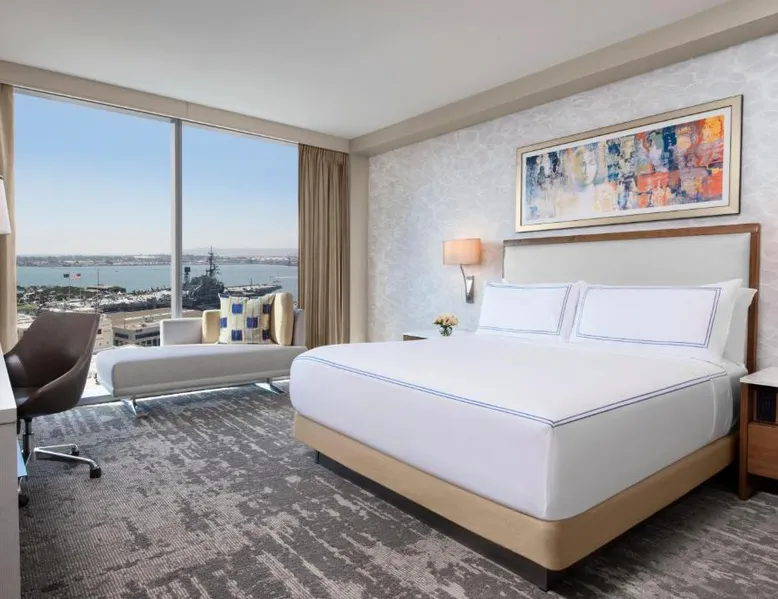 Located on the San Diego waterfront, this urban boutique hotel features guest rooms with floor-to-ceiling windows with striking San Diego Bay views. InterContinental San Diego features 3 dining venues and features a 4th floor rooftop bar. San Diego International Airport is 12 minutes’ drive away. The comfortable air-conditioned guest rooms at this hotel include a 49-inch TV, a custom coffee machine and a mini-bar. Guest bathrobes and slippers are also provided. Vistal, InterContinental San Diego’s signature restaurant, features an eclectic blend of cuisine influenced by the Baja Peninsula, the Pacific Islands and Mediterranean fishing villages. The locally sourced menu includes blue prawns with purple sweet potato gnocchi and roasted poblano, gold spotted bass with yam greens and lobster-coconut broth and local abalone with smoked onion sabayon and uni. A selection of craft cocktails, local and international beers and a curated wine selection are also offered at Vistal. Guests of InterContinental San Diego can work out in the expansive health and wellness center which features San Diego Bay views, a personalized video wall and an outdoor yoga terrace. The USS Midway Museum is 1 mi away from this hotel. International Cruise Ship Terminals are 4 minutes’ drive away. PETCO Park, home of the San Diego Padres professional baseball team, is 10 minutes’ drive from InterContinental San Diego. 15% discount at Garibaldi and Vistal restaurants. Providing free toiletries and bathrobes, this double room includes a private bathroom with a walk-in shower, a hairdryer and slippers. The spacious air-conditioned double room provides a flat-screen TV with cable channels, soundproof walls, a mini-bar, a tea and coffee maker as well as city views. The unit offers 1 bed.