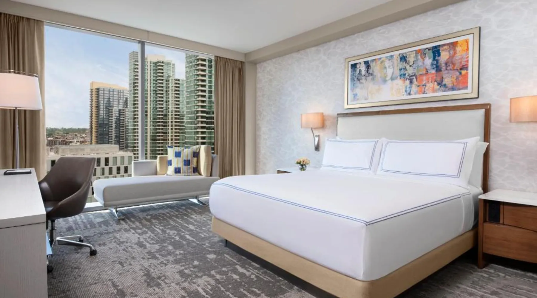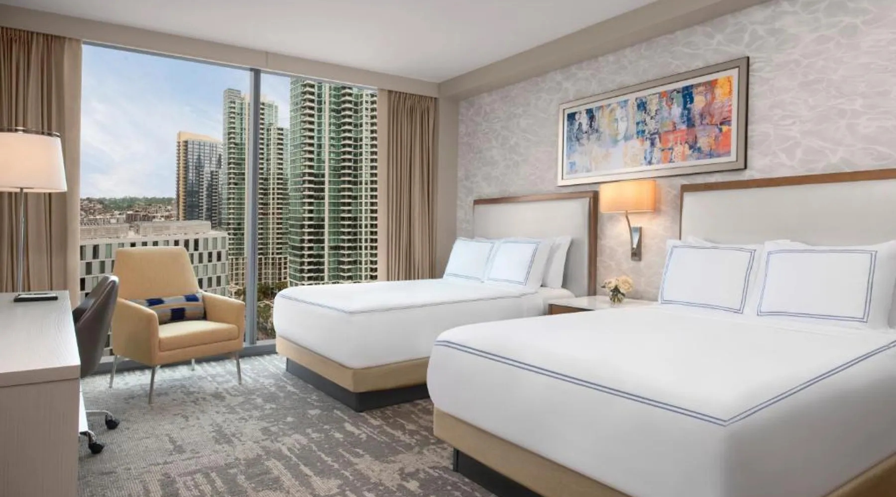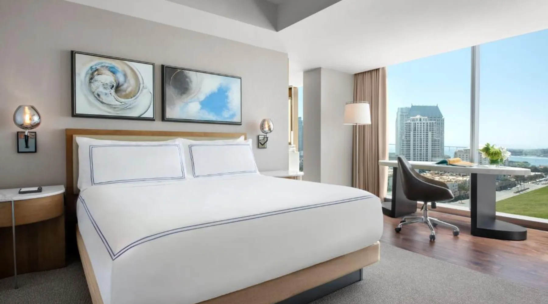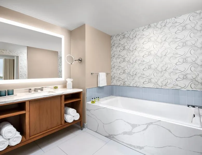 Located on the San Diego waterfront, this urban boutique hotel features guest rooms with floor-to-ceiling windows with striking San Diego Bay views. InterContinental San Diego features 3 dining venues and features a 4th floor rooftop bar. San Diego International Airport is 12 minutes’ drive away. The comfortable air-conditioned guest rooms at this hotel include a 49-inch TV, a custom coffee machine and a mini-bar. Guest bathrobes and slippers are also provided. Vistal, InterContinental San Diego’s signature restaurant, features an eclectic blend of cuisine influenced by the Baja Peninsula, the Pacific Islands and Mediterranean fishing villages. The locally sourced menu includes blue prawns with purple sweet potato gnocchi and roasted poblano, gold spotted bass with yam greens and lobster-coconut broth and local abalone with smoked onion sabayon and uni. A selection of craft cocktails, local and international beers and a curated wine selection are also offered at Vistal. Guests of InterContinental San Diego can work out in the expansive health and wellness center which features San Diego Bay views, a personalized video wall and an outdoor yoga terrace. The USS Midway Museum is 1 mi away from this hotel. International Cruise Ship Terminals are 4 minutes’ drive away. PETCO Park, home of the San Diego Padres professional baseball team, is 10 minutes’ drive from InterContinental San Diego. 15% discount at Garibaldi and Vistal restaurants. Providing free toiletries and bathrobes, this double room includes a private bathroom with a walk-in shower, a hairdryer and slippers. The spacious air-conditioned double room provides a flat-screen TV with cable channels, soundproof walls, a mini-bar, a tea and coffee maker as well as city views. The unit offers 1 bed.