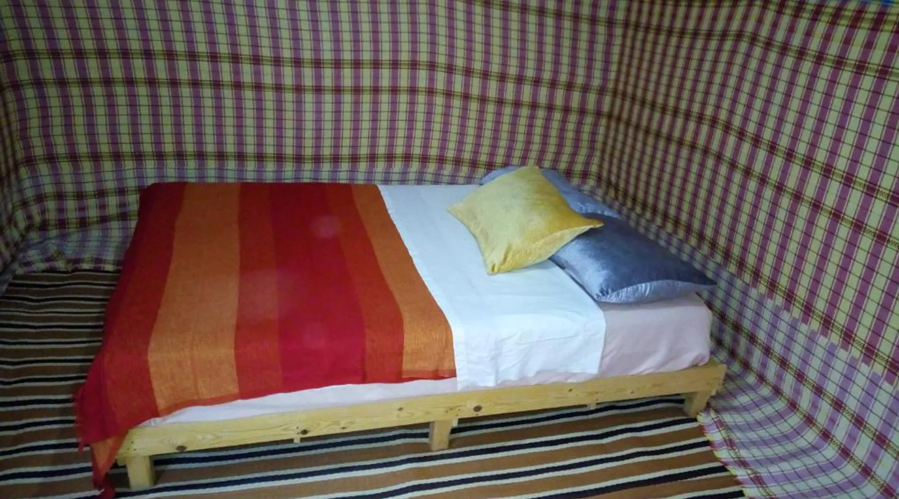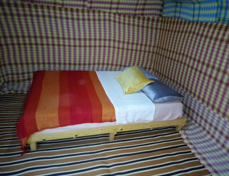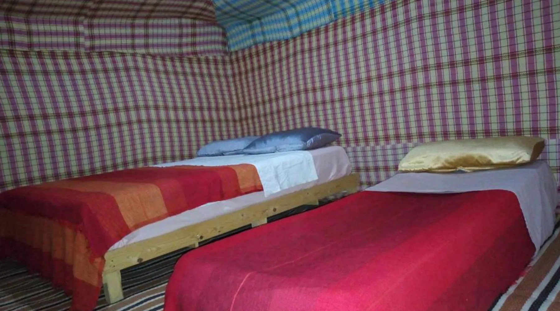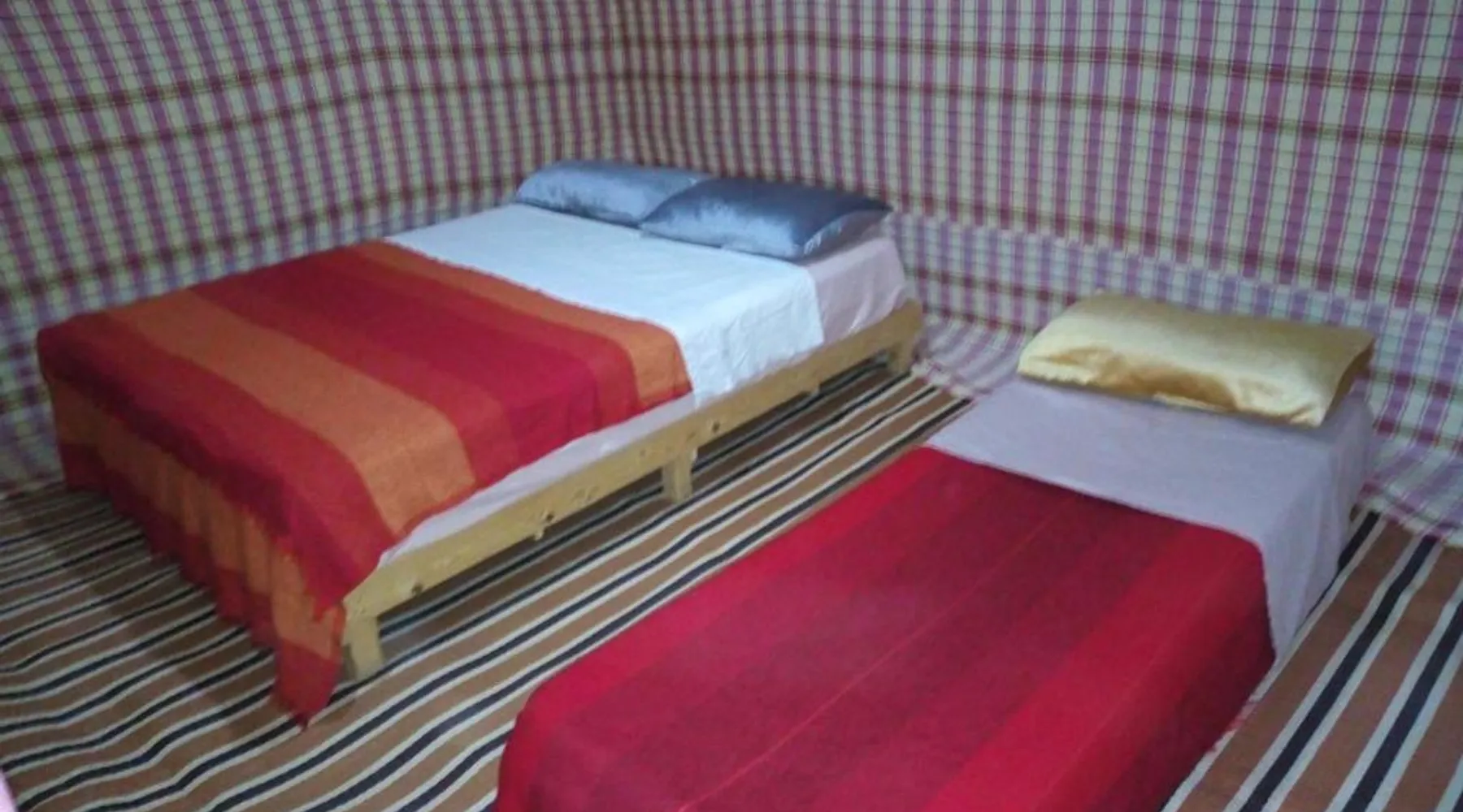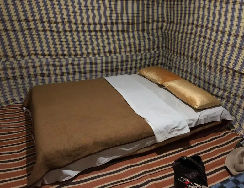 Accommodations: Sahara Camel Tours Camp in Merzouga offers comfortable camping with free WiFi and private parking. The property features an outdoor dining area, sofa bed, and shared bathroom. Activities: Guests can enjoy skiing and other outdoor activities. The camp provides a relaxing environment for all visitors. Location: Located 73 mi from Moulay Ali Cherif Airport, the camp is located in Hassi Labied. Reception staff speak Arabic, English, Spanish, French, and Italian. This tent has a shared bathroom and a dining area. The unit has 3 beds.