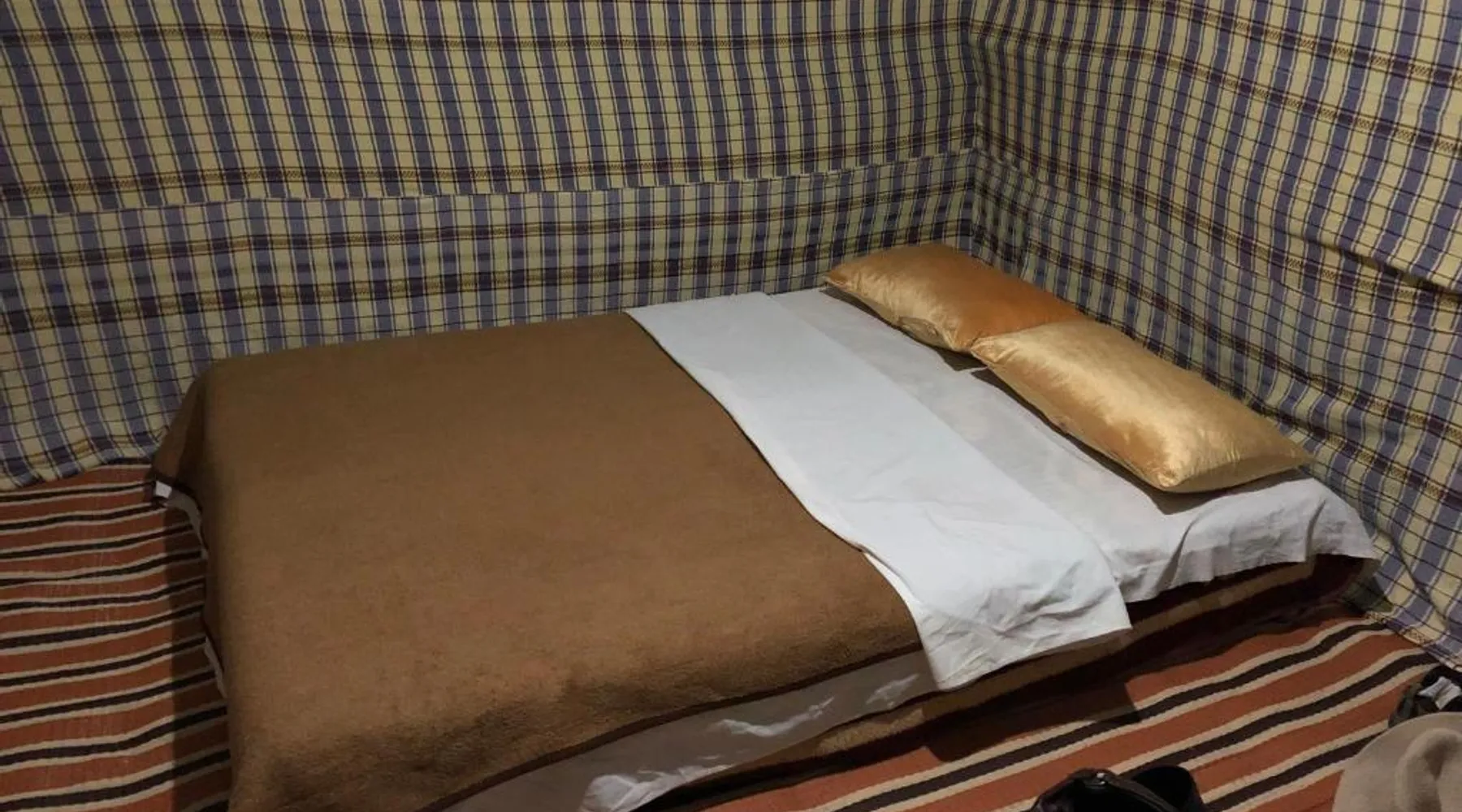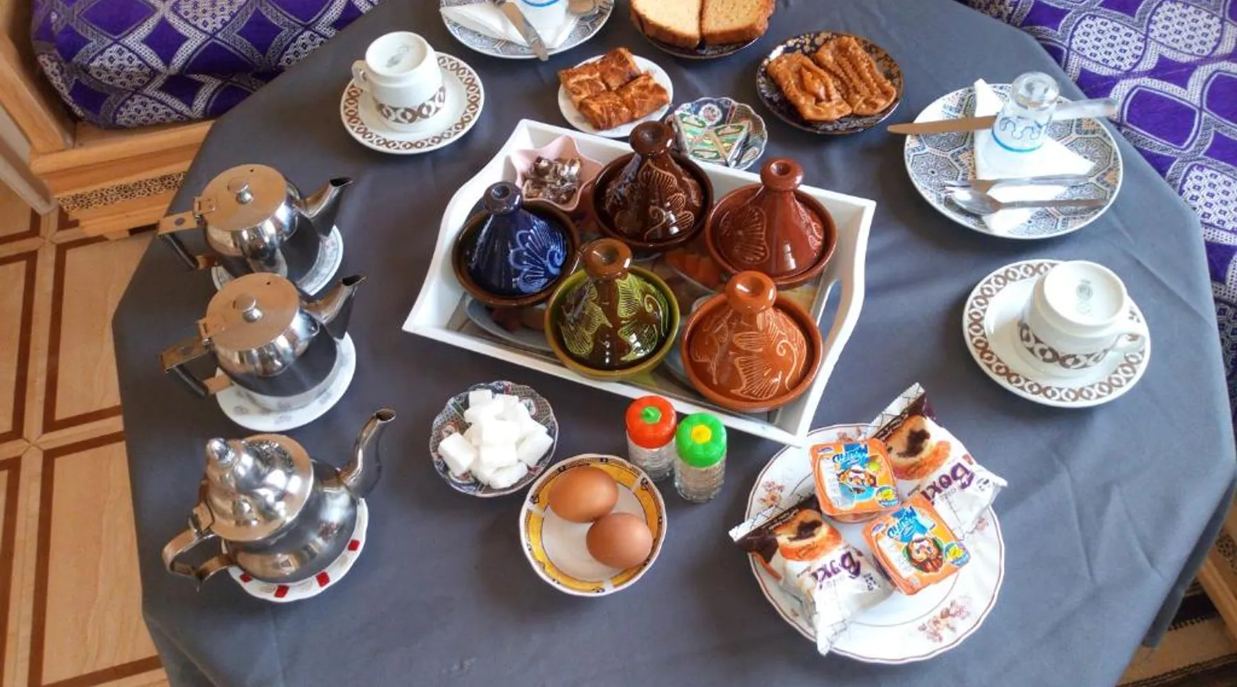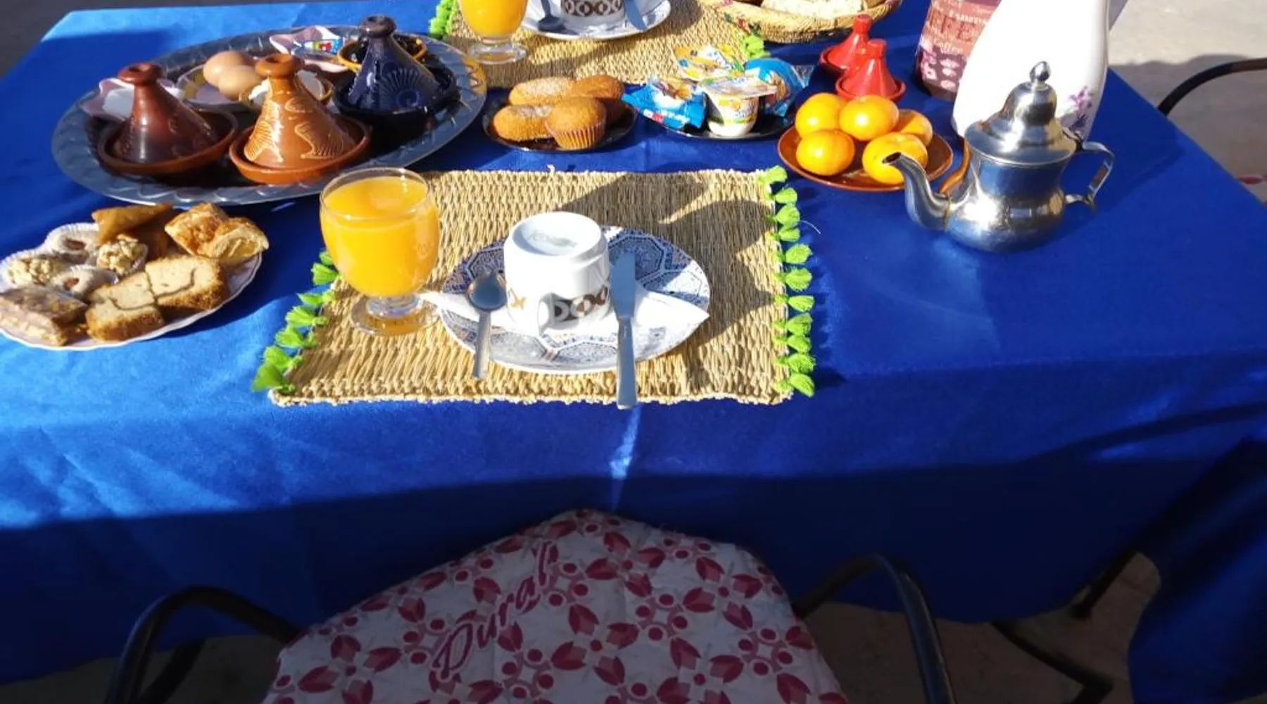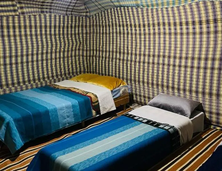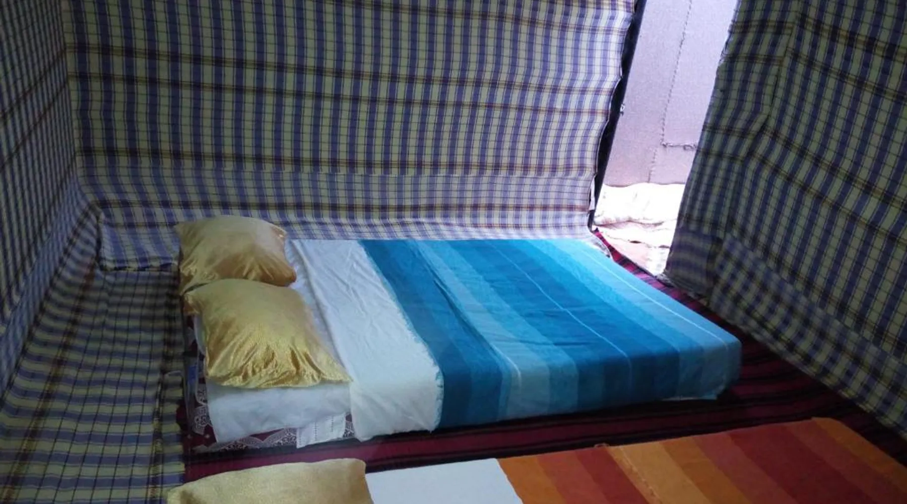 Accommodations: Sahara Camel Tours Camp in Merzouga offers comfortable camping with free WiFi and private parking. The property features an outdoor dining area, sofa bed, and shared bathroom. Activities: Guests can enjoy skiing and other outdoor activities. The camp provides a relaxing environment for all visitors. Location: Located 73 mi from Moulay Ali Cherif Airport, the camp is located in Hassi Labied. Reception staff speak Arabic, English, Spanish, French, and Italian. This tent has a shared bathroom and a dining area. The unit has 3 beds.