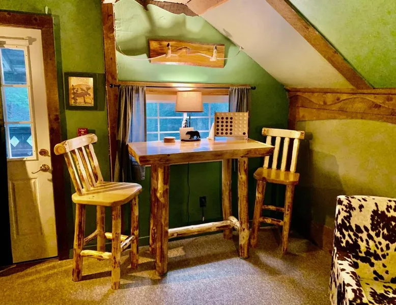 Comfortable Accommodations: Grunberg Haus Inn & Cabins in Waterbury offers family rooms with private bathrooms, balconies, and amenities such as air-conditioning, fireplaces, and free WiFi. Dining Experience: The traditional restaurant serves American cuisine with vegetarian options. Guests can also enjoy a coffee shop and outdoor seating area. Leisure Activities: The lodge features a sun terrace, outdoor fireplace, games room, and bicycle parking. Activities include skiing and film nights. Convenient Location: Located 28 mi from Burlington International Airport, the property is near attractions like Mount Mansfield (21 mi) and Stowe Village Historic District (14 mi). Highly rated for its friendly host and excellent service. The fireplace is a top feature of this family room. The family room features air conditioning, a private entrance, as well as a private bathroom boasting a shower and a hairdryer. The family room features a seating area, a tea and coffee maker and heating. The unit has 1 bed.
