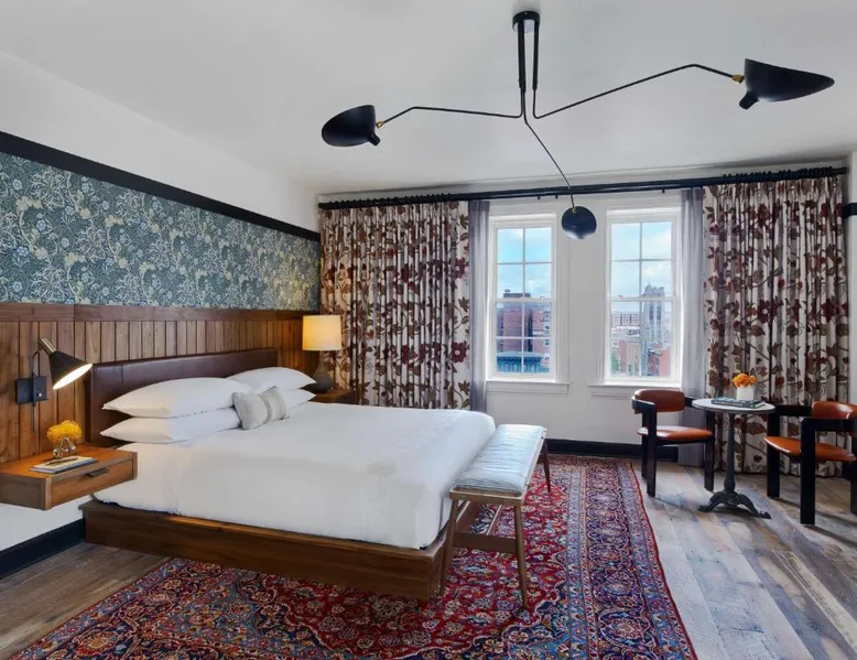Located in the Mt. Vernon Cultural District of downtown Baltimore, this hotel is adjacent to the Washington Monument and Museum. It offers on-site dining and classical rooms with free WiFi. Each room at the Hotel Revival Baltimore features warm colors and classical furniture. They include white marble walls in the bathroom and a 32-inch flat-screen TV. A microwave and coffee maker are also provided. A fitness center and a large library with oriental moldings are part of the facilities. The on-site restaurant, Topside, serves French-influenced American cuisine for breakfast, lunch, and dinner. The University of Maryland at Baltimore is a 15-minute walk from Hotel Revival Baltimore. M&T Bank Stadium, home of the Baltimore Ravens, is 1.6 miles from the hotel. Offering free toiletries and bathrobes, this double room includes a private bathroom with a shower and a hairdryer. The air-conditioned double room offers a flat-screen TV with cable channels, a mini-bar, a tea and coffee maker, a seating area as well as city views. The unit offers 1 bed.