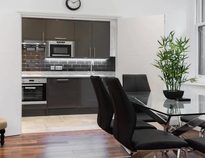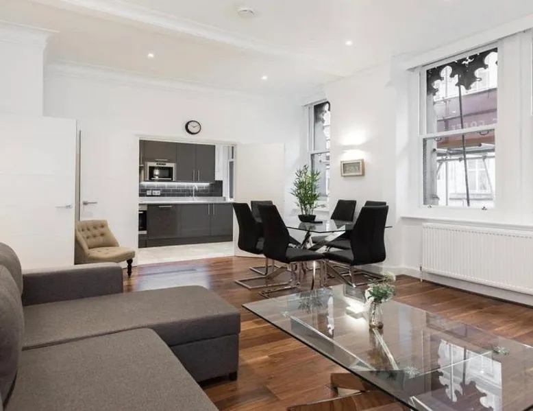 Spacious Accommodations: Fleet Street Apartment 1 in London offers a spacious apartment with two bedrooms and a living room. The property includes a fully equipped kitchen with a refrigerator, microwave, dishwasher, oven, stovetop, toaster, and TV. Modern Amenities: Guests enjoy free WiFi, a hairdryer, and a washing machine. The apartment is highly rated for its convenient location, with St Paul's Cathedral a 6-minute walk away, the British Museum 1.1 mi, and London City Airport 7.5 mi distant. Prime Location: Nearby attractions include the Savoy Theater (0.7 mi), Royal Opera House (14-minute walk), and Embankment Underground Station (1 mi). The reception staff speak English, ensuring a comfortable stay. This spacious apartment consists of 1 living room, 2 separate bedrooms and 1 bathroom with a hairdryer. The fully equipped kitchen features a stovetop, a refrigerator, a dishwasher and an oven. This apartment provides a TV. The unit offers 3 beds.