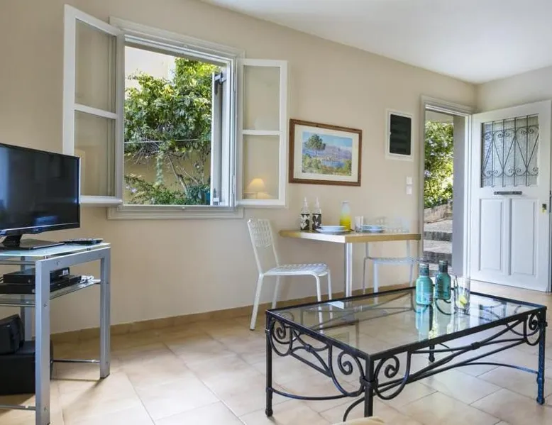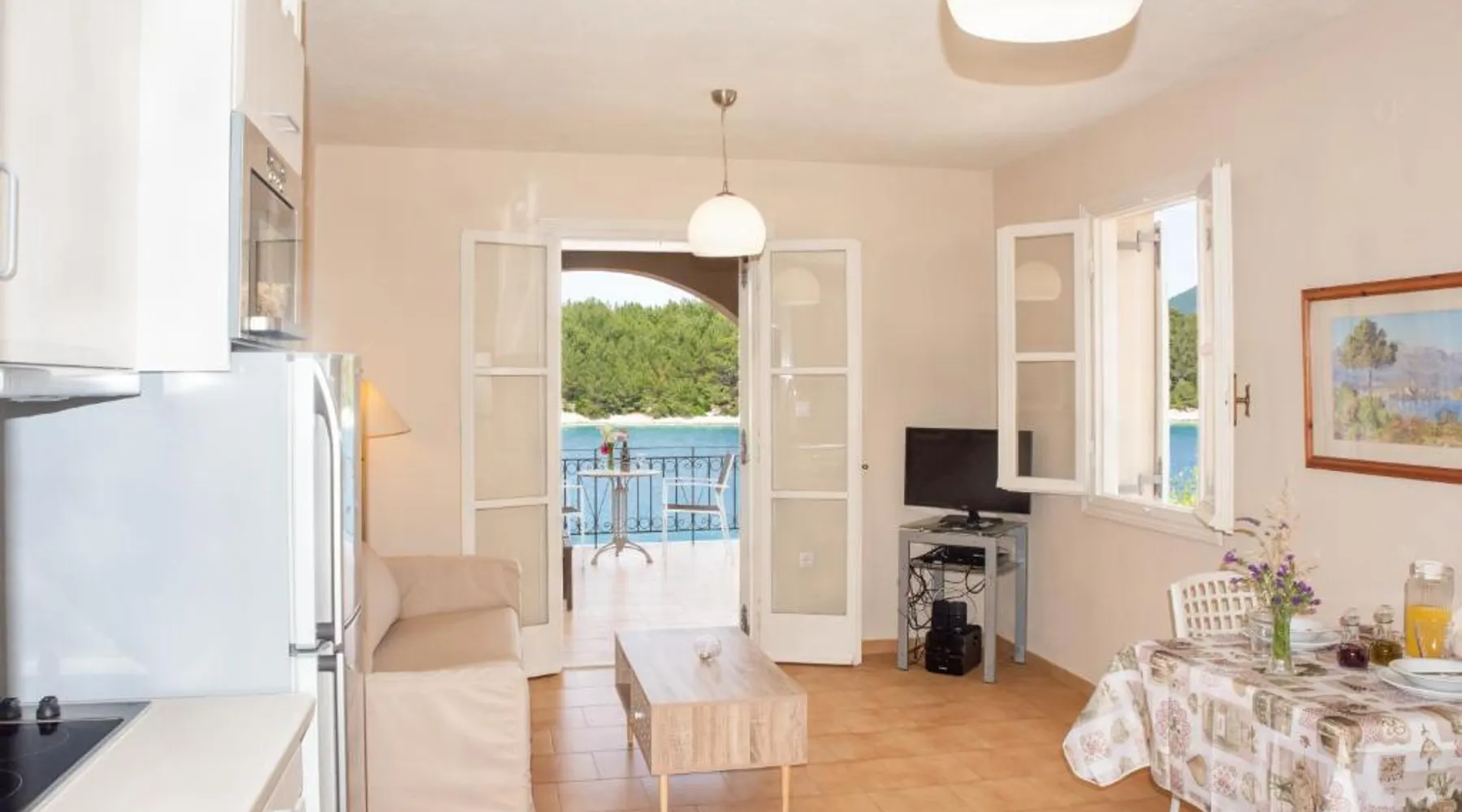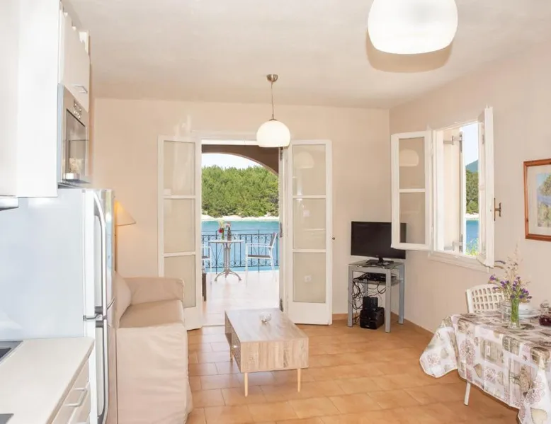 Beachfront Location: Windward Suite at Captains Guest house in Fiscardo offers direct beachfront access and stunning sea views. Guests can relax on the sun terrace and enjoy free WiFi throughout the apartment. Comfortable Amenities: The apartment features one bedroom, a bathroom, and a spacious living room. Air-conditioning, a kitchenette, and a balcony provide comfort and convenience. Additional amenities include a dining area, sofa bed, and free toiletries. Local Attractions: Zavalata Beach is a 2-minute walk away, while Port Fiskardo lies 1640 feet from the property. Nearby attractions include Cave Melissani (24 mi) and Kefalonia Airport, 35 mi distant. Boating is available in the surrounding area. Guest Satisfaction: Highly rated by guests for its terrace, location with a view, and attentive host. Express check-in and check-out, paid shuttle service, and car hire enhance the stay experience. Boasting a private entrance, this air-conditioned apartment comes with 1 living room, 1 separate bedroom and 1 bathroom with a shower and a hairdryer. In the kitchen, guests will find a refrigerator, kitchenware, an oven and a microwave. Featuring a terrace with sea views, this apartment also features a seating area and a flat-screen TV with satellite channels. The unit has 2 beds.