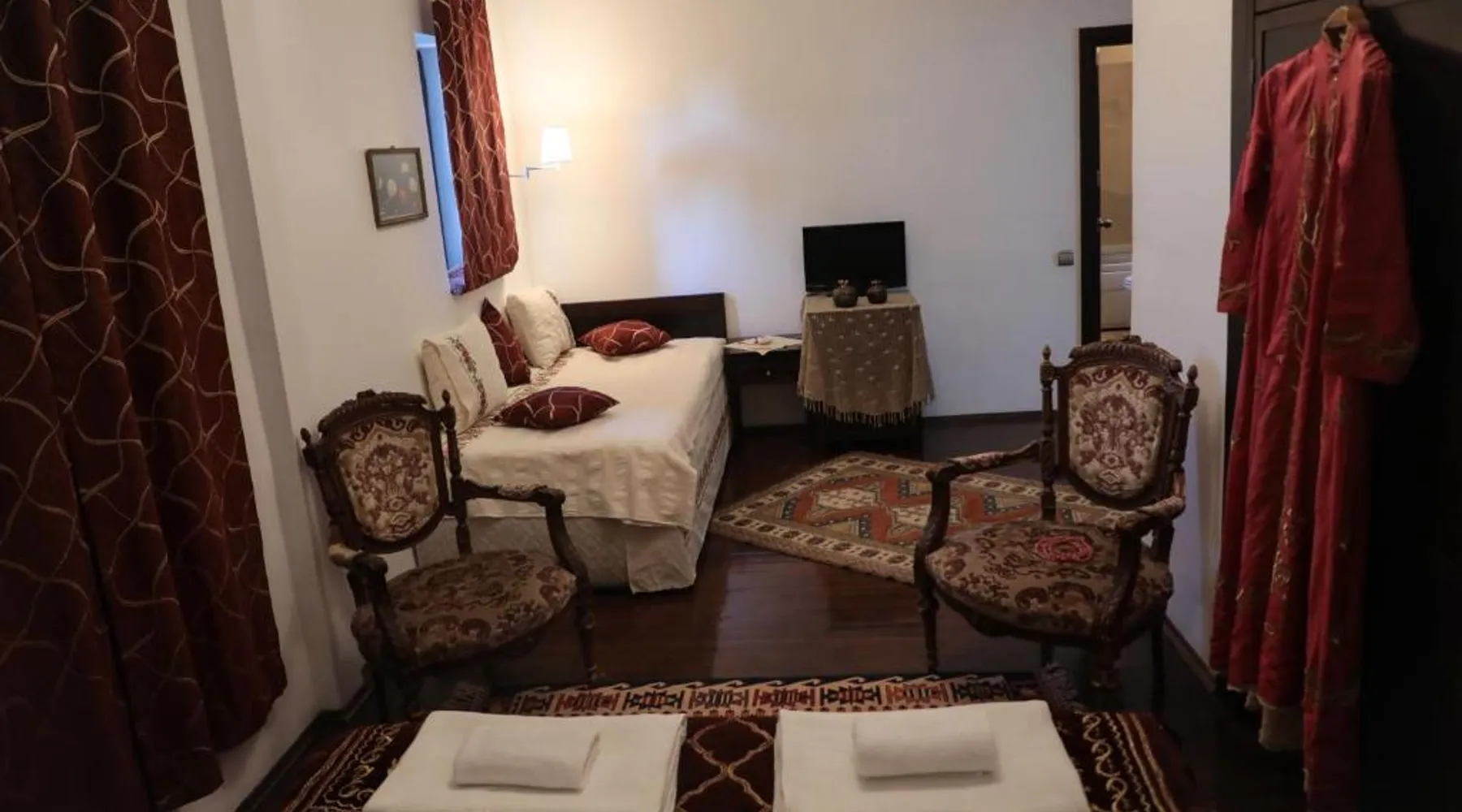 Comfortable Accommodations: Hadrianus Pansion in Antalya offers family rooms with air-conditioning, private bathrooms, and free WiFi. Each room includes a bidet, hairdryer, and free toiletries. Exceptional Facilities: Guests can enjoy a beautiful garden, outdoor dining area, and free on-site private parking. Additional amenities include a 24-hour front desk, housekeeping service, and full-day security. Delicious Breakfast: A fresh breakfast is served daily, featuring pastries, cheese, and fruits. The property also provides a mini-bar and work desk for added convenience. Prime Location: Located 5.6 mi from Antalya Airport, the hotel is a short walk from Mermerli Beach and close to attractions such as Hadrian's Gate and Antalya Clock Tower. Highly rated for its garden and breakfast. This room offers satellite TV and a private bathroom.