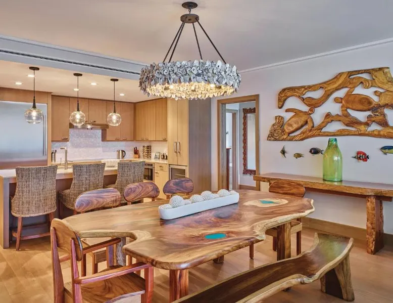 Elegant Accommodations: Timbers Kauai Ocean Club & Residences in Lihue offers luxurious rooms with sea views, balconies, and private pools. Each room features a kitchen, bathrobes, and modern amenities. Exceptional Facilities: Guests enjoy an infinity swimming pool, spa facilities, fitness center, sun terrace, and free WiFi. Additional amenities include a hot tub, outdoor fireplace, and barbecue facilities. Dining Experience: The hotel serves continental, American, and Asian breakfasts with fresh pastries, pancakes, and fruits. Dining options include lunch and dinner at the restaurant, bar, and outdoor seating areas. Prime Location: Located 1.9 mi from Lihue Airport, the hotel is a short walk from Kalapaki Beach and near attractions such as The Ocean Course At Hokuala and Nawiliwili Harbor. This spacious apartment consists of 1 living room, 3 separate bedrooms and 3 bathrooms with a shower and bathrobes. The apartment's kitchen is available for cooking and storing food. Featuring a balcony with sea views, this apartment also provides a tea and coffee maker and a flat-screen TV. The unit offers 4 beds.