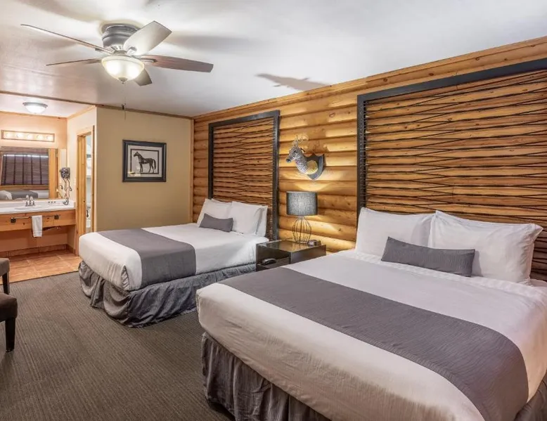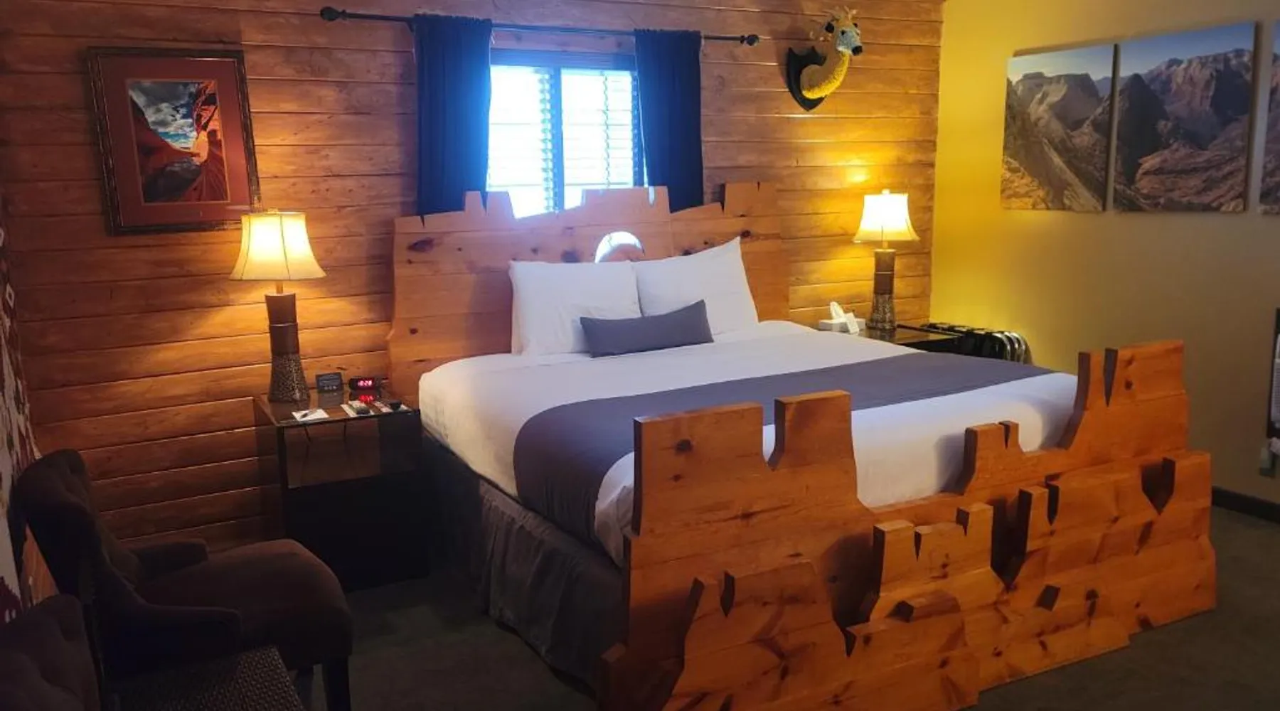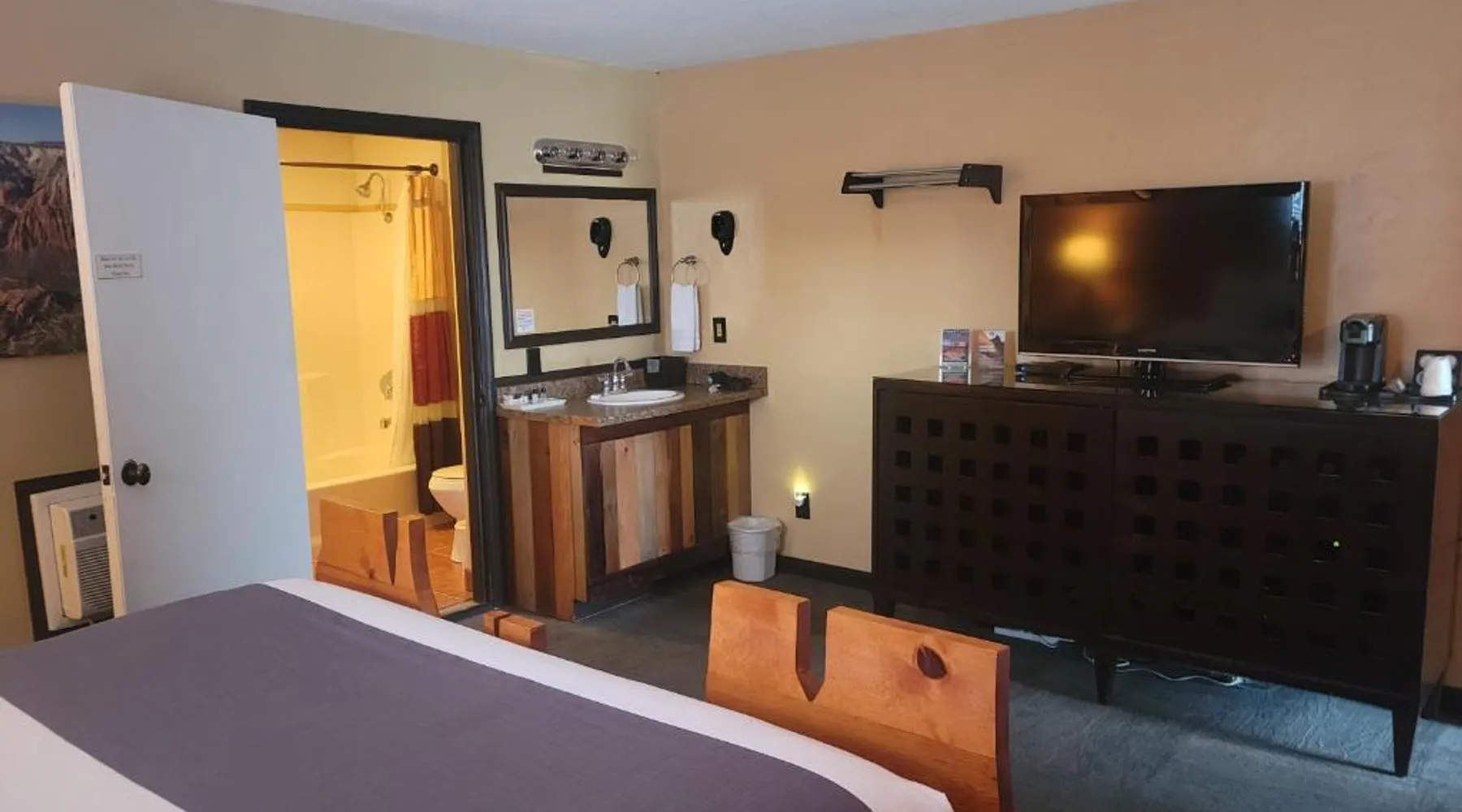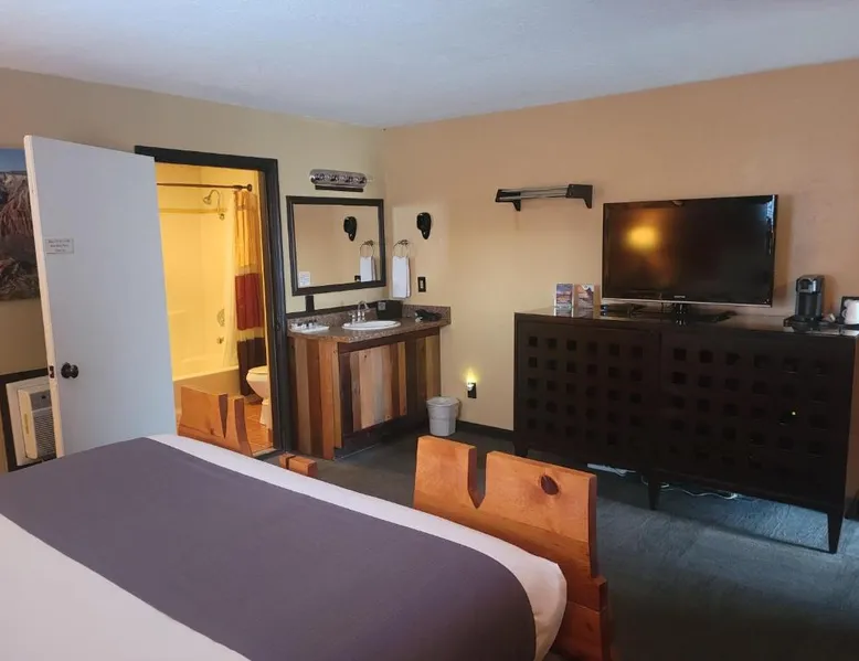 Featuring a seasonal outdoor swimming pool, this Kanab, Utah lodge is 35 miles from Zion National Park. Offering a mountain view, each room provides bathrobes, free Wi-Fi and free toiletries in the private bathroom at Canyons Lodge. Log cabin inspired, all rooms are styled with crisp white linens. A free bike rental is offered at Kanab Canyons Lodge. North Rim of Grand Canyon is just 90 miles away. Grand Staircase-Escalante National Monument is 5 minutes’ drive away from Canyons Lodge. Offering free toiletries and bathrobes, this quadruple room includes a private bathroom with a walk-in shower and a hairdryer. The air-conditioned quadruple room offers a flat-screen TV with streaming services, a private entrance, a tea and coffee maker, a seating area as well as garden views. The unit offers 2 beds.
