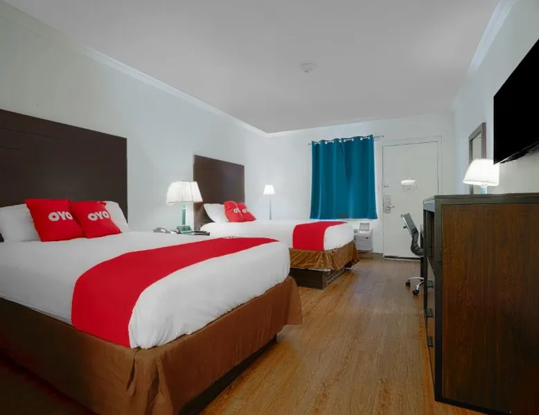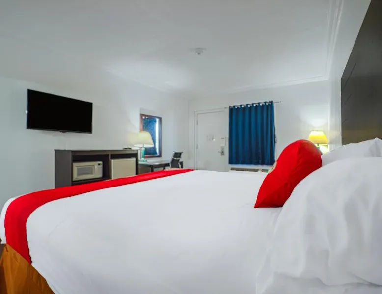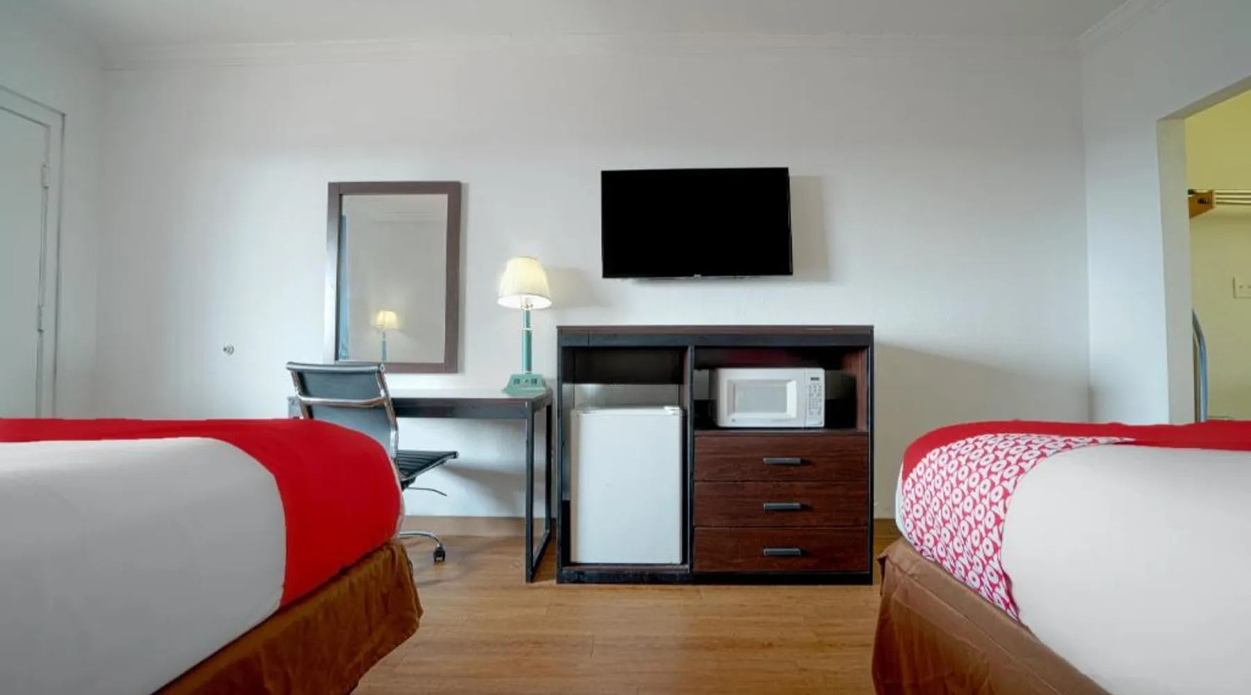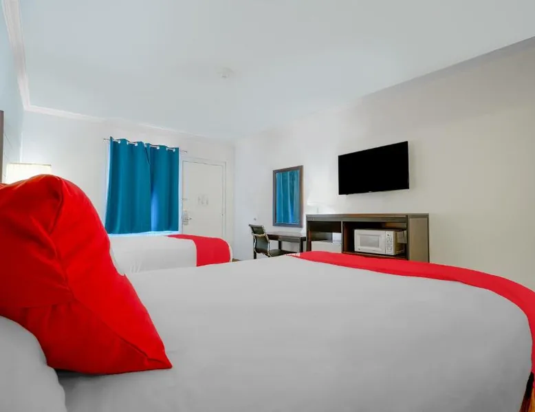 The Knights Inn Kingsville is located close to Texas A&M University-Kingsville. This hotel is minutes from the King Ranch Museum, the Naval Air Station Kingsville and Baffin Bay. The Corpus Christi International Airport is about 30 minutes away. The L.E. Ramey Golf Course and Loyola Beach are also nearby. Visitors will also enjoy many beaches and fishing destinations just minutes from the hotel. A variety of restaurants and cocktail lounges are located in the surrounding area. Be sure to visit the on-site Rodeway Café, which serves breakfast, lunch and dinner. The Spur cocktail lounge is also located on the property. Guests will enjoy many amenities, including free coffee and free local calls. Guests will also enjoy the fitness center. Business travelers will appreciate conveniences like free wireless high-speed Internet access in all rooms and access to copy and fax services. Meeting rooms are available to accommodate most events and business functions. All guest rooms have coffee makers, hair dryers, irons and ironing boards. In addition, some rooms come equipped with refrigerators, microwaves and digital cable boxes with more than 300 channels. Nonsmoking rooms are available. Guest laundry facilities are located on the property. Pets are welcome with a small stay fee. This air-conditioned quadruple room is consisted of of a flat-screen TV with cable channels and a private bathroom. The unit has 2 beds.