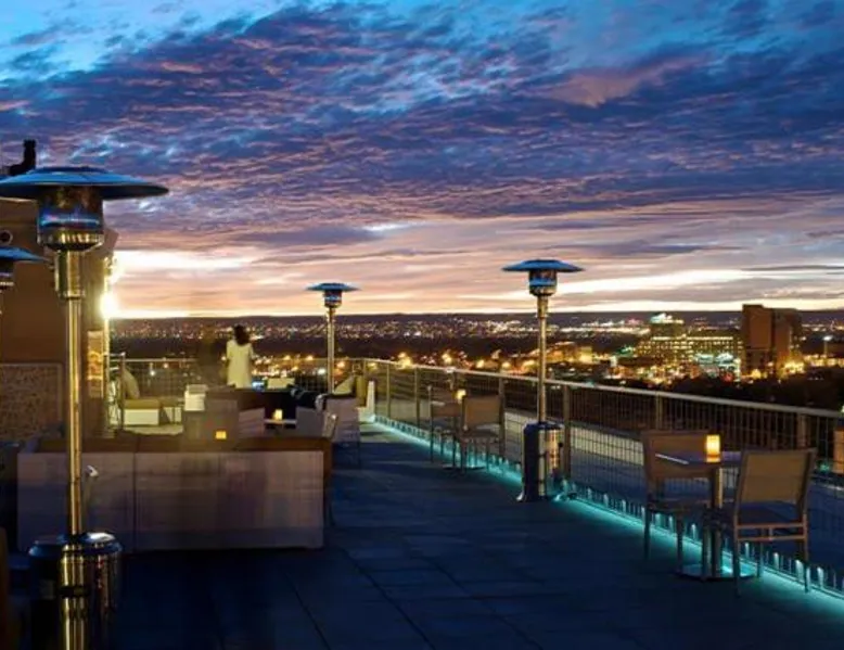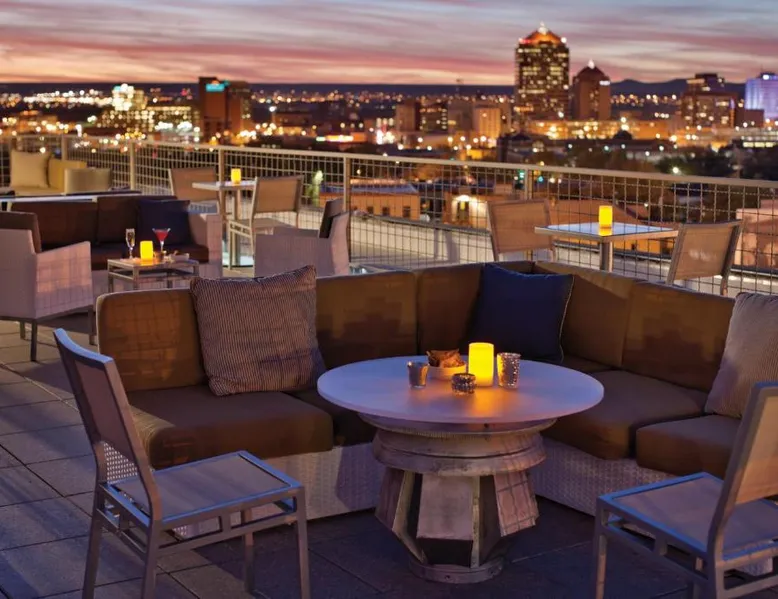 This Albuquerque, New Mexico hotel offers free shuttle services to Albuquerque International Sunport and within a 3 mile radius. Built in 1926, this boutique hotel features rooms with free Wi-Fi. Each room at Hotel Parq Central Albuquerque is furnished with a 37-inch flat-screen TV. They also include an iPod docking station and a refrigerator. The Apothecary Lounge is a rooftop bar and patio. Central Albuquerque Hotel Parq also features rooftop yoga and a business center. Edo Neighborhood is within walking distance from the hotel and boasts casual and fine dining options. The University of New Mexico is 2.5 miles from Hotel Parq. A flat-screen cable TV and a work desk are available in this room. A small fridge is also included.