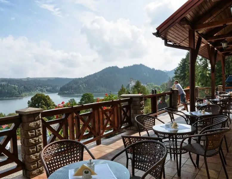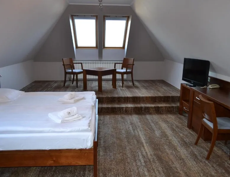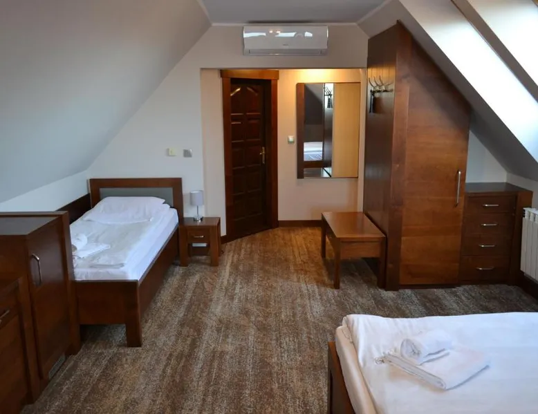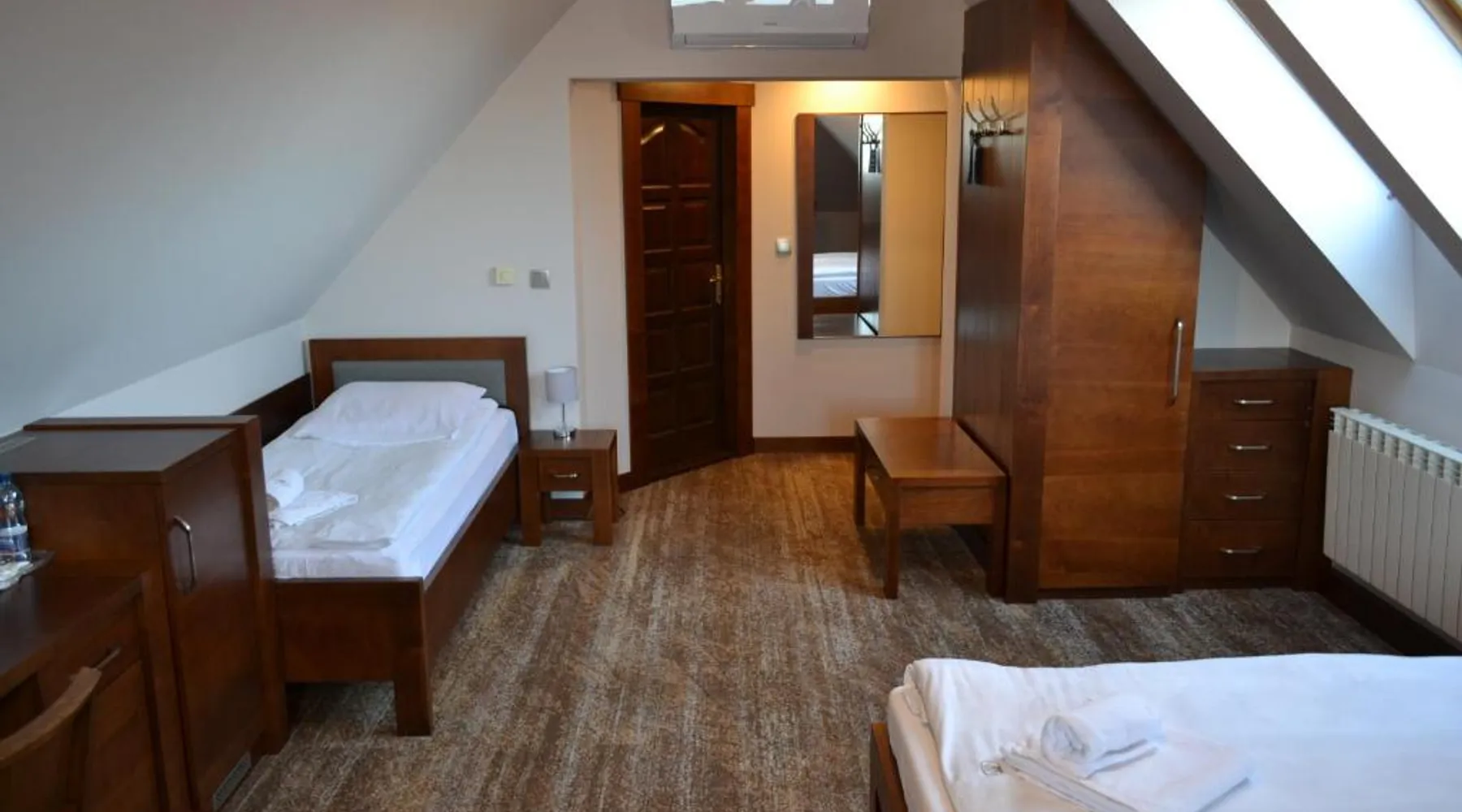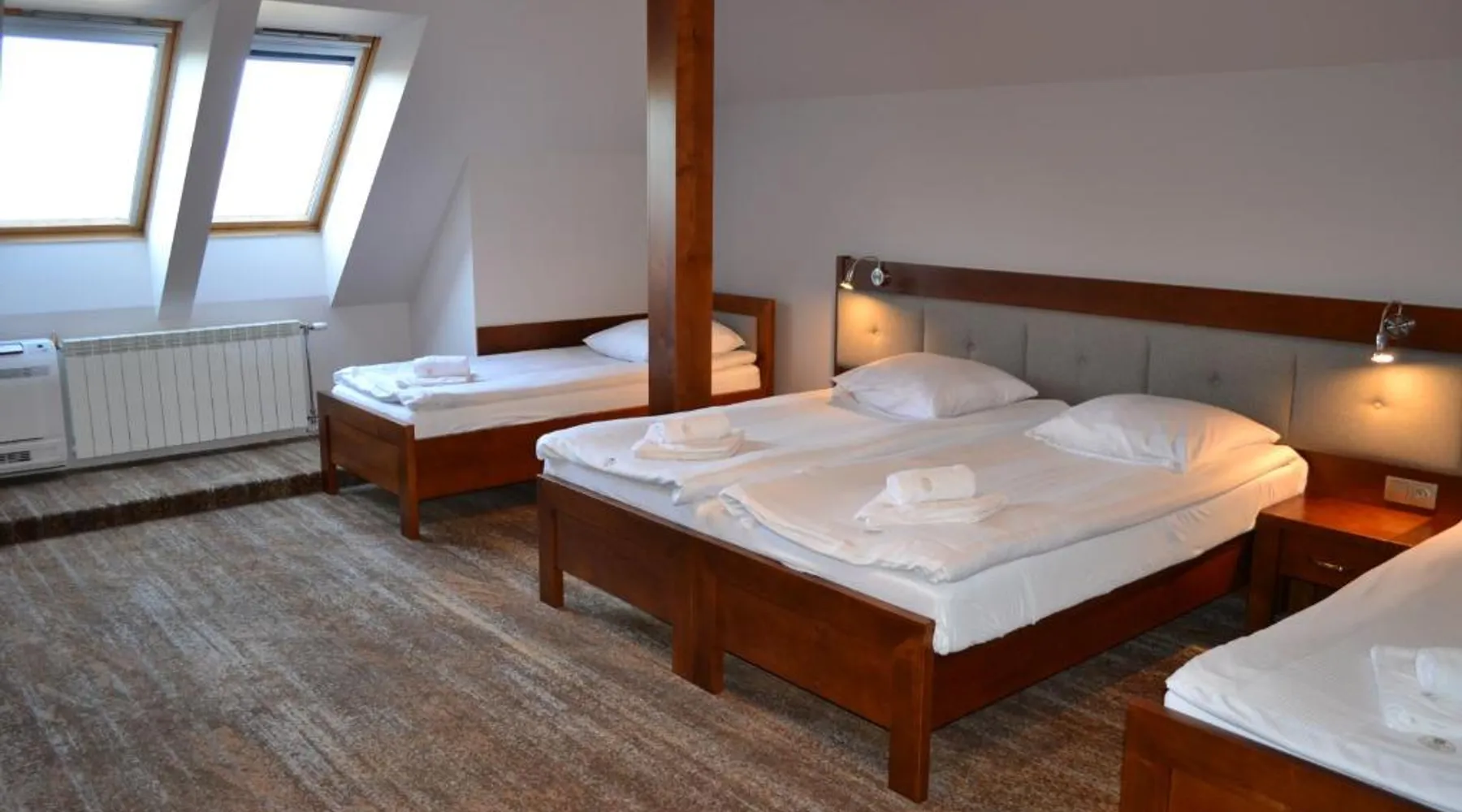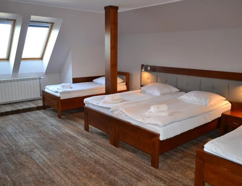Comfortable Accommodations: Hotel LOKIS in Niedzica Zamek offers family rooms with private bathrooms, air-conditioning, and free WiFi. Each room includes a work desk, TV, and modern amenities. Dining and Leisure: Guests can enjoy a traditional restaurant serving local cuisine, a bar, and a sun terrace. Additional facilities include an outdoor fireplace, children’s playground, and outdoor seating areas. Prime Location: Located less than 0.6 mi from Niedzica Castle, the hotel is near Bania Thermal Baths and Treetop Walk. Activities such as skiing, hiking, and cycling are available. Boating is also popular in the surrounding area. Guest Favorites: Guests appreciate the scenic location with lakes and mountains, the delicious breakfast provided by the property, and the attentive staff. Offering free toiletries, this quadruple room includes a private bathroom with a shower and a hairdryer. The air-conditioned quadruple room offers a flat-screen TV with cable channels, a wardrobe, a safe deposit box, an electric kettle as well as garden views. The unit offers 3 beds.