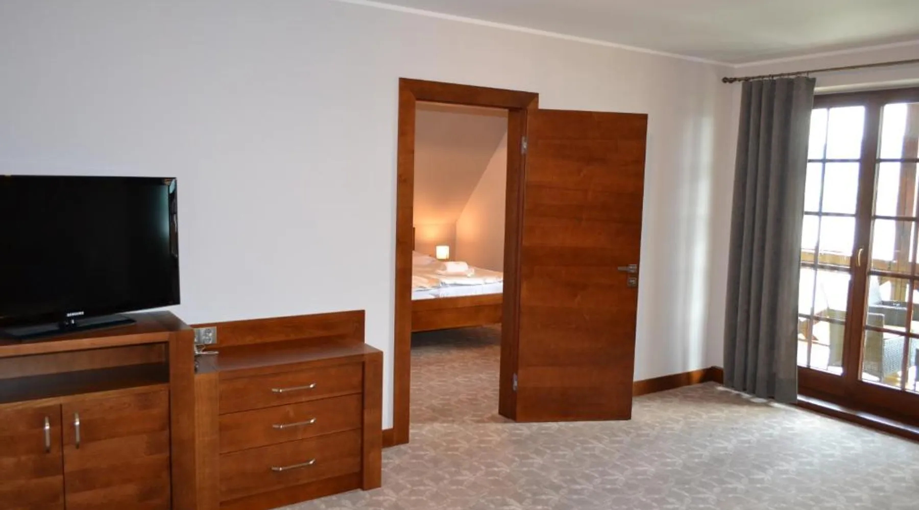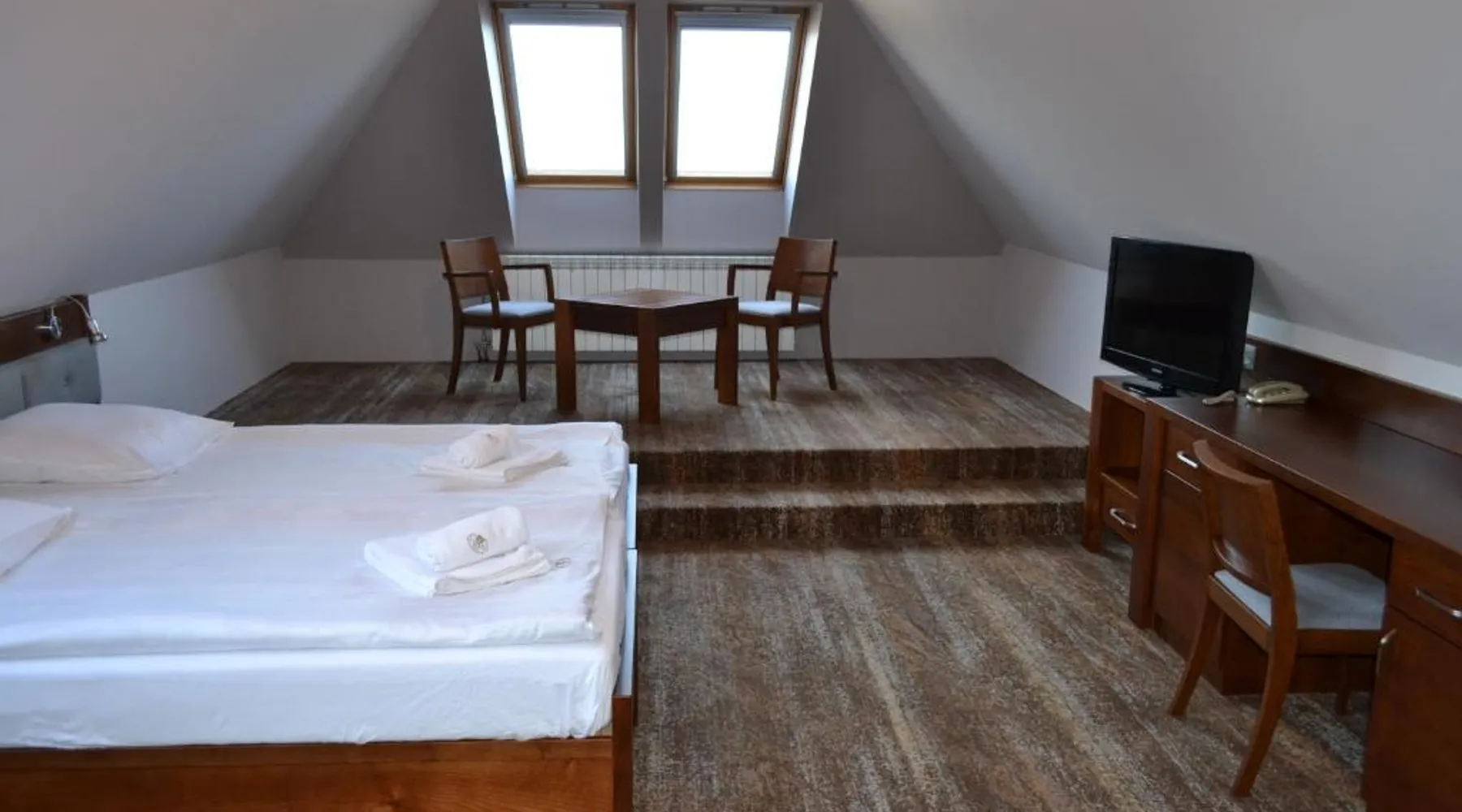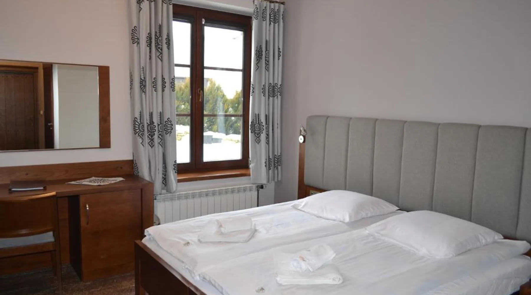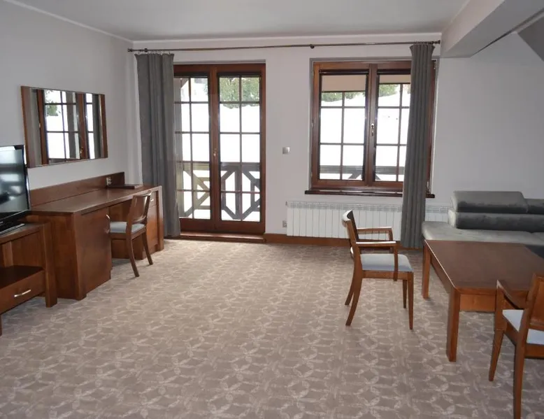 Comfortable Accommodations: Hotel LOKIS in Niedzica Zamek offers family rooms with private bathrooms, air-conditioning, and free WiFi. Each room includes a work desk, TV, and modern amenities. Dining and Leisure: Guests can enjoy a traditional restaurant serving local cuisine, a bar, and a sun terrace. Additional facilities include an outdoor fireplace, children’s playground, and outdoor seating areas. Prime Location: Located less than 0.6 mi from Niedzica Castle, the hotel is near Bania Thermal Baths and Treetop Walk. Activities such as skiing, hiking, and cycling are available. Boating is also popular in the surrounding area. Guest Favorites: Guests appreciate the scenic location with lakes and mountains, the delicious breakfast provided by the property, and the attentive staff. Offering free toiletries, this quadruple room includes a private bathroom with a shower and a hairdryer. The air-conditioned quadruple room offers a flat-screen TV with cable channels, a wardrobe, a safe deposit box, an electric kettle as well as garden views. The unit offers 3 beds.