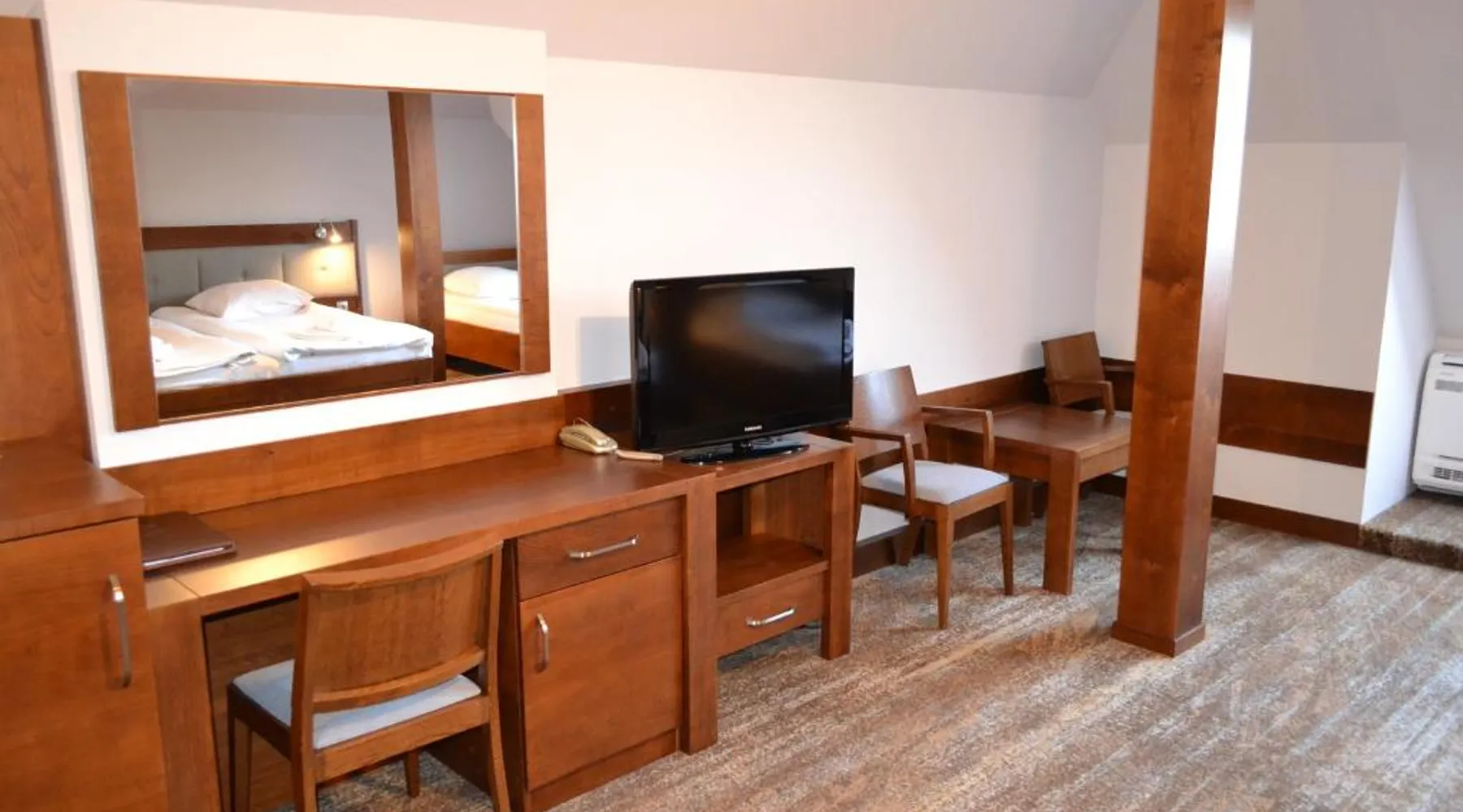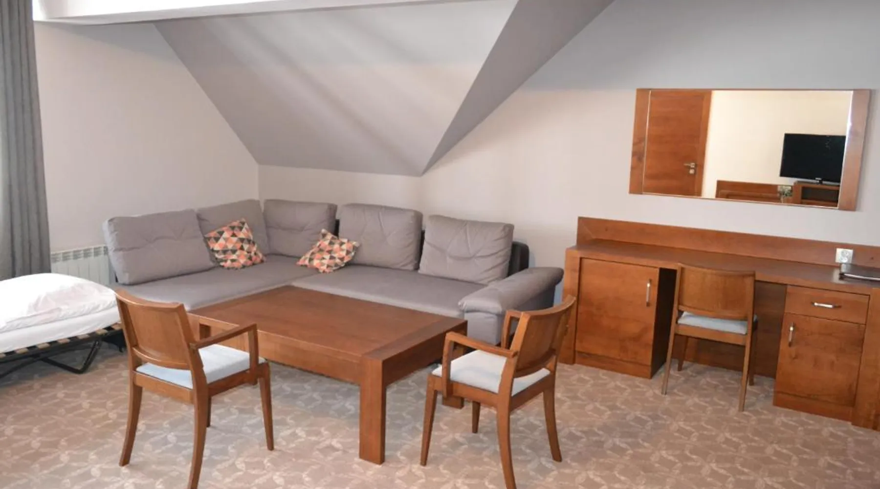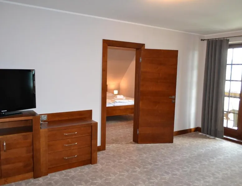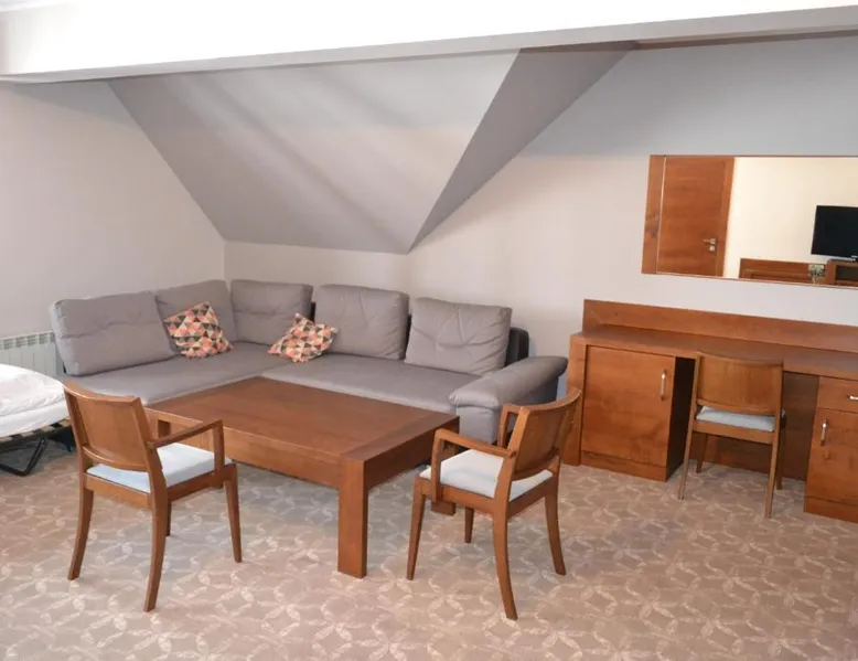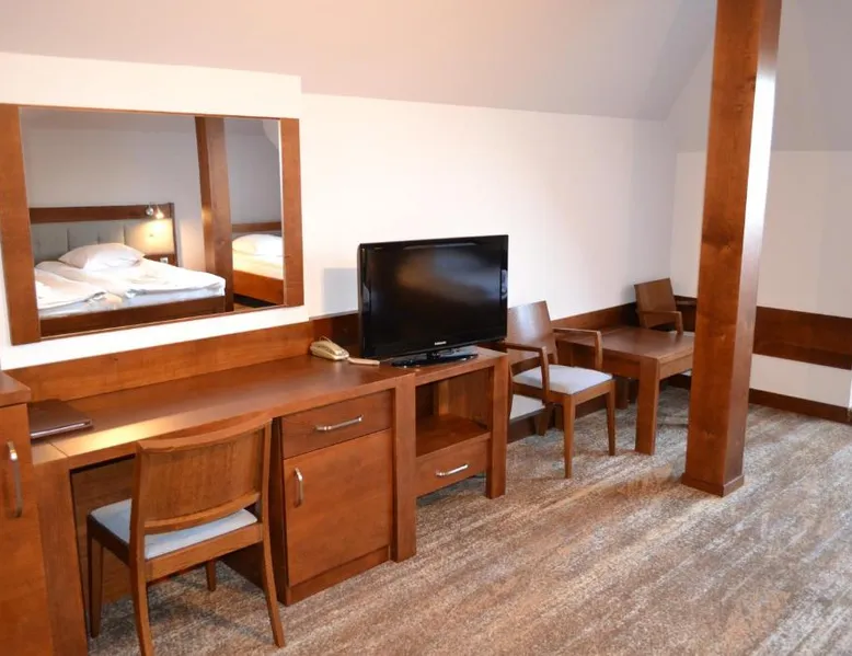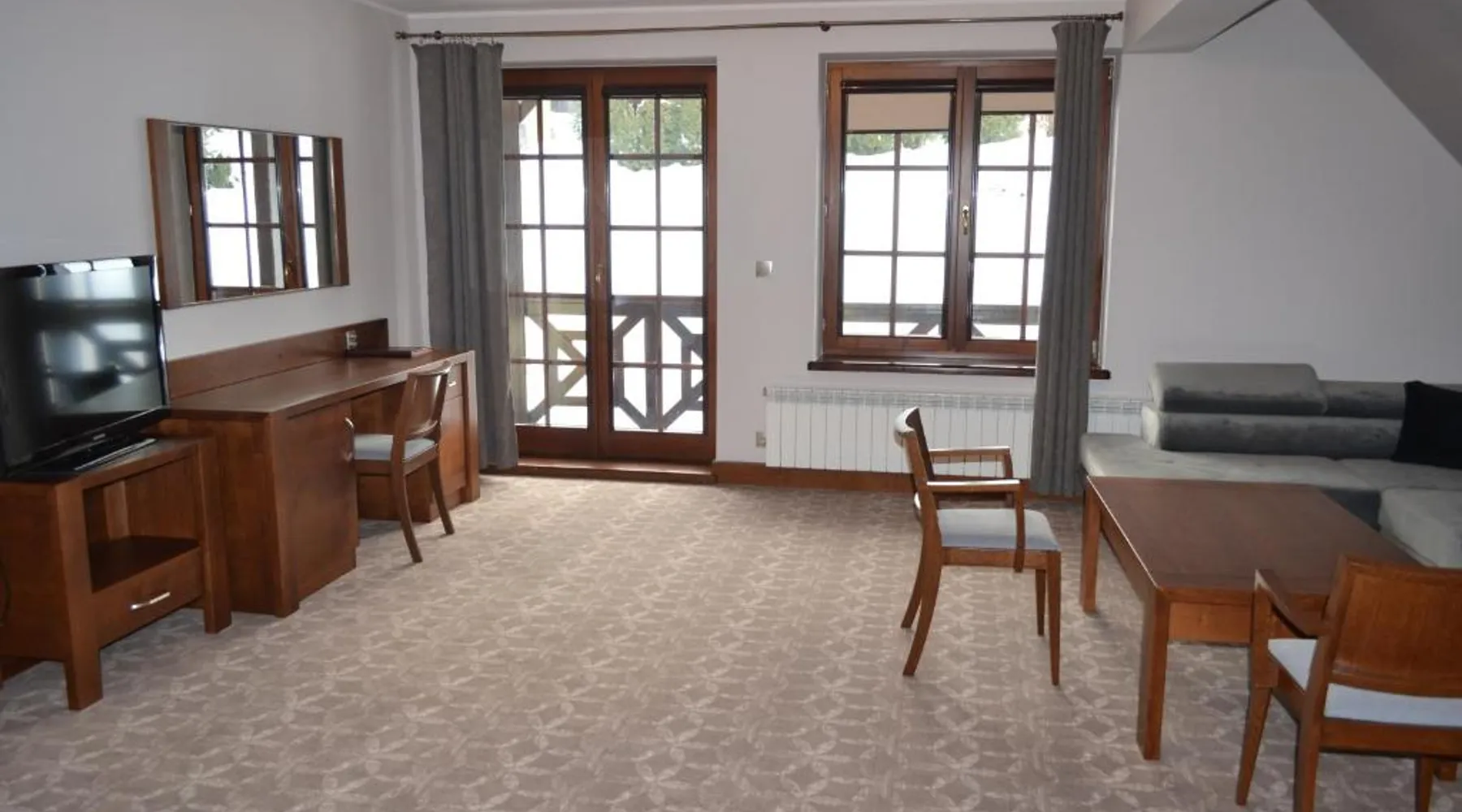 Comfortable Accommodations: Hotel LOKIS in Niedzica Zamek offers family rooms with private bathrooms, air-conditioning, and free WiFi. Each room includes a work desk, TV, and modern amenities. Dining and Leisure: Guests can enjoy a traditional restaurant serving local cuisine, a bar, and a sun terrace. Additional facilities include an outdoor fireplace, children’s playground, and outdoor seating areas. Prime Location: Located less than 0.6 mi from Niedzica Castle, the hotel is near Bania Thermal Baths and Treetop Walk. Activities such as skiing, hiking, and cycling are available. Boating is also popular in the surrounding area. Guest Favorites: Guests appreciate the scenic location with lakes and mountains, the delicious breakfast provided by the property, and the attentive staff. Offering free toiletries, this quadruple room includes a private bathroom with a shower and a hairdryer. The air-conditioned quadruple room offers a flat-screen TV with cable channels, a wardrobe, a safe deposit box, an electric kettle as well as garden views. The unit offers 3 beds.