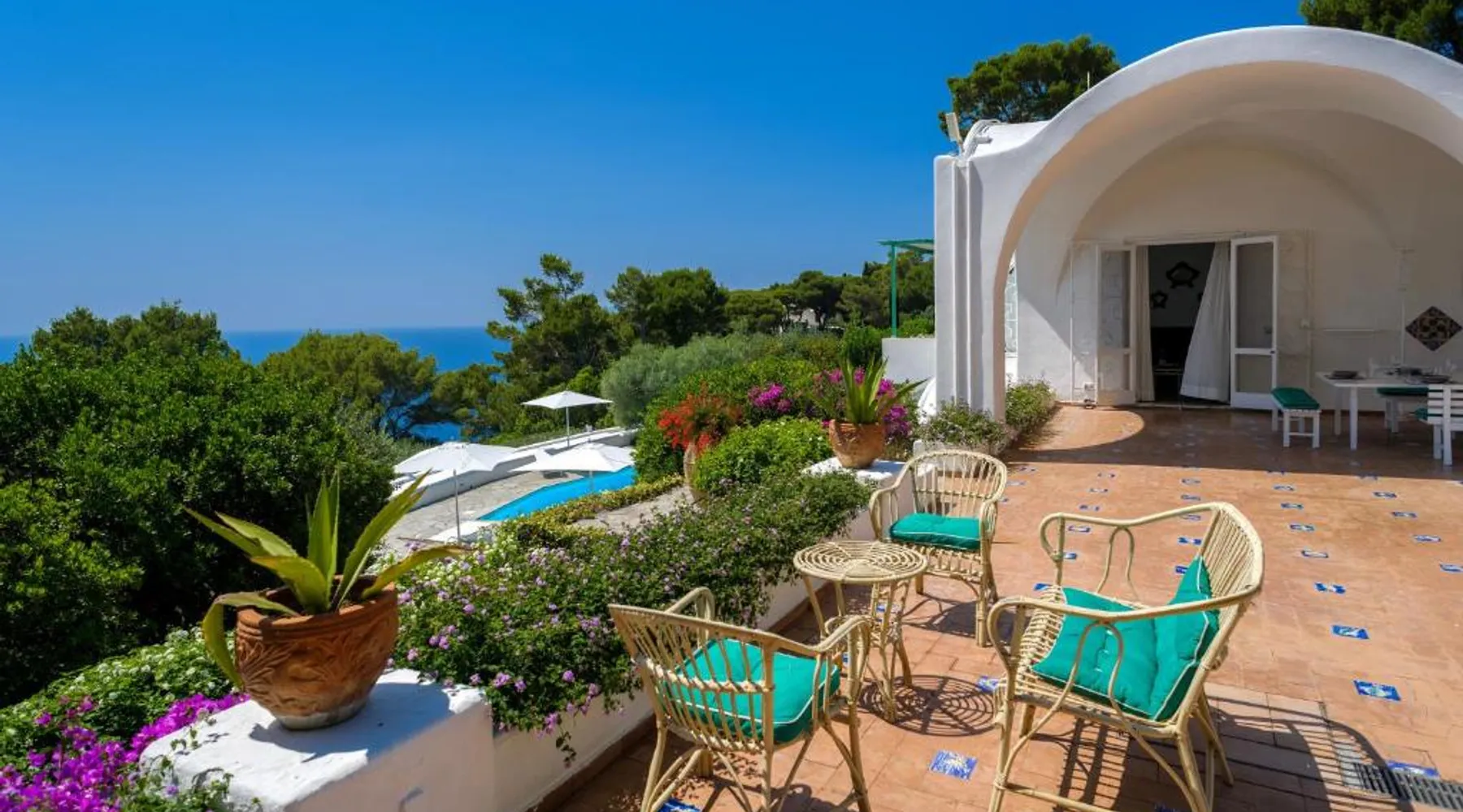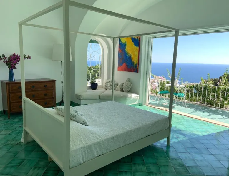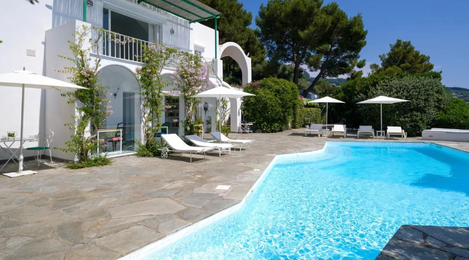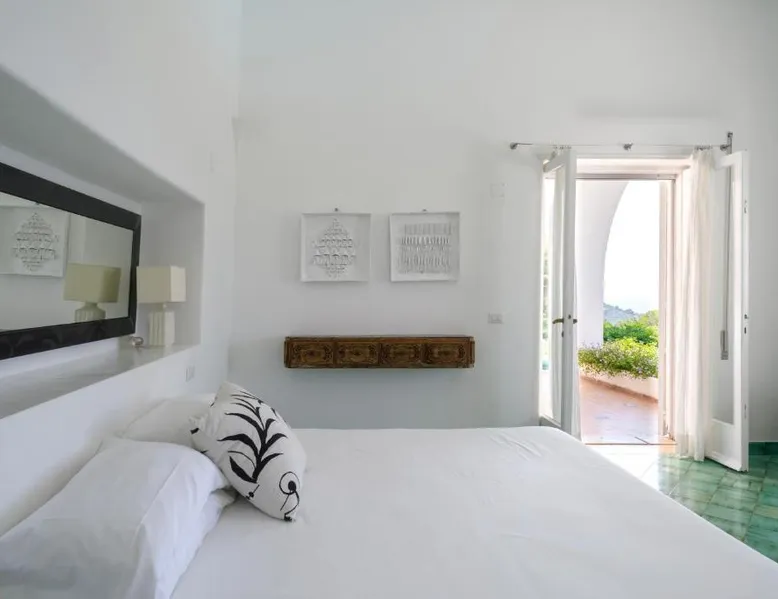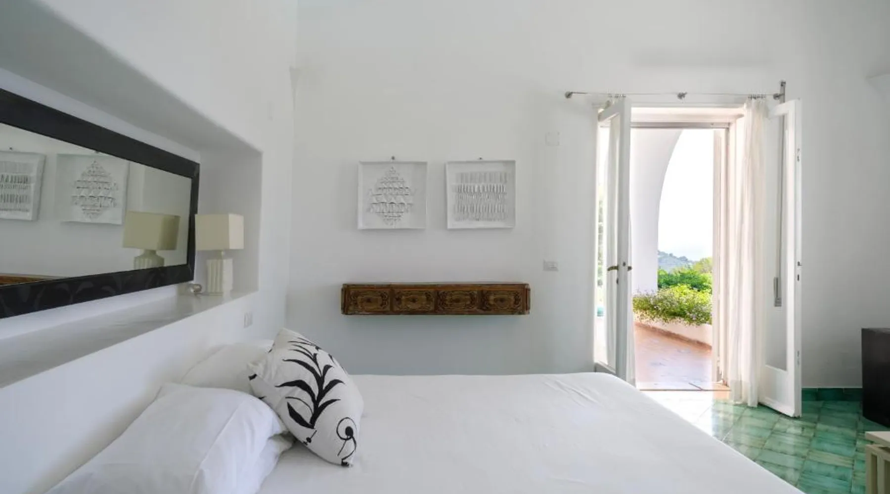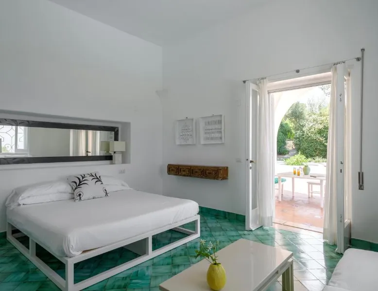 Elegant Accommodations: Il Carrubo Capri in Anacapri offers a country house with a swimming pool, sun terrace, and lush garden. Guests enjoy free WiFi, a bar, and outdoor seating areas. Comfortable Amenities: The property features air-conditioning, private bathrooms, and garden views. Additional amenities include a mini-bar, work desk, and soundproofed rooms. Breakfast and Location: A daily breakfast with juice, fresh pastries, cheese, and fruits is highly rated by guests. The location with stunning views and proximity to Gradola Beach enhance the stay. This double room's standout feature is the pool with a view. The double room offers air conditioning, a private entrance, a terrace with garden views as well as a private bathroom boasting a walk-in shower. The unit has 1 bed.
