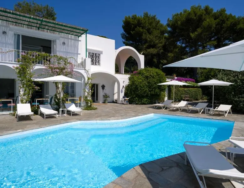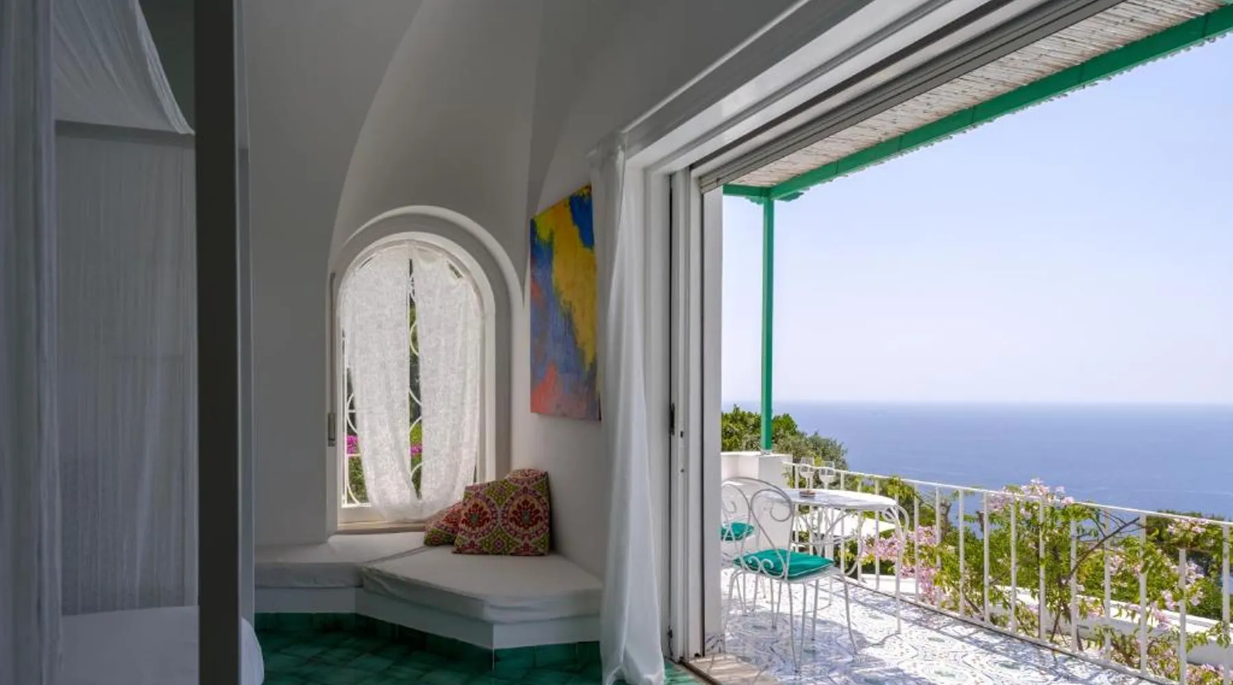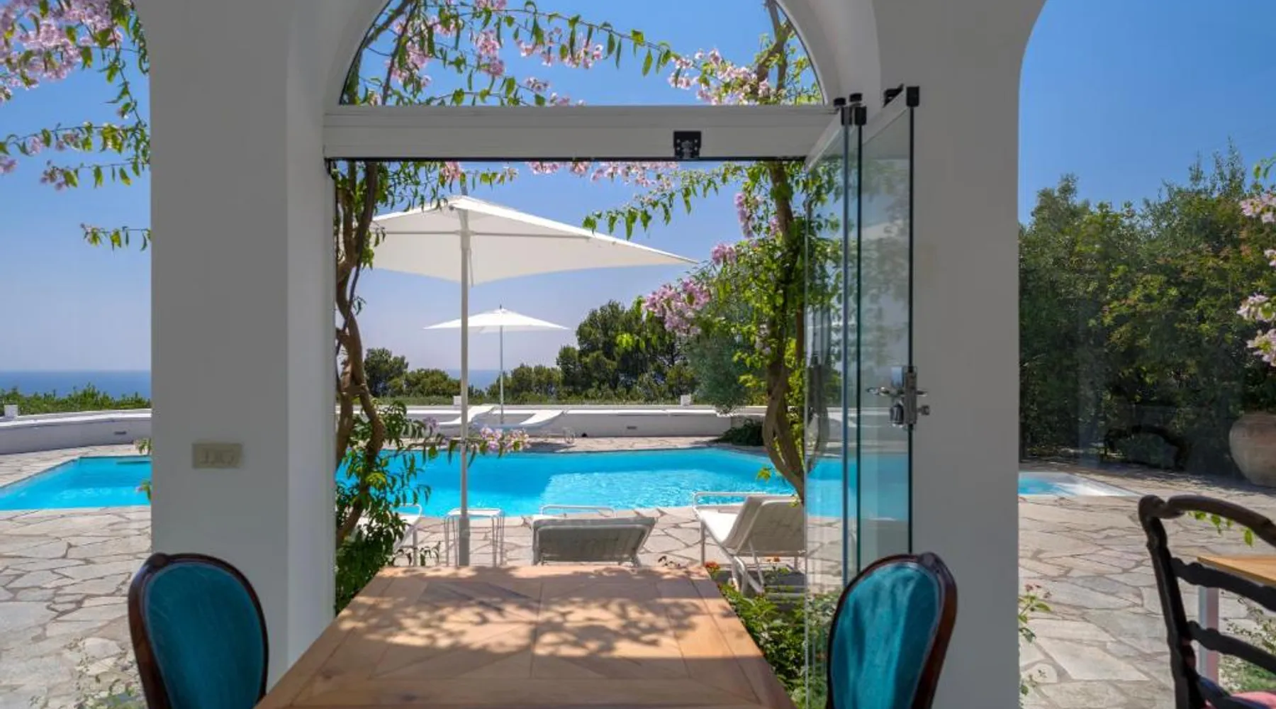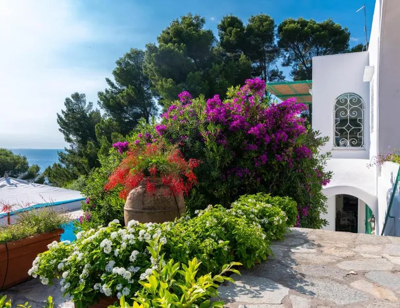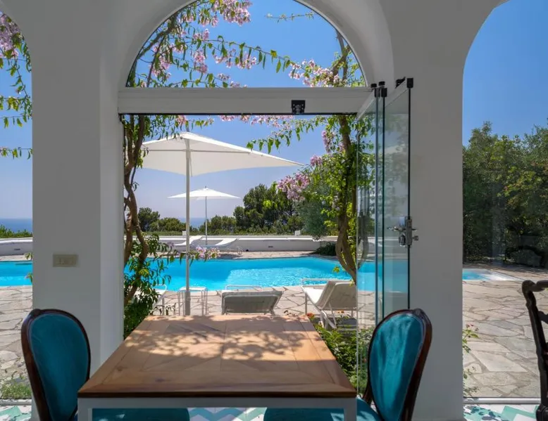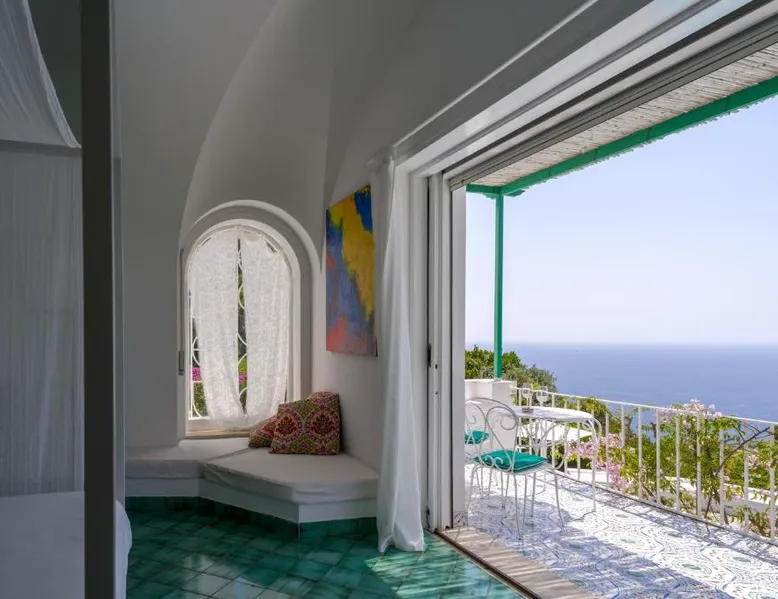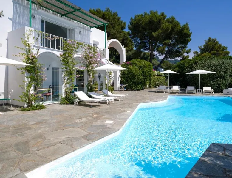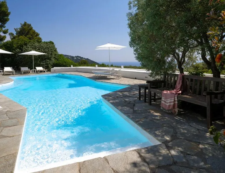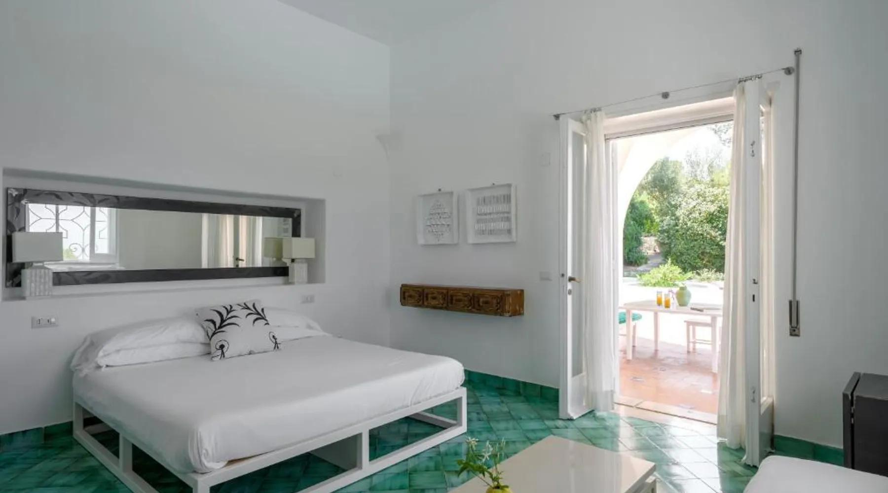 Elegant Accommodations: Il Carrubo Capri in Anacapri offers a country house with a swimming pool, sun terrace, and lush garden. Guests enjoy free WiFi, a bar, and outdoor seating areas. Comfortable Amenities: The property features air-conditioning, private bathrooms, and garden views. Additional amenities include a mini-bar, work desk, and soundproofed rooms. Breakfast and Location: A daily breakfast with juice, fresh pastries, cheese, and fruits is highly rated by guests. The location with stunning views and proximity to Gradola Beach enhance the stay. This double room's standout feature is the pool with a view. The double room offers air conditioning, a private entrance, a terrace with garden views as well as a private bathroom boasting a walk-in shower. The unit has 1 bed.