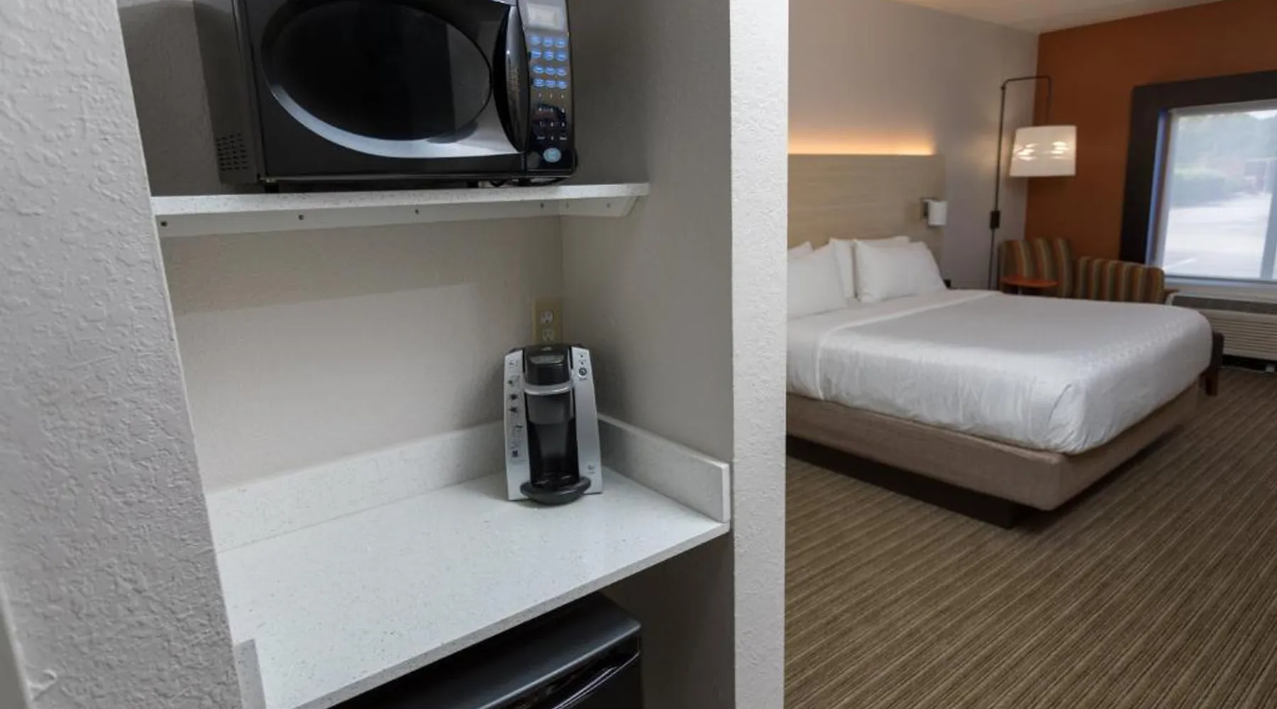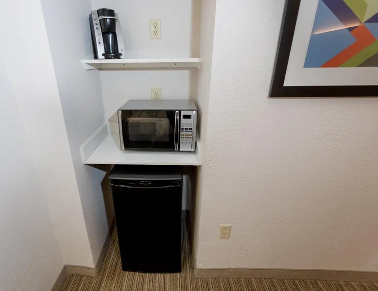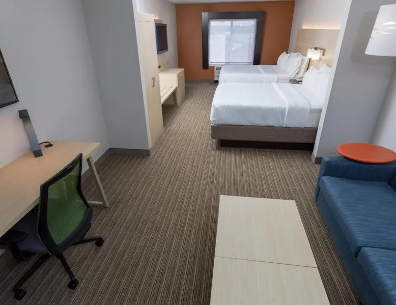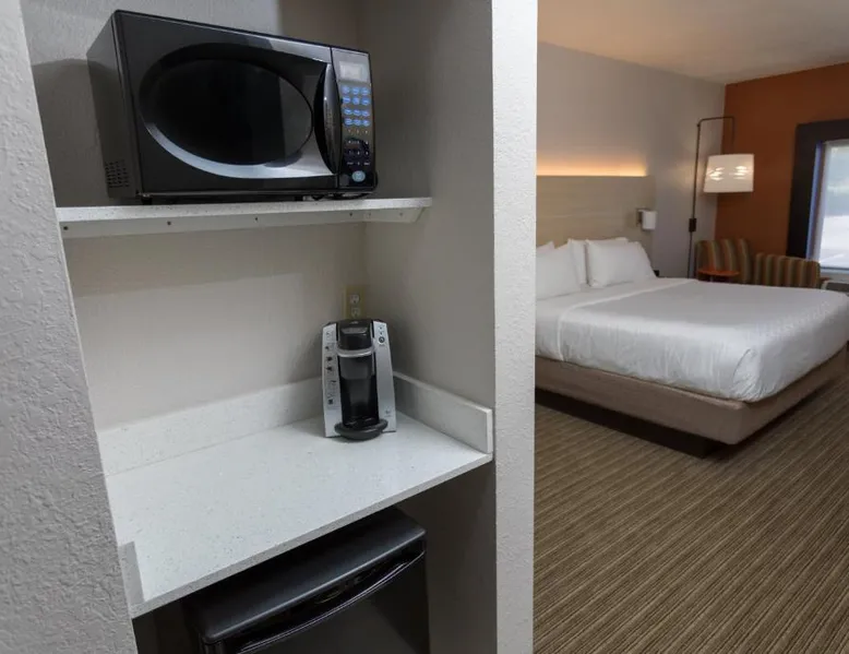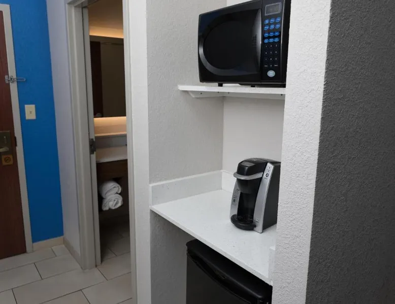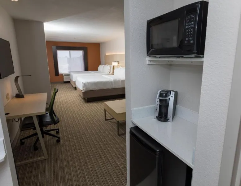 Comfortable Accommodations: Holiday Inn Express Hotel & Suites Athens by IHG in Athens offers rooms with air-conditioning, private bathrooms, and free WiFi. Each room includes a work desk, TV, and complimentary toiletries. Leisure Facilities: Guests can enjoy an indoor swimming pool, fitness center, and a beautiful garden. Additional amenities include a hot tub, lounge, and outdoor seating area. Dining Options: A buffet breakfast is served daily, featuring warm dishes, fresh pastries, pancakes, fruits, and juice. The on-site minimarket provides convenience for snacks and refreshments. Convenient Location: Located 19 mi from Huntsville International Airport, the hotel is near attractions such as Robert Beaty Historic District (2.4 mi) and Big Spring Park (2.9 mi). Free on-site parking is available. Guest Satisfaction: Highly rated for room cleanliness, attentive staff, and convenient location. This suite features a microwave, small refrigerator, and flat-screen cable television. Coffee-making facilities are also included.