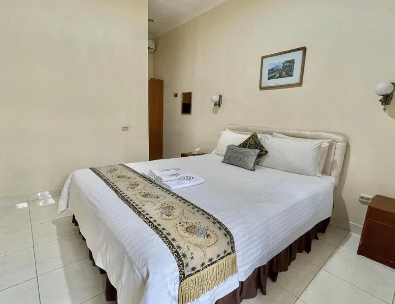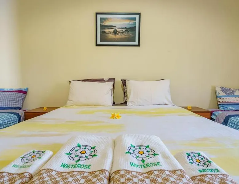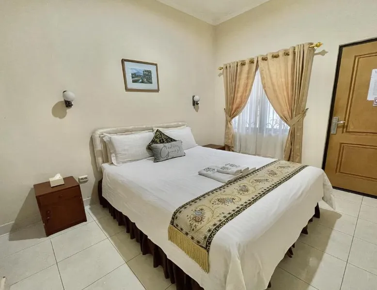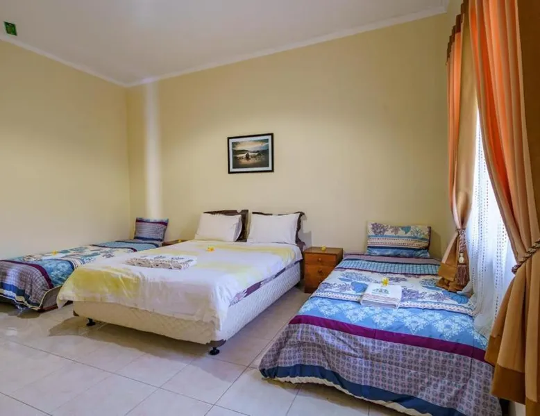 Comfortable Accommodations: Whiterose Guest house in Senggigi offers family rooms with air-conditioning, private bathrooms, and garden views. Each room includes a work desk, TV, and free toiletries. Exceptional Facilities: Guests enjoy a garden, terrace, and free WiFi. Additional amenities include a balcony, outdoor seating area, and free on-site private parking. Delicious Breakfast: A variety of breakfast options are available, including vegetarian, vegan, halal, and gluten-free. The property also provides yoga classes. Prime Location: Located 24 mi from Lombok International Airport, the guest house is a short walk from Montong Beach and near attractions such as Malimbu Hill. Water sports, kayaking, and scuba diving are available in the surroundings. The double room's kitchen, which has a tea and coffee maker, is available for cooking and storing food. This air-conditioned double room features a desk, a balcony, garden views and a private bathroom. The unit offers 1 bed.