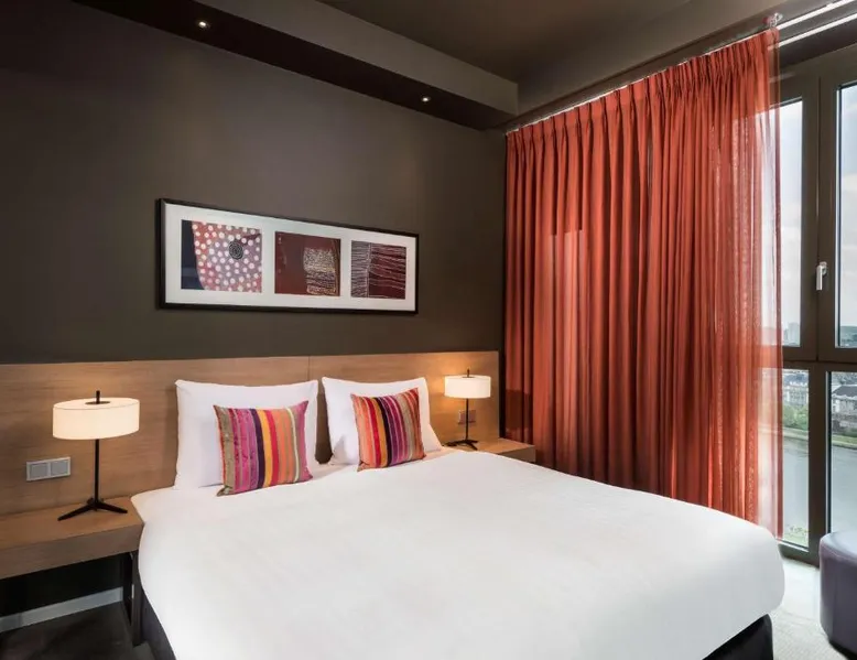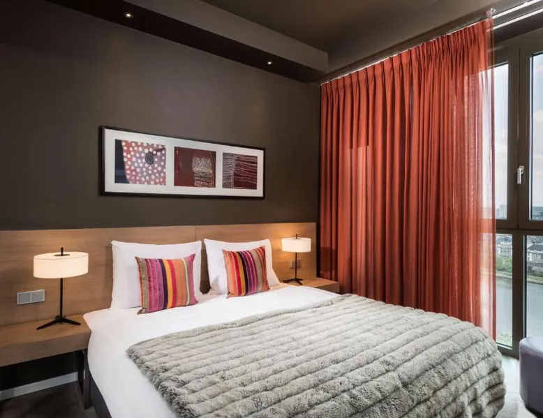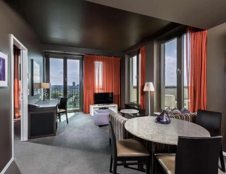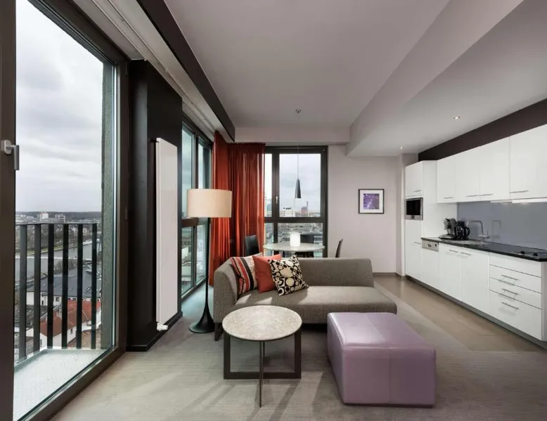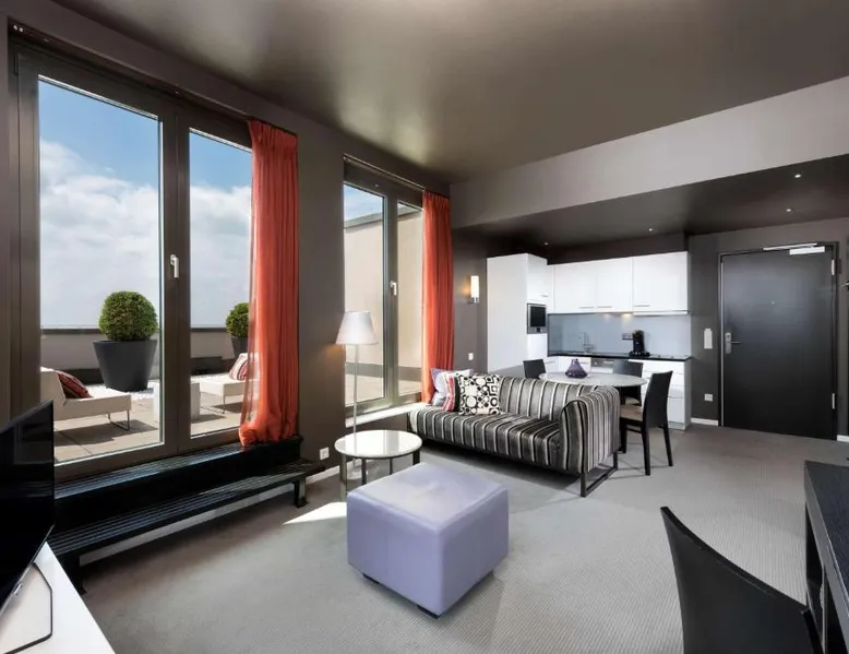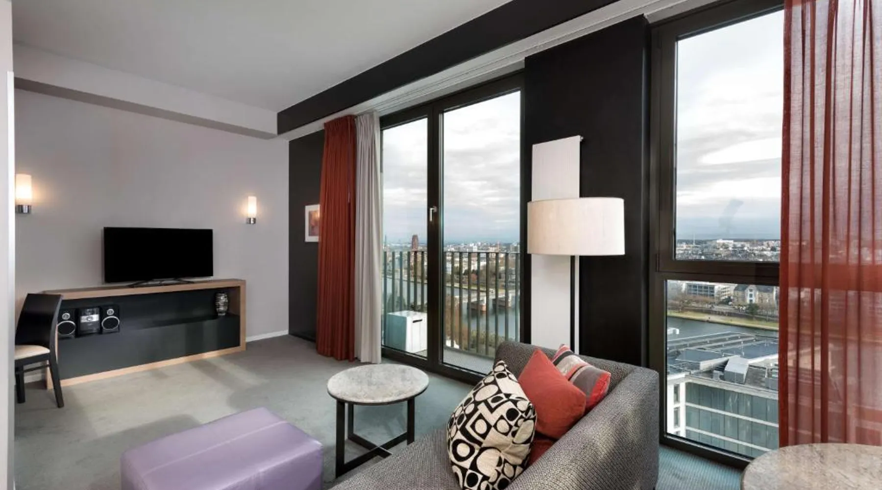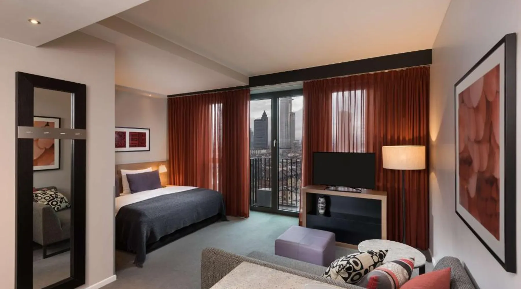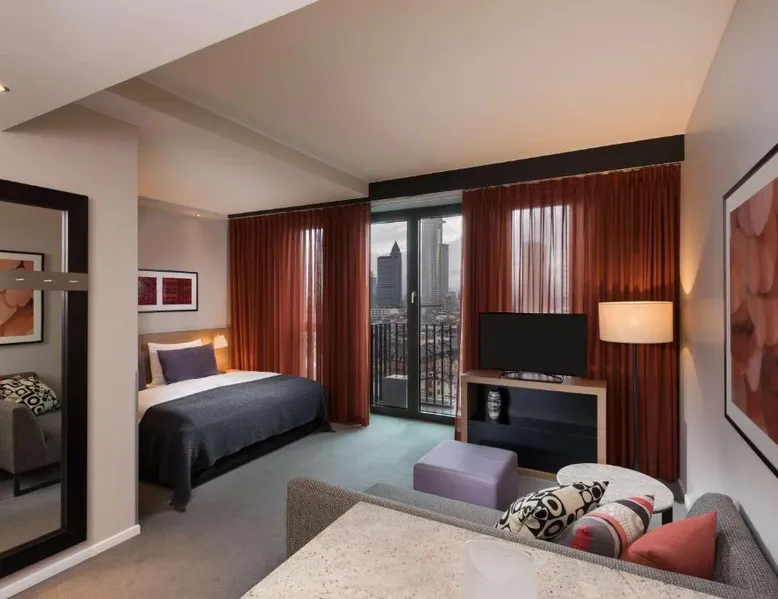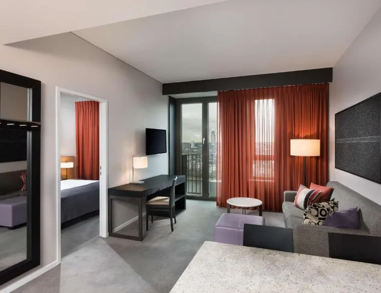 Overlooking the River Main, this hotel offers a free sauna and gym, and elegant apartments with balconies. Frankfurt Central Station and the Zeil shopping street are just 1 underground stop away. The 4-star Adina Apartment Hotel Frankfurt Neue Oper provides air-conditioned apartments with stylish, colorful décor. Each apartment has a kitchenette, a flat-screen TV and a laptop safe. A large hot and cold breakfast buffet is available each morning. During the day, the Alto Restaurant offers German-style tapas and Australian cuisine. Some of the Adina Premium Apartments offer access to a private rooftop terrace with great views of the city. Further relaxation is offered by the sauna. The Adina Frankfurt stands beside Frankfurt Opera House, within a 5-minute walk of the financial district and the old town. Willy-Brandt-Platz Underground Station is a 4-minute walk away, and is on 5 different underground lines. Separate bedroom and living room. Both rooms have a flat-screen TV.
