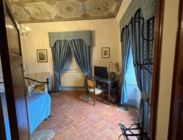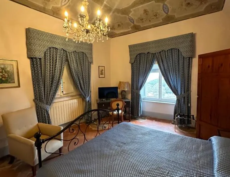 Villa di Corliano Relais all'Ussero is set in San Giuliano Terme. This 15th-century mansion is surrounded by a large park and spacious rooms with panoramic views across the countryside. Villa di Corliano is a family-run hotel. Its restaurant, Relais, serves Tuscan dishes and a wide selection of local wines. This historic building is protected by the Ministry of the Arts. It is located on the road that links Pisa with Lucca, 1.2 mi from the thermal spas of San Giuliano Terme. Free WiFi is available in the grounds, lobby and in some rooms. Parking is free at All'Ussero. The villa is a 15-minute drive from Pisa's historic center. Galileo Galilei Airport is around 30 minutes away by car. This family room features original 18th-century frescoes and decorations, as well as a satellite TV. It includes a private bathroom with a hairdryer and free toiletries.