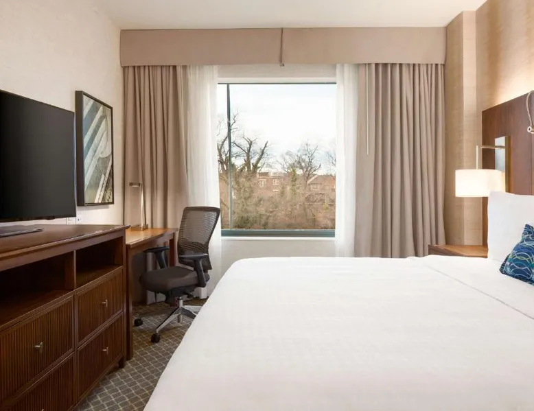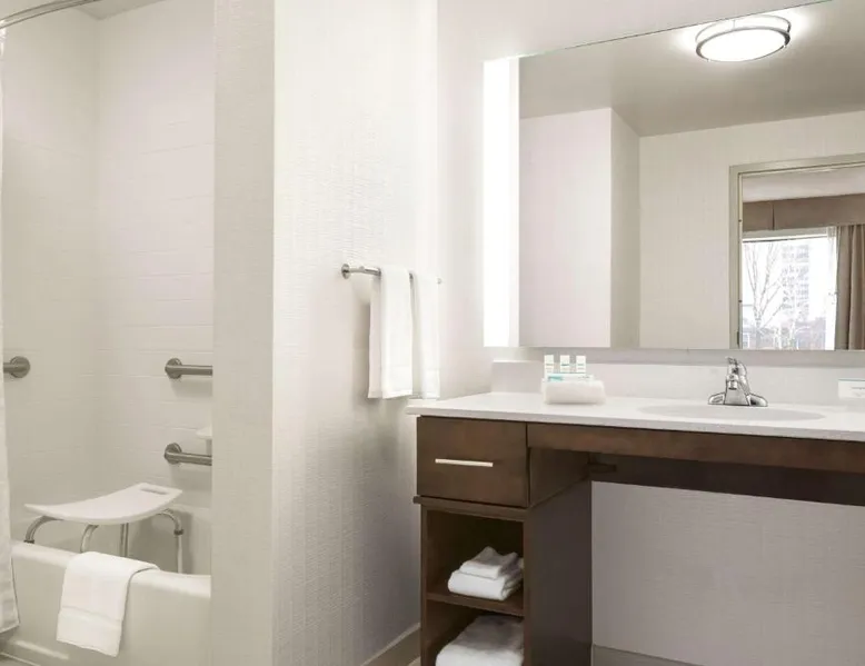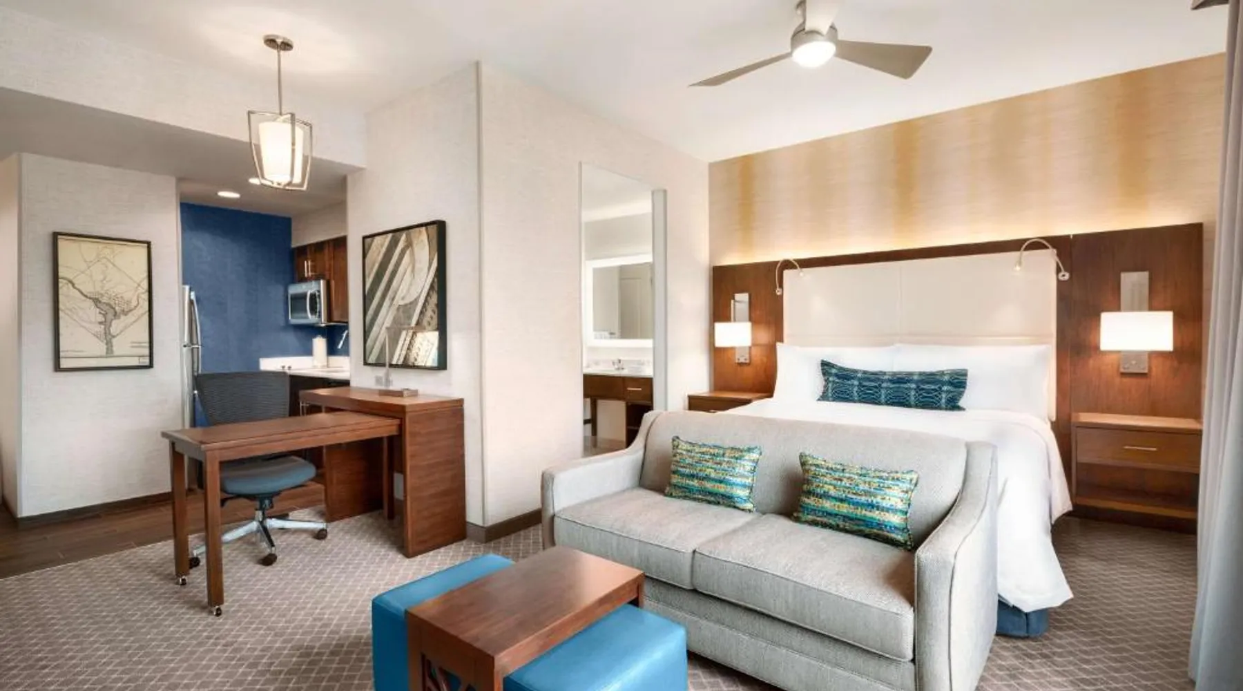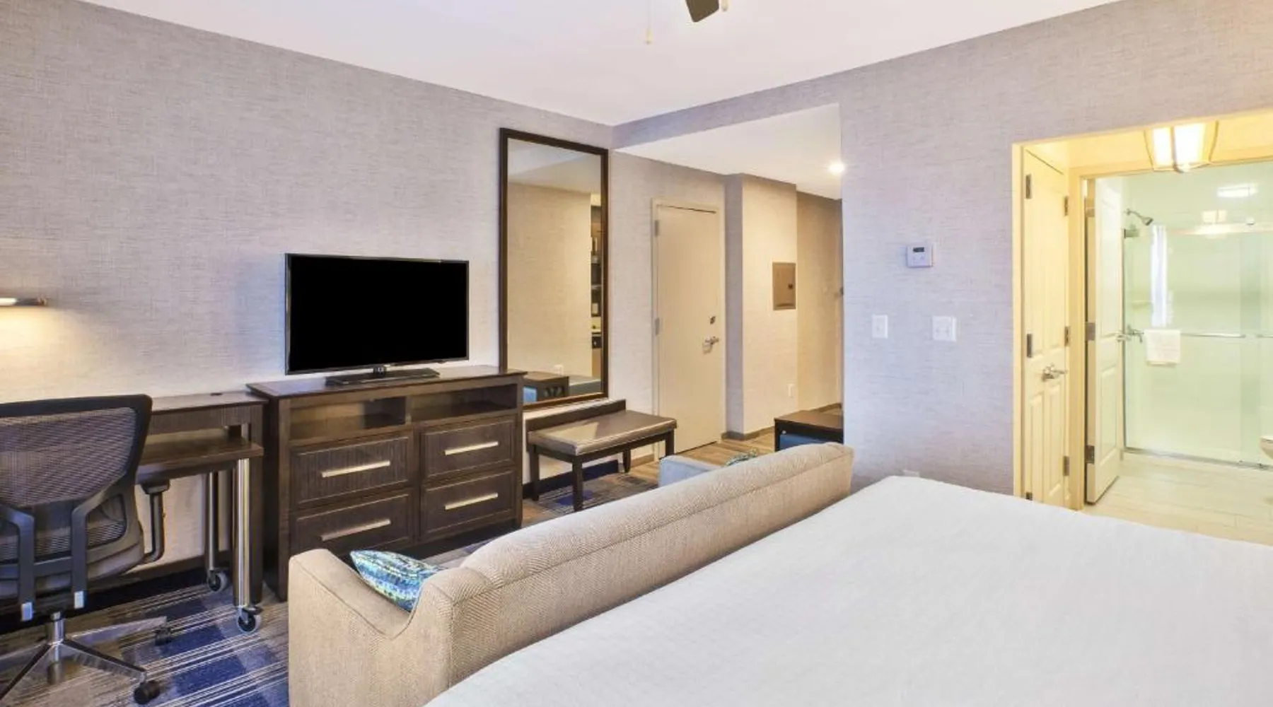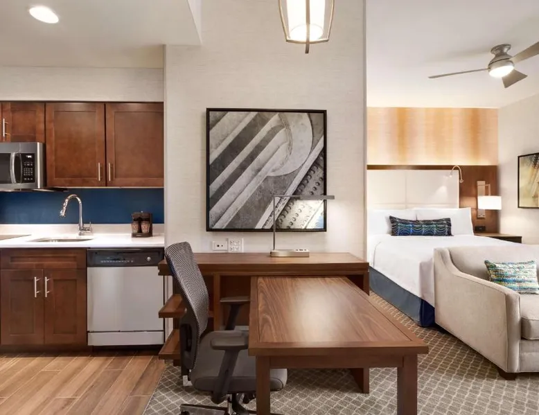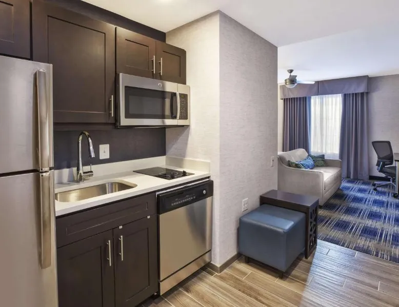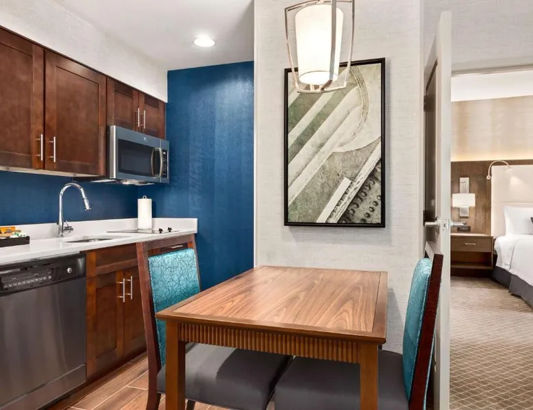 Comfortable Accommodations: Homewood Suites By Hilton Arlington Rosslyn Key Bridge in Arlington offers family rooms with air-conditioning, kitchen facilities, and free WiFi. Each room includes a work desk, sofa bed, and TV. Dining and Leisure: Guests can enjoy an American restaurant and bar, terrace, and outdoor fireplace. Additional amenities include a fitness room, lounge, and coffee shop. Free WiFi is available in public areas. Convenient Location: Located 5.6 mi from Ronald Reagan Washington National Airport, the hotel is near attractions such as the US Marine Corps War Memorial (18-minute walk) and Theodore Roosevelt Island Park (1 mi). An ice-skating rink is also nearby. Guest Services: The property provides a 24-hour front desk, shuttle service, and paid on-site parking. Guests appreciate the attentive staff and excellent breakfast. In the well-fitted kitchen, guests will find a stovetop, a refrigerator, a dishwasher and kitchenware. This air-conditioned studio features a tea and coffee maker and heating. The unit offers 2 beds.