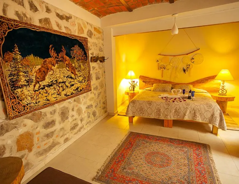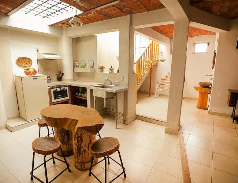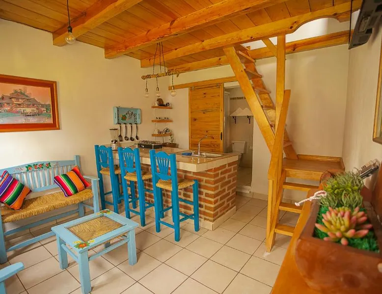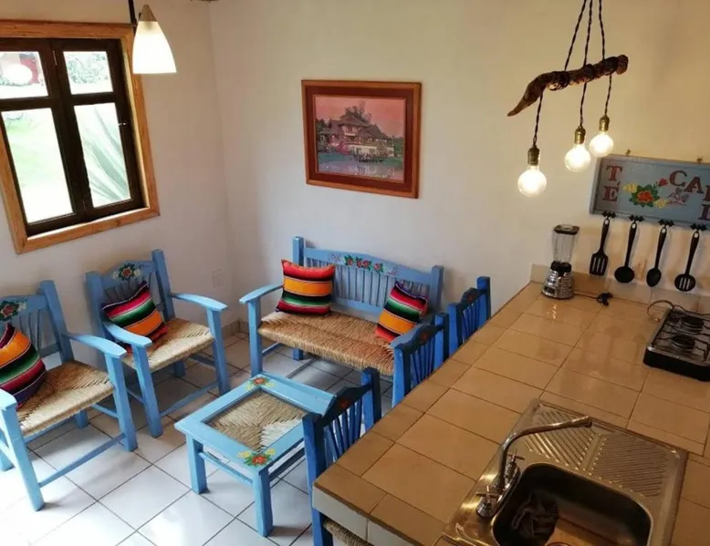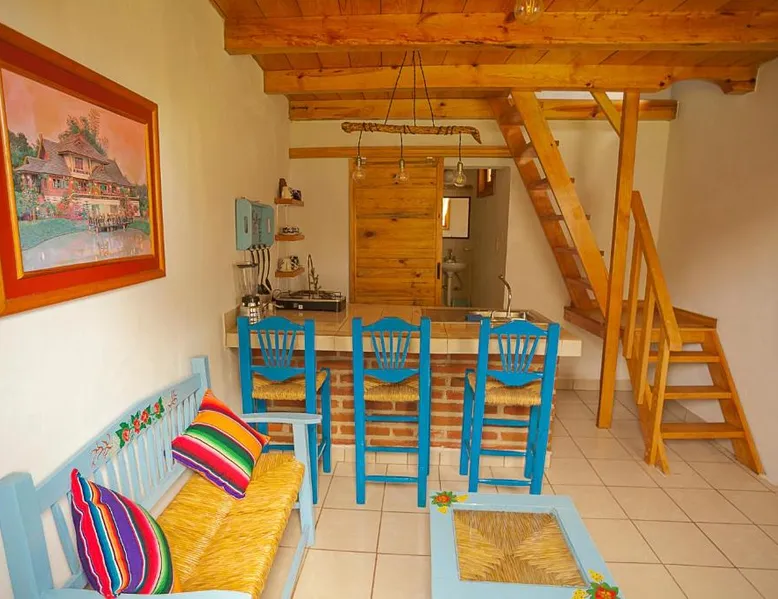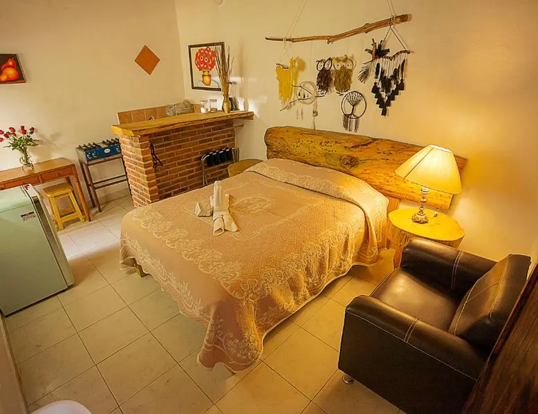 Central Location: Htl & Villas Las Glorias Mazamitla in Mazamitla offers a central location with a sun terrace and a garden. Guests enjoy free WiFi throughout the property. Comfortable Accommodations: Rooms feature private bathrooms, kitchenettes, and garden views. Additional amenities include a terrace, balcony, and barbecue area. Convenient Facilities: The lodge provides free on-site private parking, an outdoor fireplace, and a children's playground. Private check-in and check-out services ensure a smooth arrival and departure. Nearby Attractions: Licenciado Miguel de la Madrid Airport is 72 mi away. Guests can explore nearby attractions such as the city views and outdoor seating areas. This chalet's standout feature is the fireplace. This chalet includes 1 living room, 1 separate bedroom and 1 bathroom with a shower and free toiletries. Guests will find a refrigerator, kitchenware and a microwave in the kitchen. The chalet also features a barbecue. Boasting a terrace with garden views, this chalet also offers a private entrance and a TV with cable channels. The unit has 2 beds.