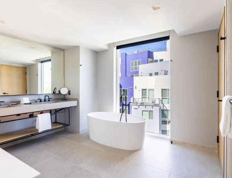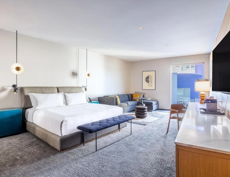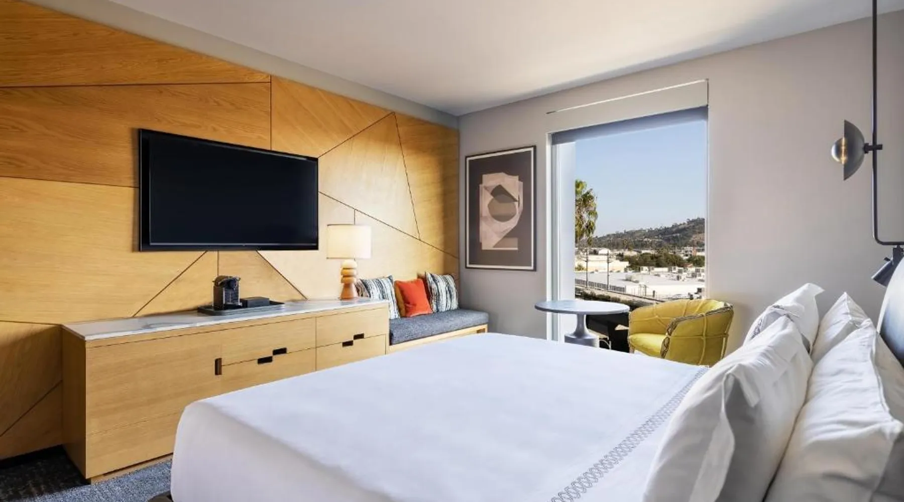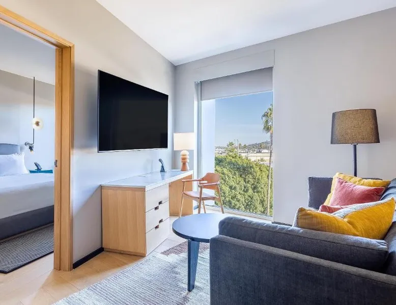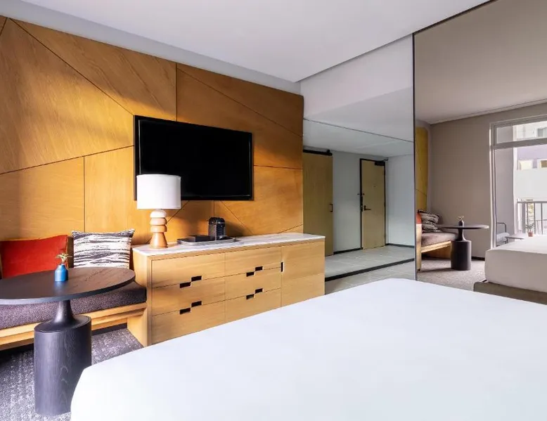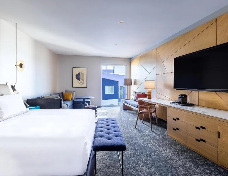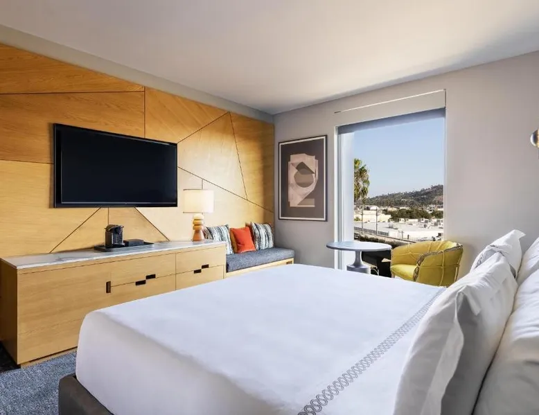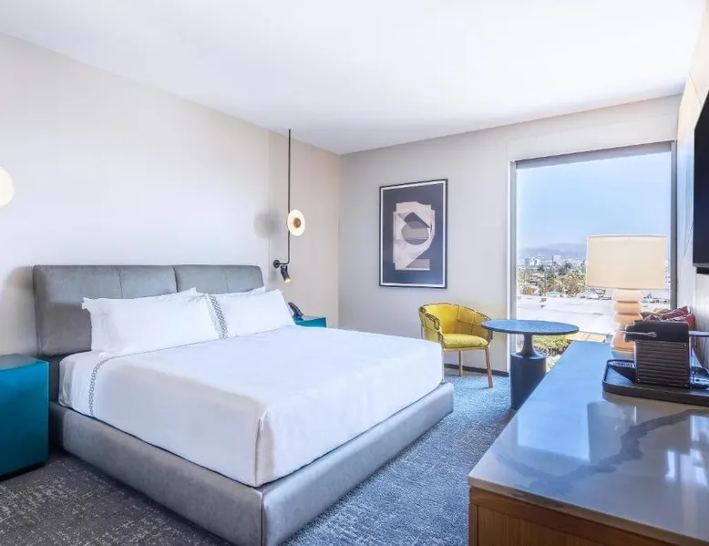 Exceptional Facilities: The Shay, a Destination by Hyatt in Los Angeles offers a rooftop swimming pool, fitness center, terrace, restaurant, bar, and free WiFi. Guests can also enjoy a lounge, fitness room, and games room. Comfortable Accommodations: Rooms feature air-conditioning, balconies, private bathrooms, and modern amenities such as streaming services and work desks. Additional facilities include a coffee shop, outdoor seating area, and electric vehicle charging station. Dining Experience: The modern restaurant serves Mediterranean and Mexican cuisines for brunch, lunch, and dinner. Guests can also enjoy a pool bar and outdoor dining area. Prime Location: Located 7.5 mi from Los Angeles International Airport, the hotel is near attractions like Petersen Automotive Museum (3 mi) and Venice Beach Boardwalk (5.6 mi). Guests appreciate the attentive staff and convenient location. Offering free toiletries and bathrobes, this triple room includes a private bathroom with a walk-in shower and a hairdryer. The spacious air-conditioned triple room offers a flat-screen TV with streaming services, a mini-bar, a tea and coffee maker and a seating area. The unit has 1 bed.