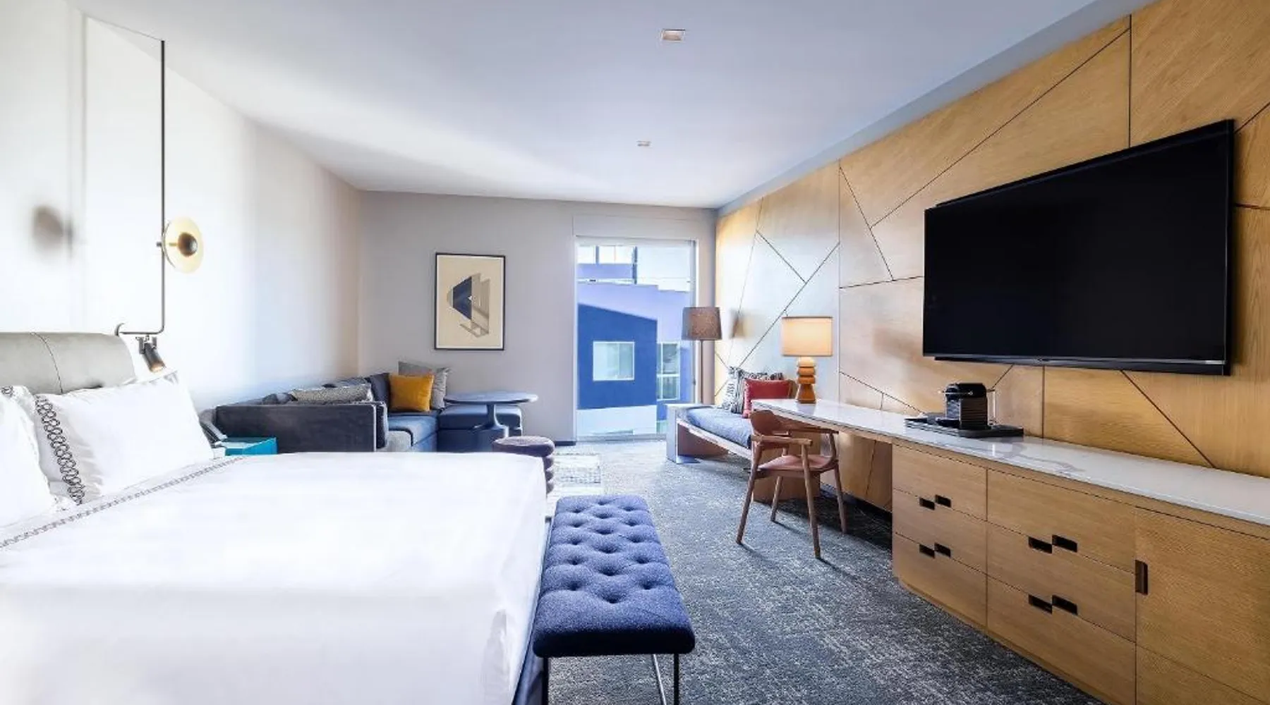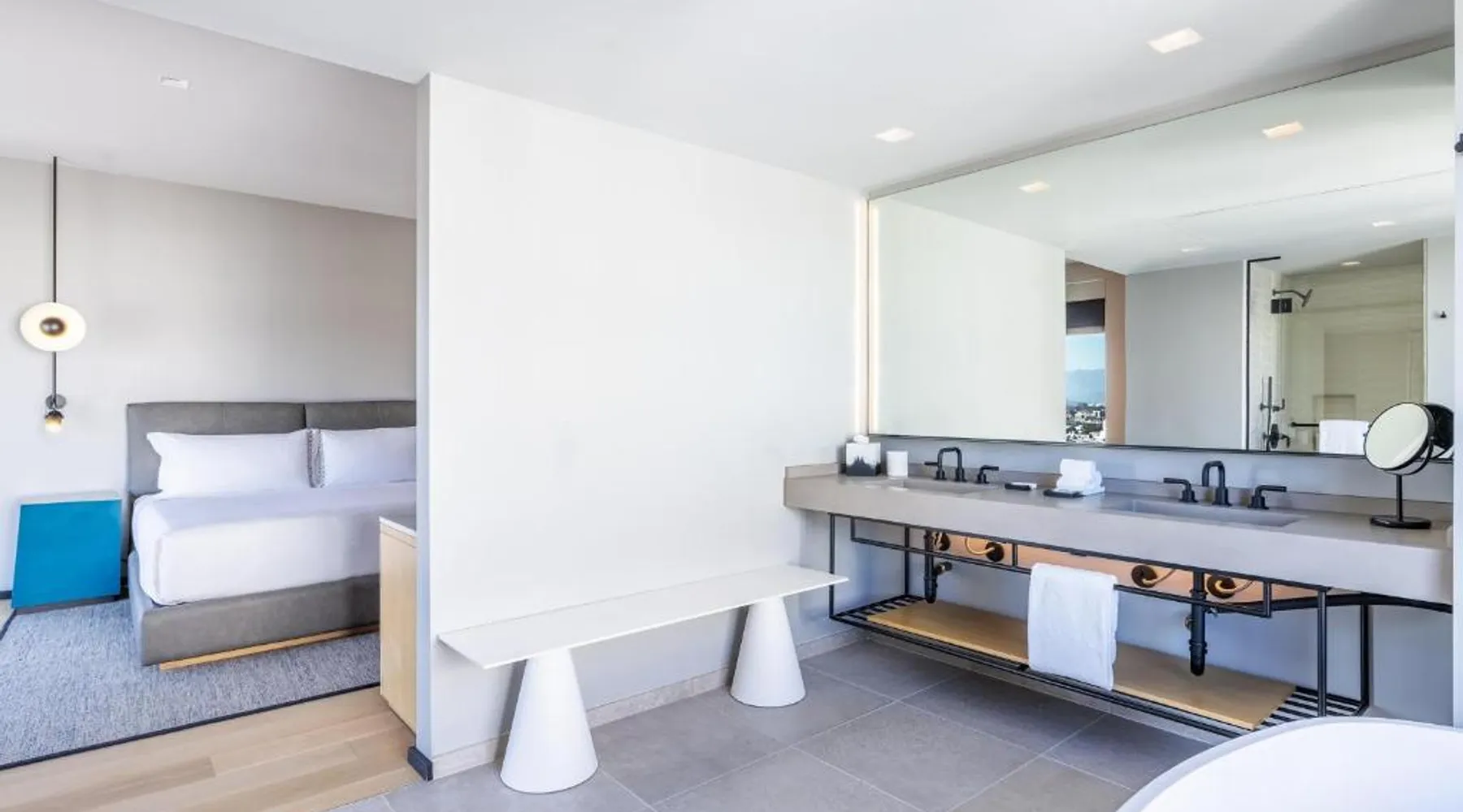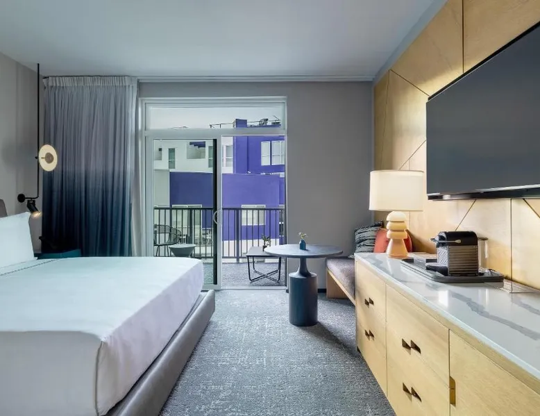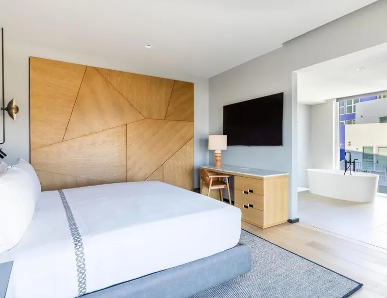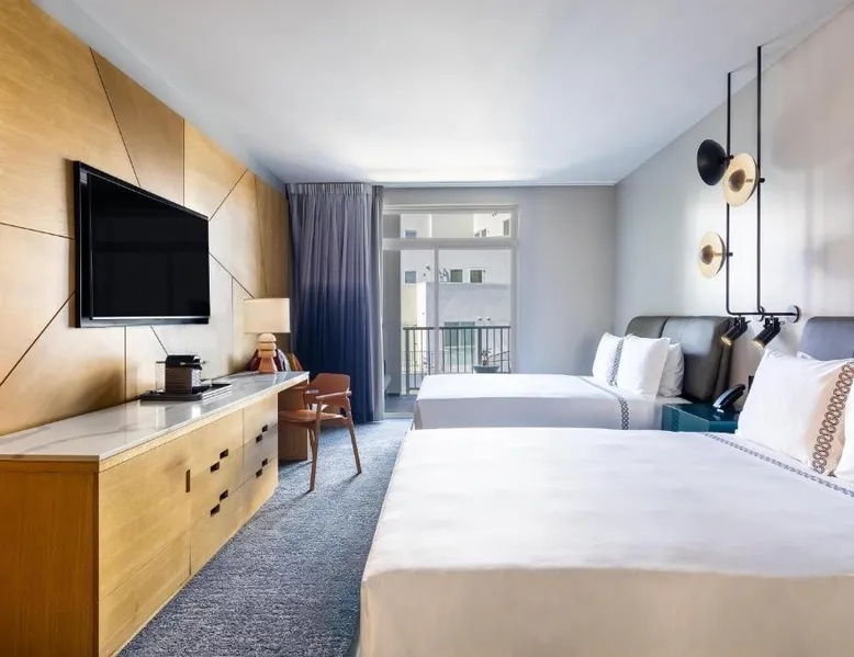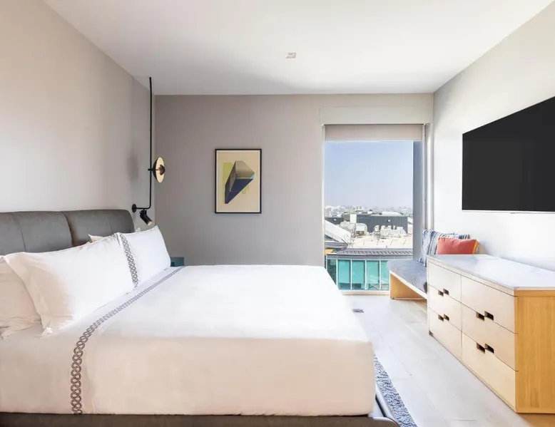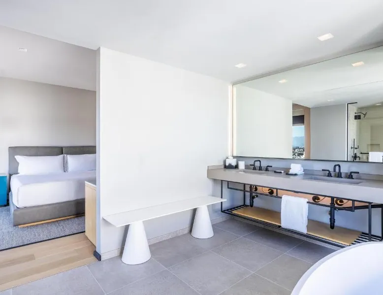 Exceptional Facilities: The Shay, a Destination by Hyatt in Los Angeles offers a rooftop swimming pool, fitness center, terrace, restaurant, bar, and free WiFi. Guests can also enjoy a lounge, fitness room, and games room. Comfortable Accommodations: Rooms feature air-conditioning, balconies, private bathrooms, and modern amenities such as streaming services and work desks. Additional facilities include a coffee shop, outdoor seating area, and electric vehicle charging station. Dining Experience: The modern restaurant serves Mediterranean and Mexican cuisines for brunch, lunch, and dinner. Guests can also enjoy a pool bar and outdoor dining area. Prime Location: Located 7.5 mi from Los Angeles International Airport, the hotel is near attractions like Petersen Automotive Museum (3 mi) and Venice Beach Boardwalk (5.6 mi). Guests appreciate the attentive staff and convenient location. Offering free toiletries and bathrobes, this triple room includes a private bathroom with a walk-in shower and a hairdryer. The spacious air-conditioned triple room offers a flat-screen TV with streaming services, a mini-bar, a tea and coffee maker and a seating area. The unit has 1 bed.