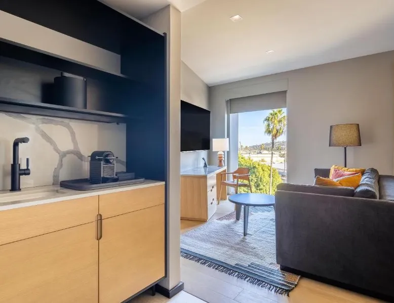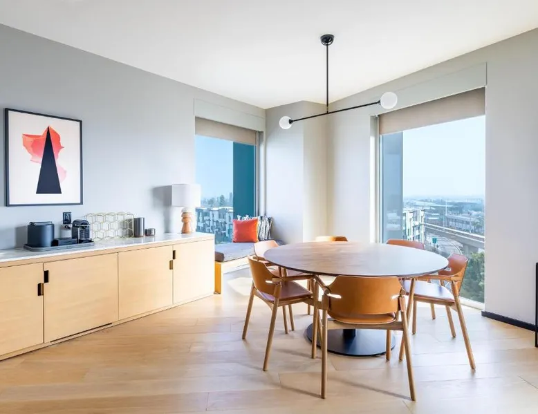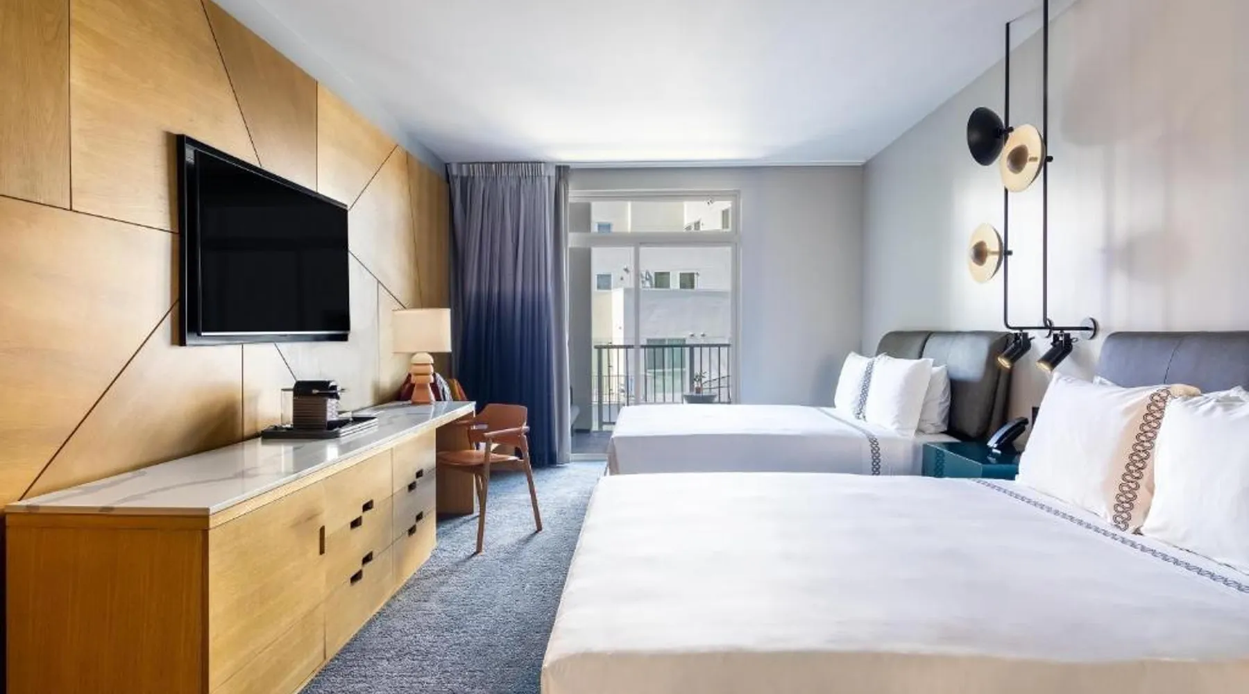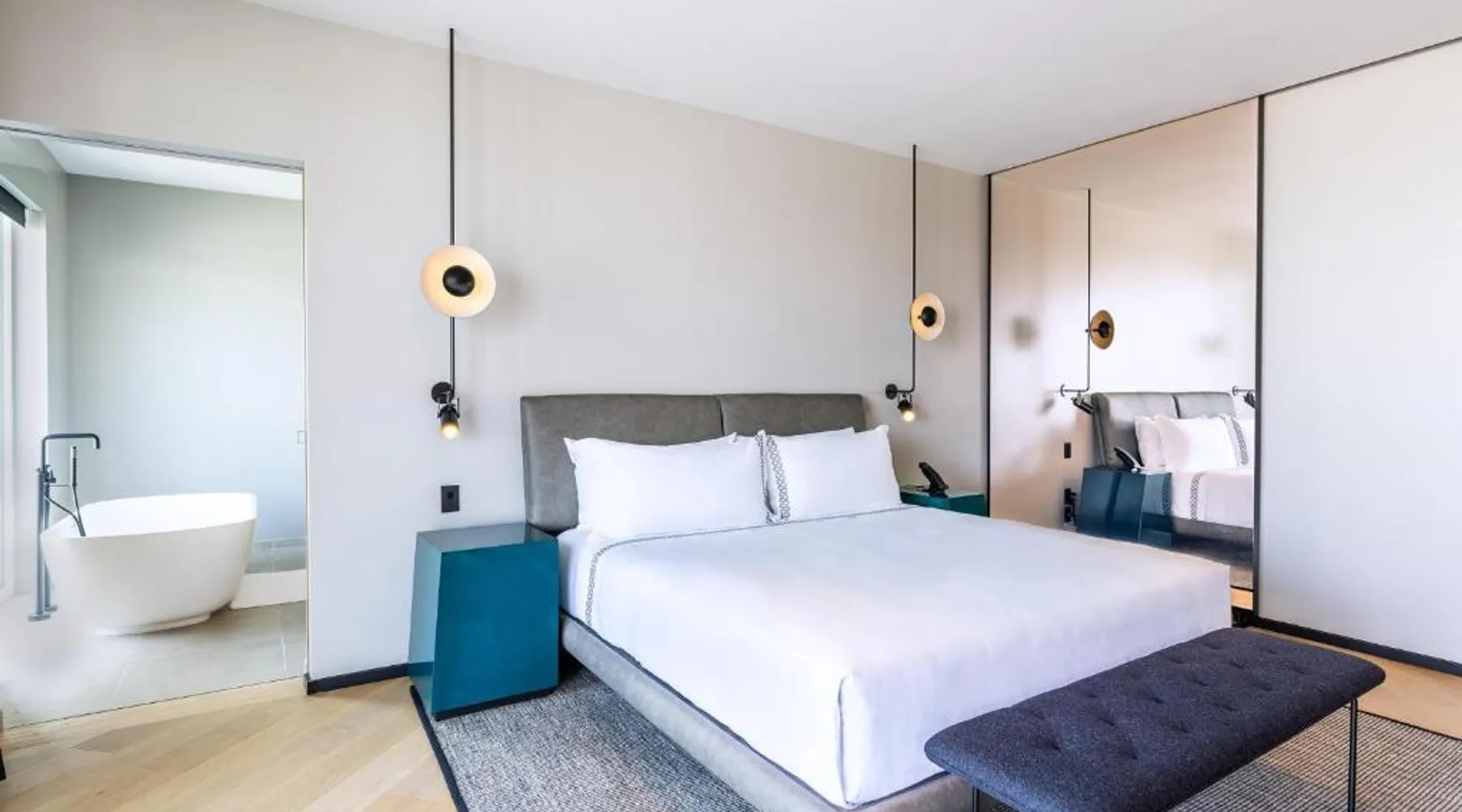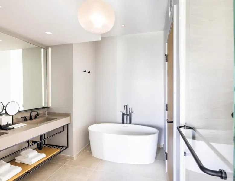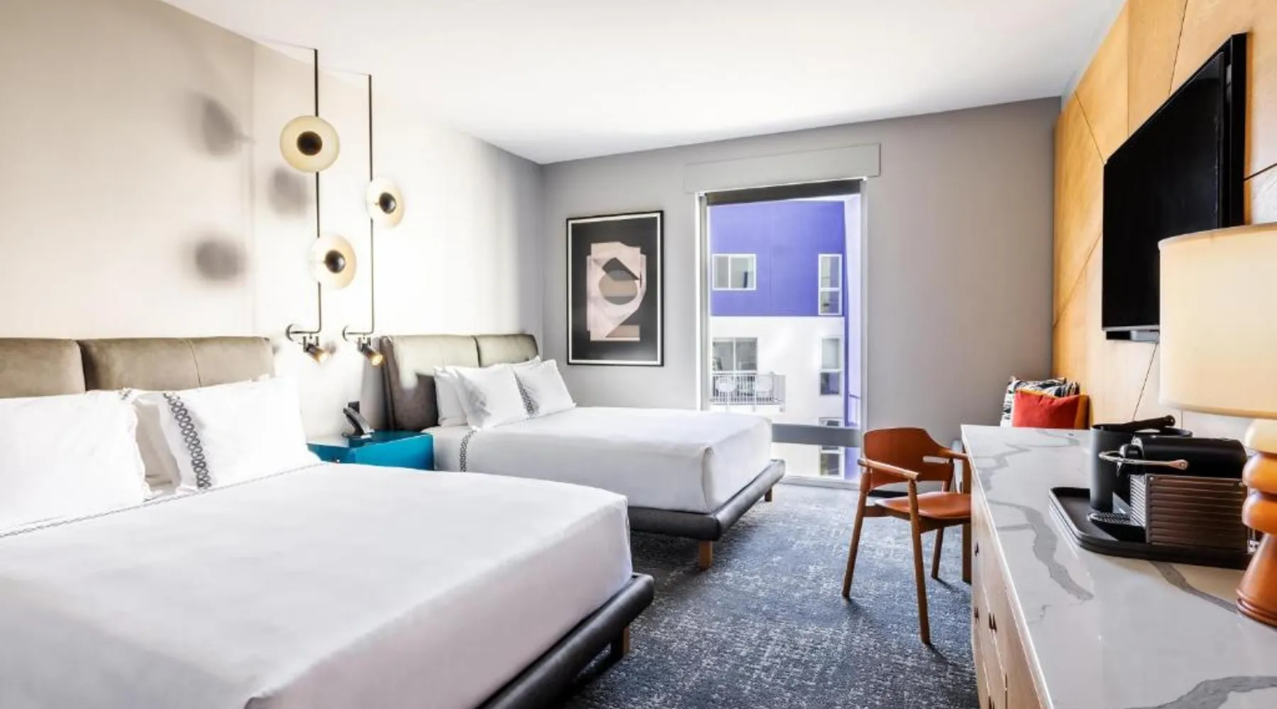Exceptional Facilities: The Shay, a Destination by Hyatt in Los Angeles offers a rooftop swimming pool, fitness center, terrace, restaurant, bar, and free WiFi. Guests can also enjoy a lounge, fitness room, and games room. Comfortable Accommodations: Rooms feature air-conditioning, balconies, private bathrooms, and modern amenities such as streaming services and work desks. Additional facilities include a coffee shop, outdoor seating area, and electric vehicle charging station. Dining Experience: The modern restaurant serves Mediterranean and Mexican cuisines for brunch, lunch, and dinner. Guests can also enjoy a pool bar and outdoor dining area. Prime Location: Located 7.5 mi from Los Angeles International Airport, the hotel is near attractions like Petersen Automotive Museum (3 mi) and Venice Beach Boardwalk (5.6 mi). Guests appreciate the attentive staff and convenient location. Offering free toiletries and bathrobes, this triple room includes a private bathroom with a walk-in shower and a hairdryer. The spacious air-conditioned triple room offers a flat-screen TV with streaming services, a mini-bar, a tea and coffee maker and a seating area. The unit has 1 bed.
