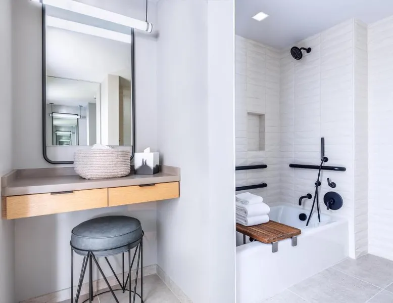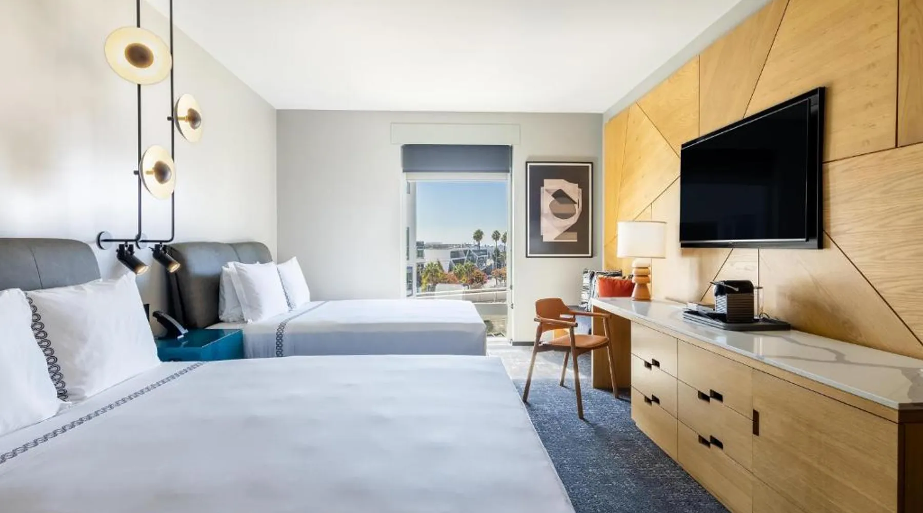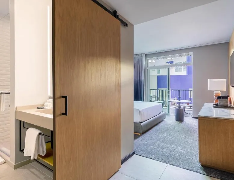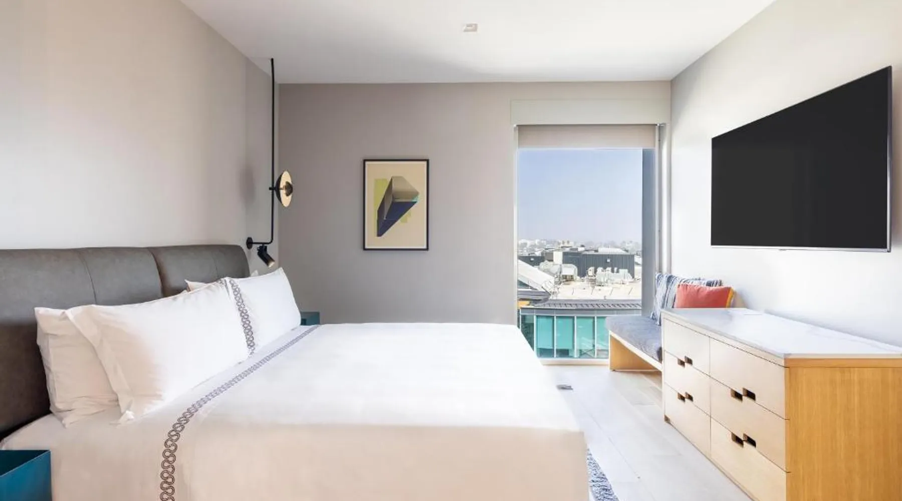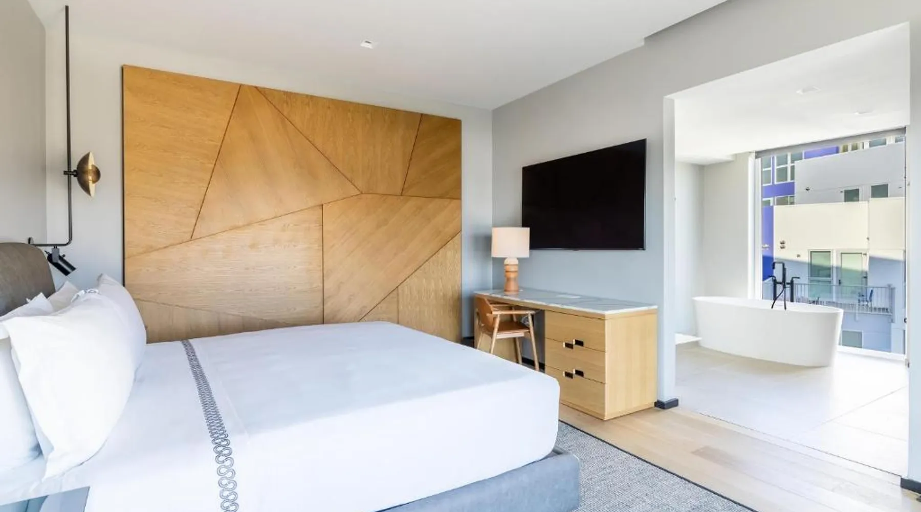 Exceptional Facilities: The Shay, a Destination by Hyatt in Los Angeles offers a rooftop swimming pool, fitness center, terrace, restaurant, bar, and free WiFi. Guests can also enjoy a lounge, fitness room, and games room. Comfortable Accommodations: Rooms feature air-conditioning, balconies, private bathrooms, and modern amenities such as streaming services and work desks. Additional facilities include a coffee shop, outdoor seating area, and electric vehicle charging station. Dining Experience: The modern restaurant serves Mediterranean and Mexican cuisines for brunch, lunch, and dinner. Guests can also enjoy a pool bar and outdoor dining area. Prime Location: Located 7.5 mi from Los Angeles International Airport, the hotel is near attractions like Petersen Automotive Museum (3 mi) and Venice Beach Boardwalk (5.6 mi). Guests appreciate the attentive staff and convenient location. Offering free toiletries and bathrobes, this triple room includes a private bathroom with a walk-in shower and a hairdryer. The spacious air-conditioned triple room offers a flat-screen TV with streaming services, a mini-bar, a tea and coffee maker and a seating area. The unit has 1 bed.