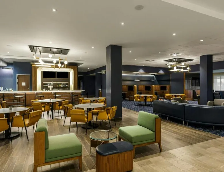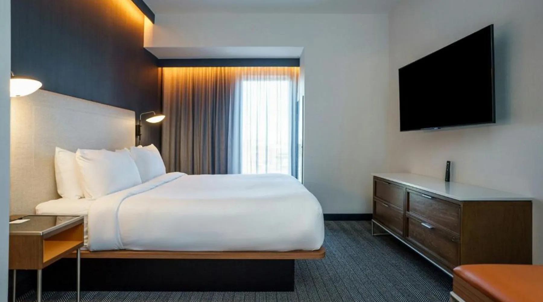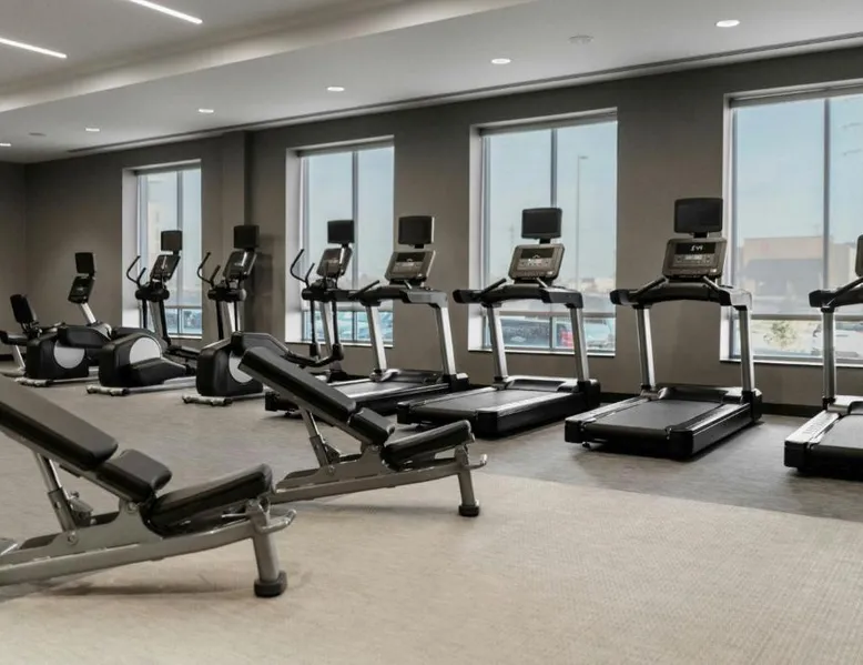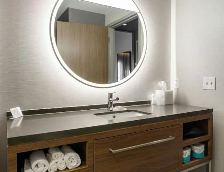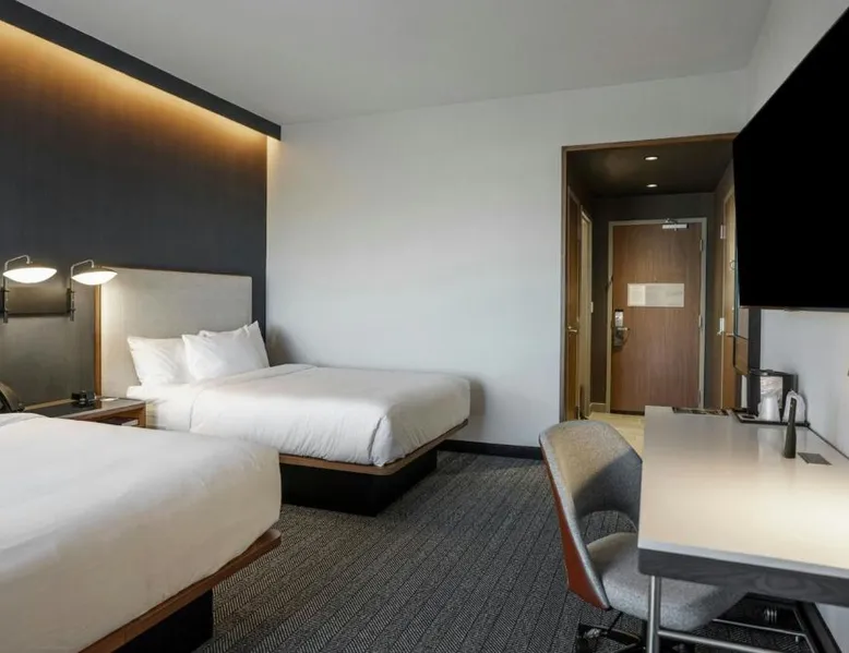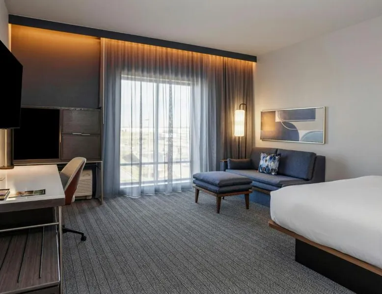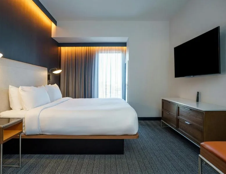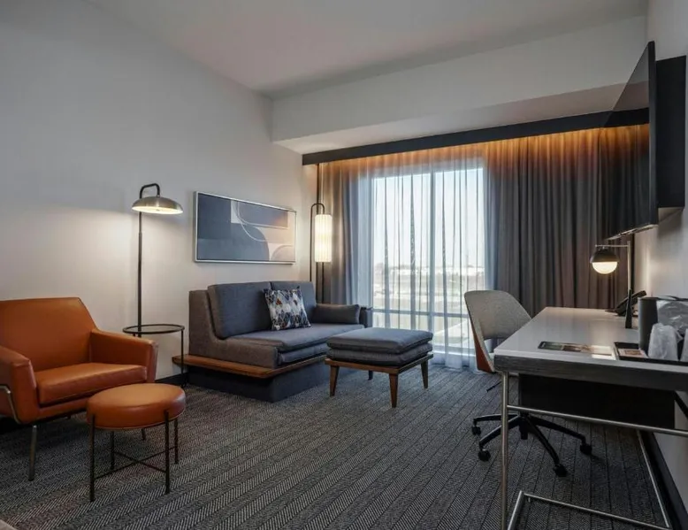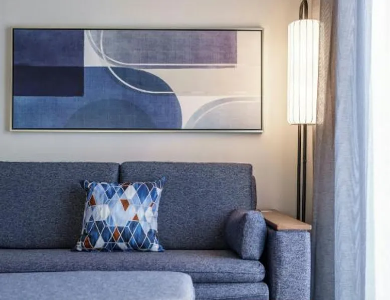 Comfortable Accommodations: Rooms feature air-conditioning, private bathrooms, tea and coffee makers, and free toiletries. Additional amenities include work desks, refrigerators, and streaming services. Exceptional Facilities: Guests can enjoy a fitness center, indoor swimming pool, terrace, and bar. The hotel offers a lounge, outdoor fireplace, and outdoor seating areas. Dining Options: An American breakfast with warm dishes is available. The on-site coffee shop provides additional dining options. Prime Location: Located in Fishers, the hotel is 18 mi from Lucas Oil Stadium and 20 mi from Indianapolis Motor Speedway. Nearby attractions include the Children's Museum of Indianapolis and Indianapolis Museum of Art. The suite offers air conditioning, a tea and coffee maker, as well as a private bathroom featuring a walk-in shower and a hairdryer. The suite features a wardrobe, a sofa, a carpeted floor, heating and a flat-screen TV with streaming services.