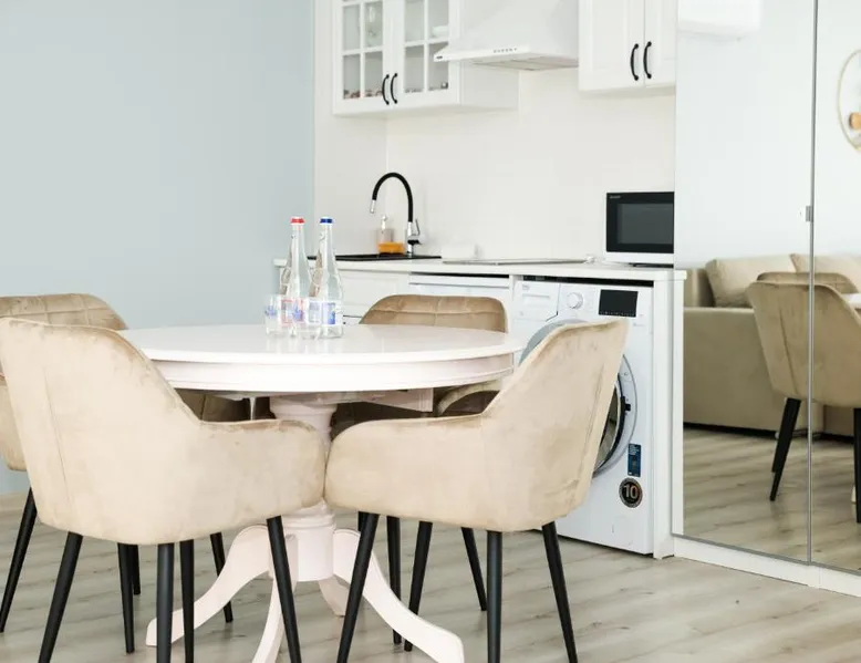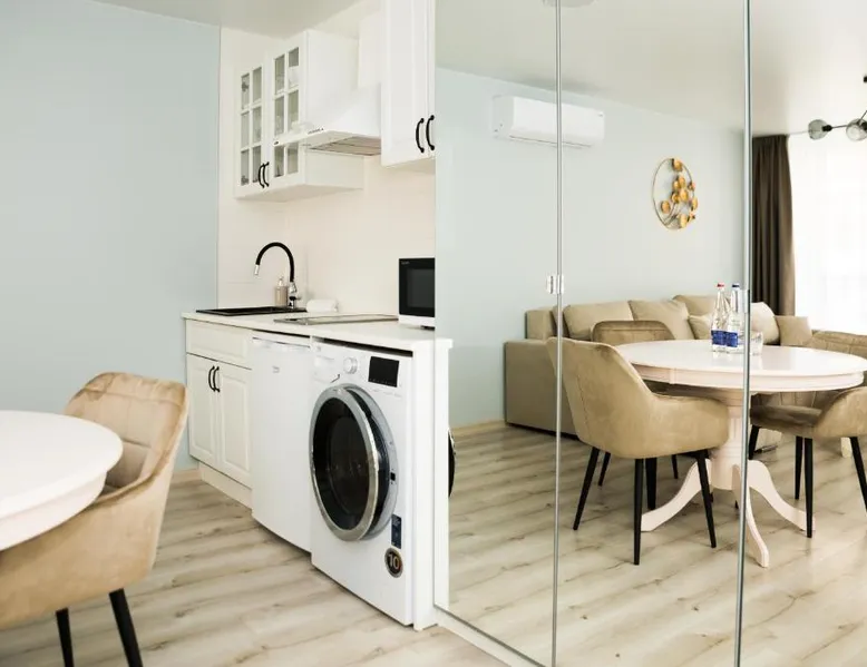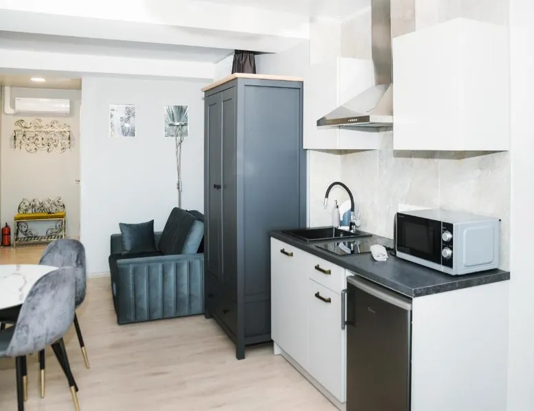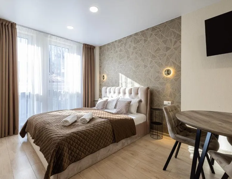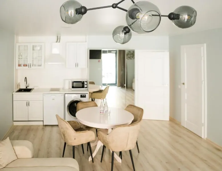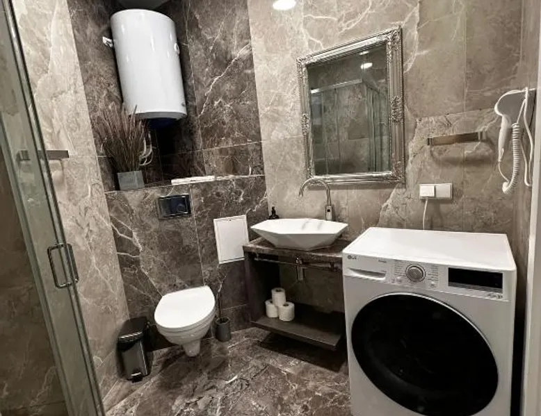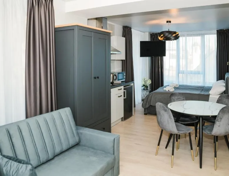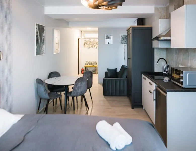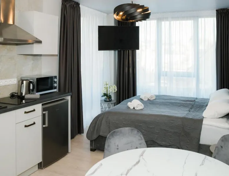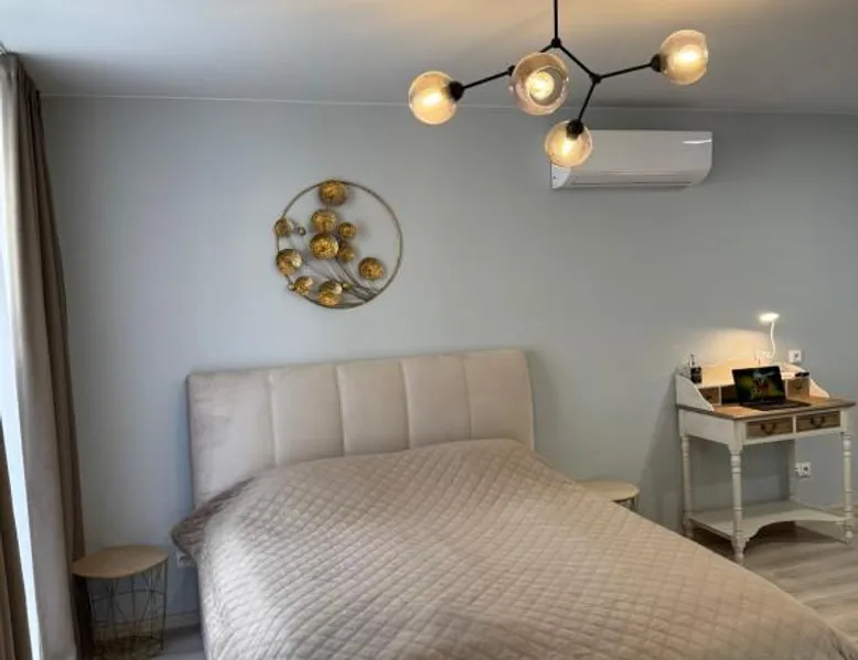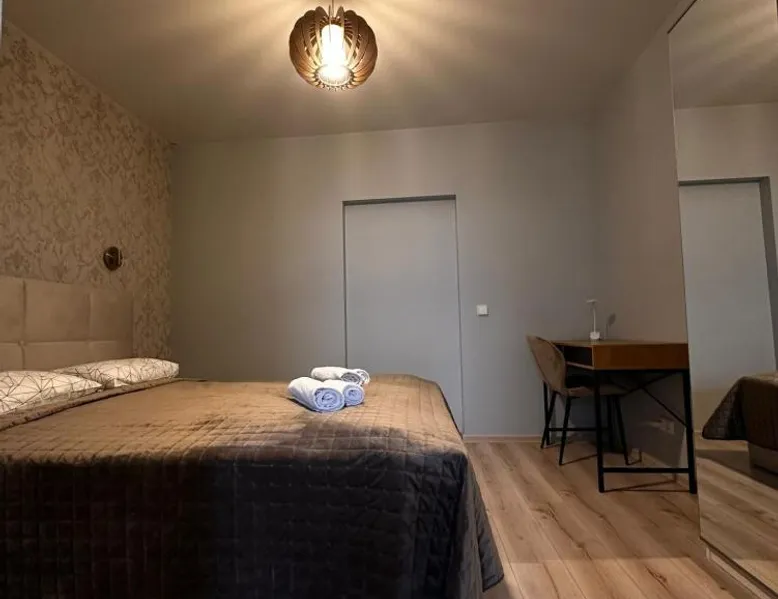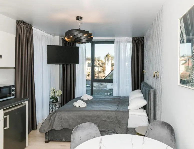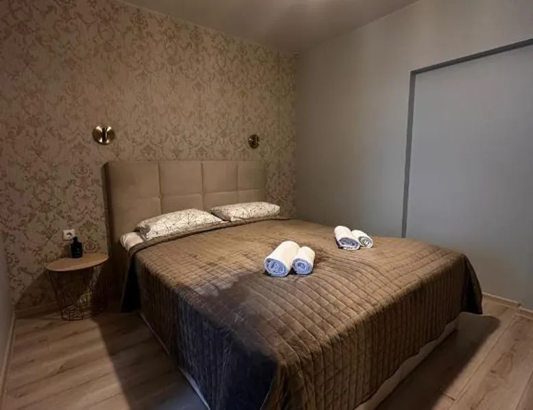 Comfortable Accommodations: DHARMA Stay APARTAMENTAI in Telšiai offers spacious apartments with private bathrooms, air-conditioning, and modern amenities. Each unit includes a dining area, kitchenette, and free WiFi, ensuring a pleasant stay. Wellness and Leisure: Guests can relax at the spa facilities, terrace, restaurant, bar, and coffee shop. Additional services include yoga classes, grocery delivery, and a tour desk. The property also features a child-friendly buffet and family rooms. Convenient Location: Located 54 mi from Palanga International Airport, the apartment is highly rated for its convenient location, attentive staff, and impeccable room cleanliness. Nearby attractions include Telšiai Castle and the Telšiai Museum. The well-fitted kitchen has a stovetop, a refrigerator, kitchenware and a microwave. The quadruple room offers air conditioning, a seating area, as well as a private bathroom boasting a shower and a hairdryer. The unit has 2 beds.