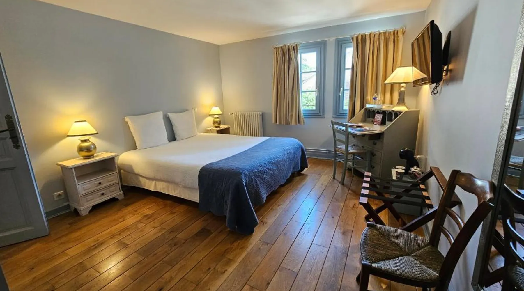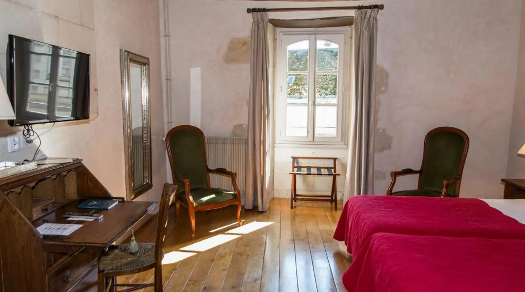 Comfortable Accommodations: Logis Hôtel Restaurant Relais de la Mothe in Yzeures-sur-Creuse offers family rooms with private bathrooms, air-conditioning, and free WiFi. Each room includes a work desk, TV, and soundproofing for a pleasant stay. Dining Experience: The hotel features a traditional and modern restaurant serving French and European cuisines for lunch and dinner. Guests can enjoy a continental or buffet breakfast with local specialties, fresh pastries, cheese, fruits, and juice. Leisure Facilities: The property offers a sun terrace, garden, fitness room, and wellness packages. Additional amenities include a lounge, coffee shop, outdoor seating area, and bicycle parking. Free off-site parking is available. Nearby Attractions: Located 38 mi from Poitiers-Biard Airport, the hotel is close to Château d'Azay-le-Ferron (13 mi) and Roche-Posay Golf Course (4.3 mi). Other attractions include Dolmen de la Pierre Levée (2 mi) and Saint-Savin Abbey (18 mi). Guest rooms at the Relais de la Mothe feature a flat-screen TV and a telephone. Some of the rooms are equipped with air-conditioning.