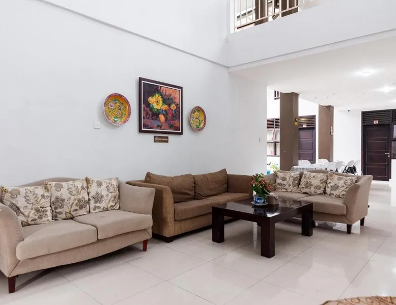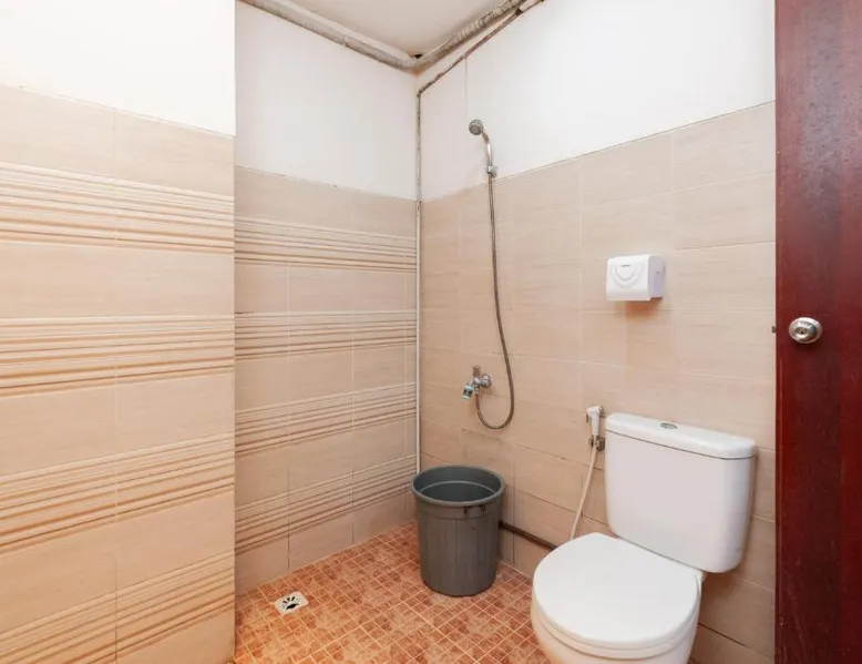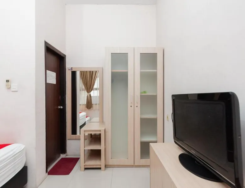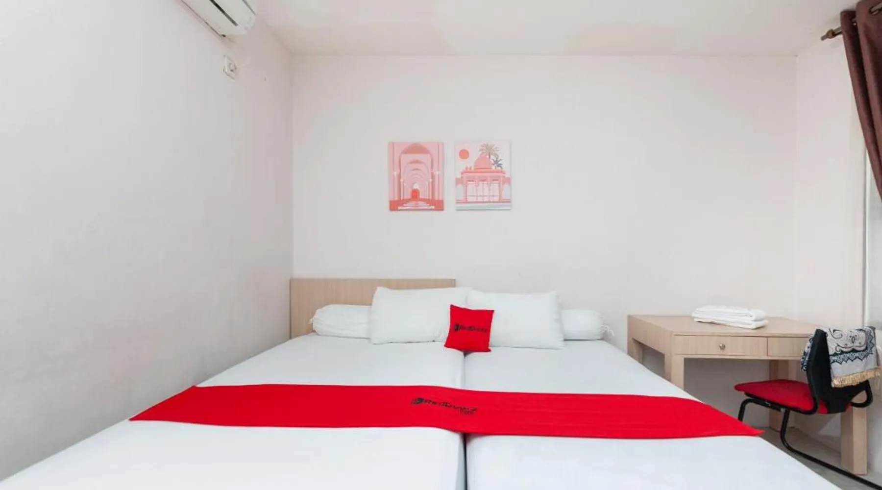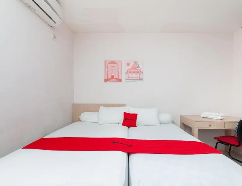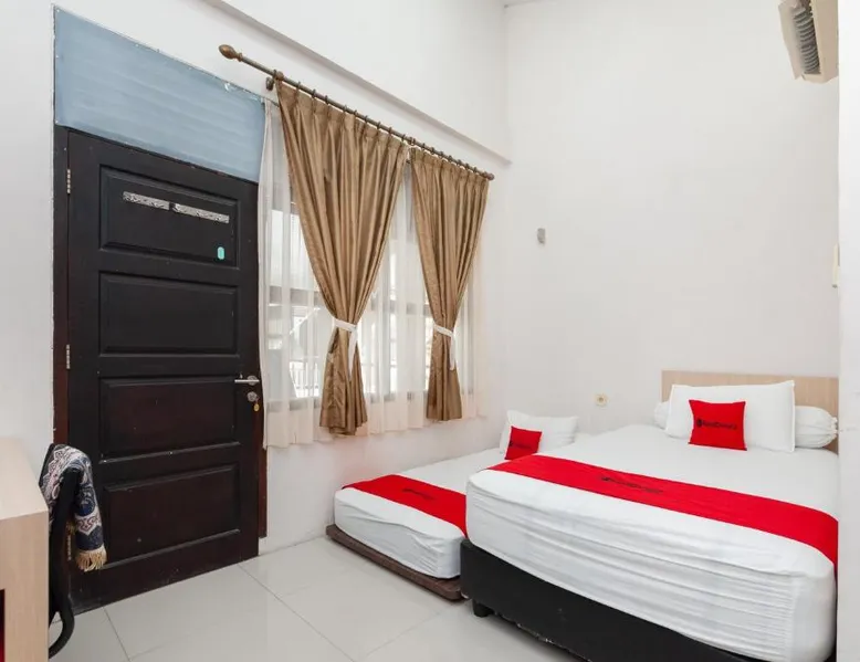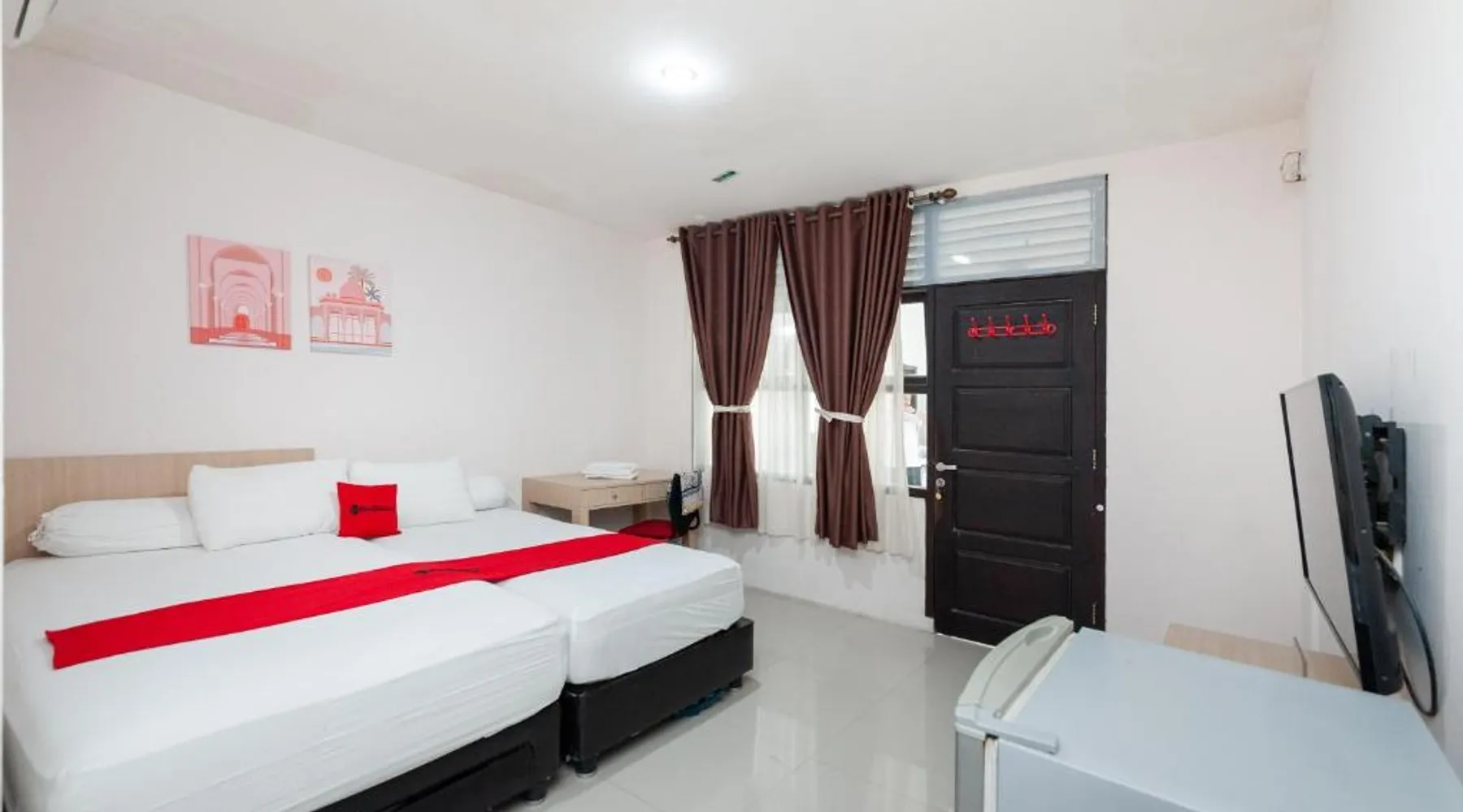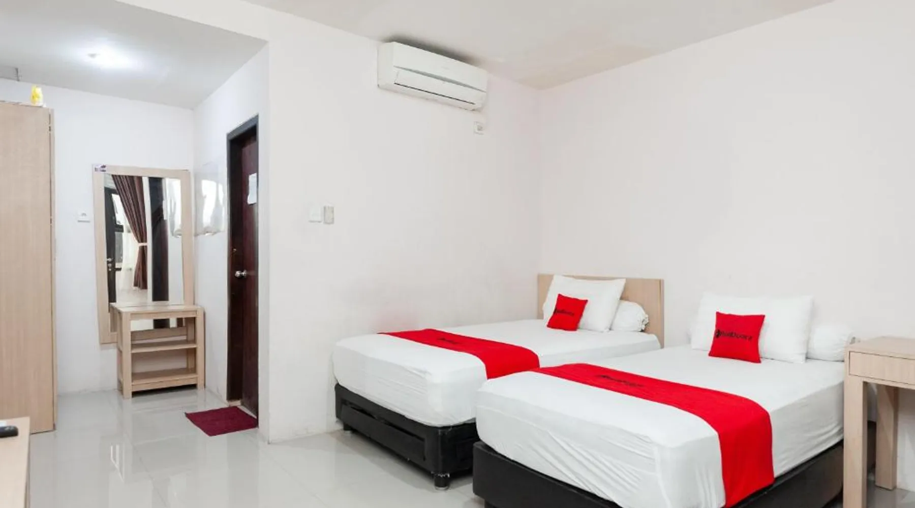Comfortable Accommodations: RedDoorz Syariah near Banda Aceh Convention Hall in Banda Aceh offers 2-star rooms with air-conditioning, TV, and free WiFi. Each room includes a private bathroom and essential amenities for a pleasant stay. Convenient Facilities: Guests benefit from a 24-hour front desk, free on-site private parking, and free WiFi. The hotel provides a welcoming environment with English and Indonesian-speaking reception staff. Prime Location: Located 6.2 mi from Sultan Iskandar Muda International Airport, the hotel is 5 mi from Harapan Bangsa Stadium. Nearby attractions offer diverse activities for visitors. This twin room features air conditioning and a flat-screen TV. The unit has 2 beds.