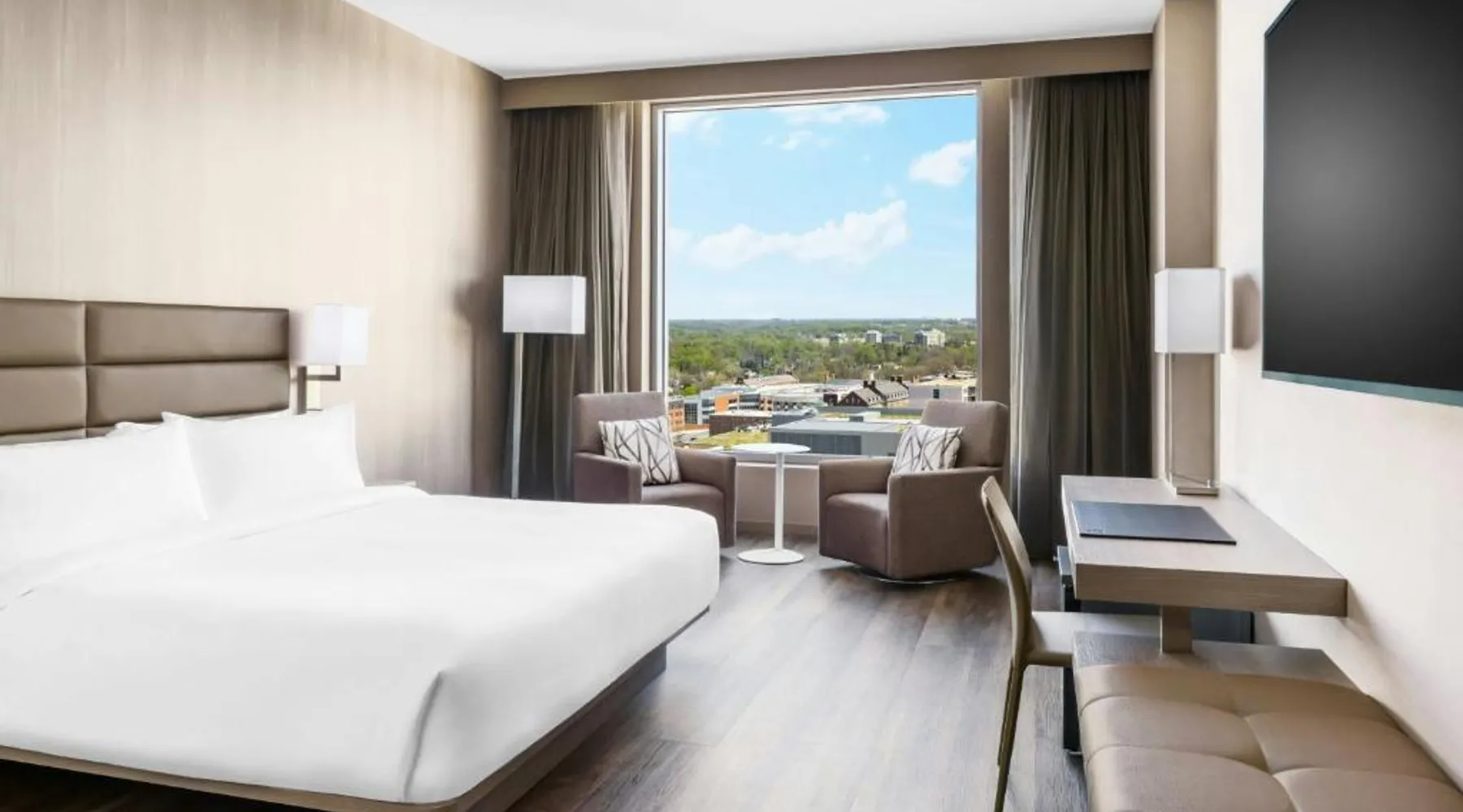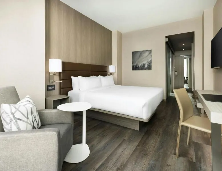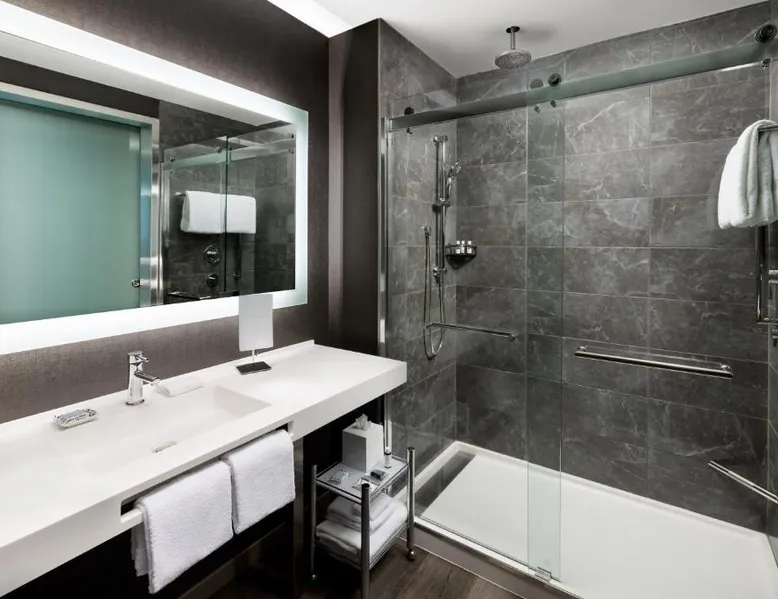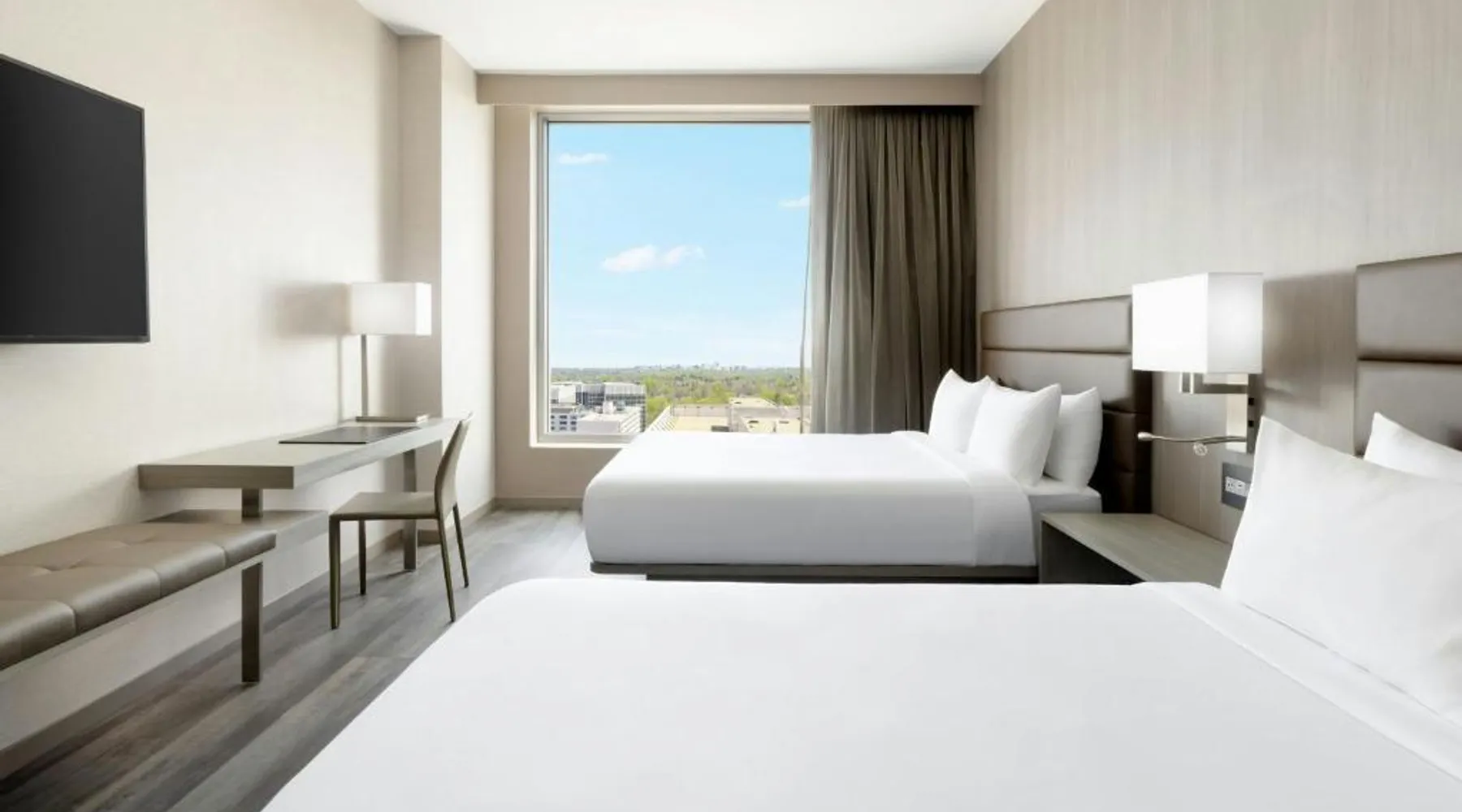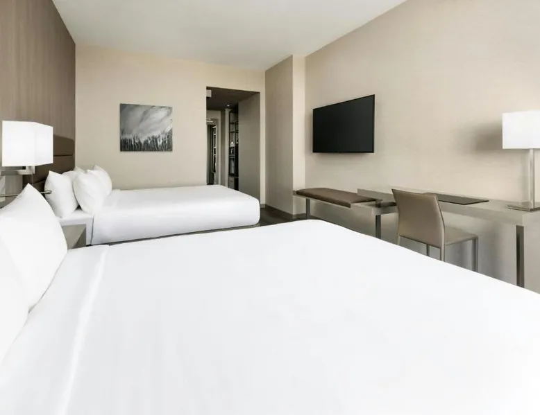 Comfortable Accommodations: AC Hotel by Marriott Bethesda Downtown in Bethesda offers comfortable rooms with air-conditioning, private bathrooms, and city views. Each room includes a work desk, free toiletries, and a tea and coffee maker. Dining and Leisure: The modern, romantic restaurant serves American and Spanish cuisines with vegetarian, vegan, gluten-free, and dairy-free options. Guests can enjoy lunch, dinner, and cocktails in a relaxed setting. A fitness center, bar, and free WiFi are also available. Convenient Location: Located 12 mi from Ronald Reagan Washington National Airport, the hotel is near attractions such as the Phillips Collection (6.2 mi) and the White House (7.5 mi). Guests appreciate the attentive staff, convenient location, and excellent restaurant. The family room provides air conditioning, a tea and coffee maker, as well as a private bathroom featuring a shower and a hairdryer. The unit offers 2 beds.