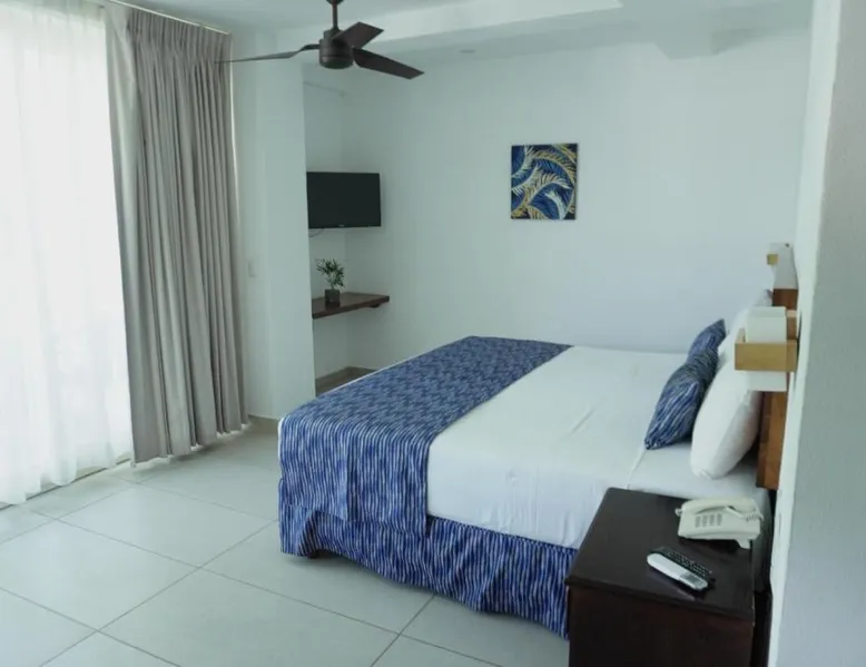 Beachfront Location: Casablanca Resort in Rincon de Guayabitos offers direct beachfront access with stunning sea views. Guests can relax on the terrace or enjoy the year-round outdoor swimming pool. Comfortable Accommodations: Rooms feature air-conditioning, private bathrooms, and modern amenities such as coffee machines, refrigerators, and TVs. Family rooms and ground-floor units provide additional comfort. Dining Experience: The family-friendly restaurant serves Mexican cuisine for lunch and dinner. A buffet breakfast is provided daily, highly appreciated by guests. Leisure Facilities: Spa facilities, a kids' pool, and an outdoor seating area enhance the leisure experience. Free WiFi is available throughout the property. Convenient Location: Located a 1-minute walk from Rincon de Guayabitos, the resort is 37 mi from Lic. Gustavo Diaz Ordaz Airport. Nearby attractions include Rincon de Guayabitos and Playa del Sol. This spacious suite consists of 1 bedroom, a seating area with a sofa and 1 bathroom with a shower. In the kitchenette, guests will find a refrigerator, kitchenware and a microwave. The air-conditioned suite provides a flat-screen TV with cable channels, a coffee machine, a dining area, a safe deposit box as well as sea views. The unit offers 2 beds.